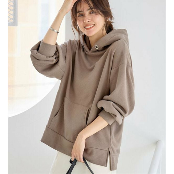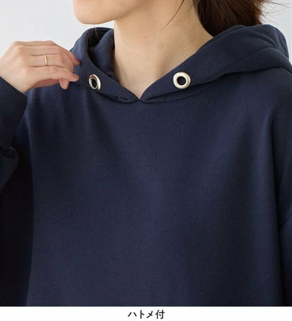 ・フードの大きめのハトメがデザインのアクセント。カジュアルながらもシルバーのポイントで上品な印象に。