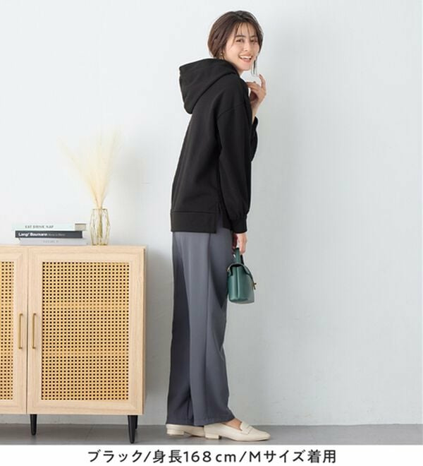 ・裾のサイドスリットが抜け感をプラス。動きやすく実用性も兼ね備えています。