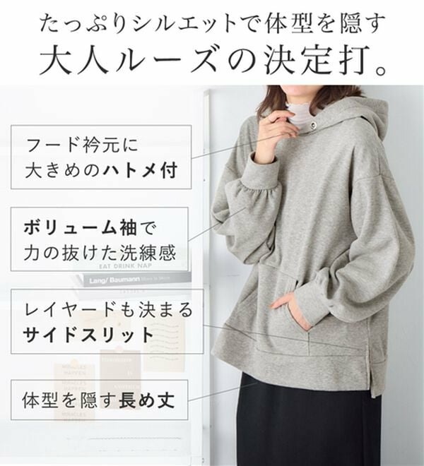・長めの丈感で体型カバー効果を発揮しながら、ゆったり快適な着心地に。