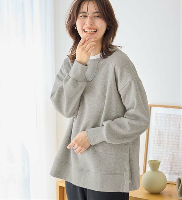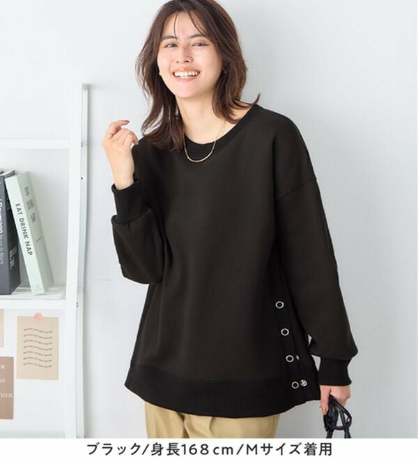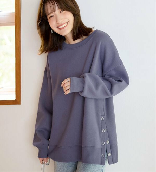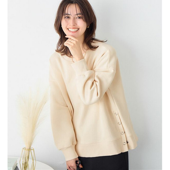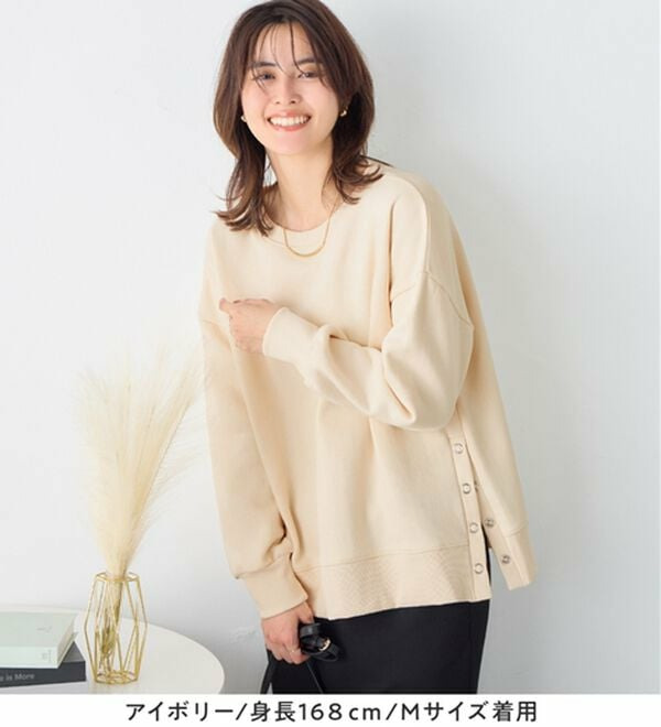 • 大人の抜け感裏起毛サイドボタントップス1