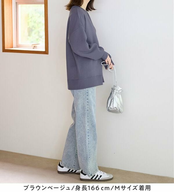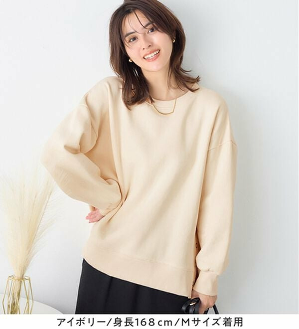 大人の抜け感裏起毛サイドボタントップス