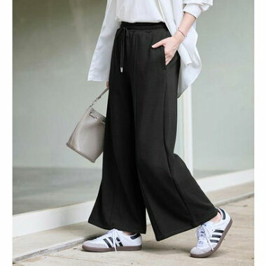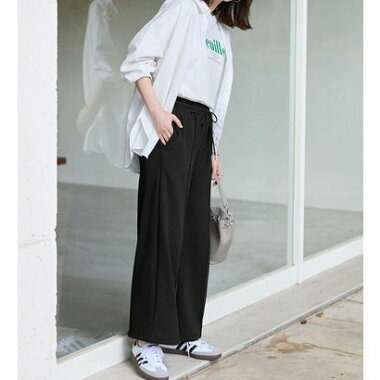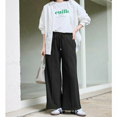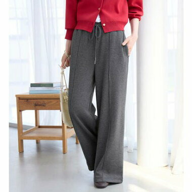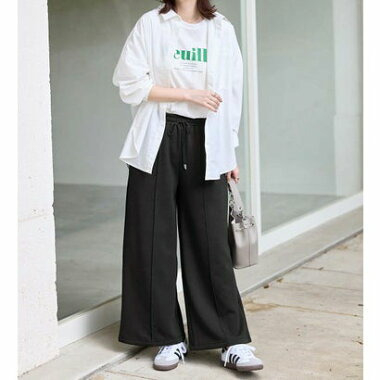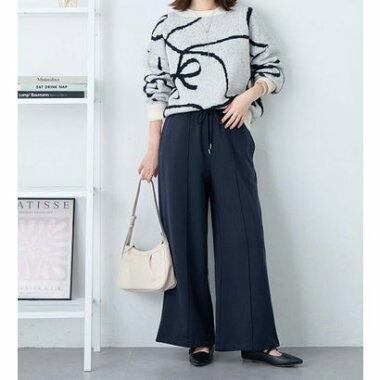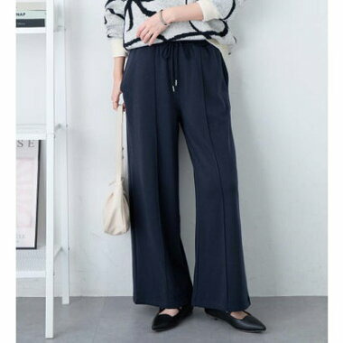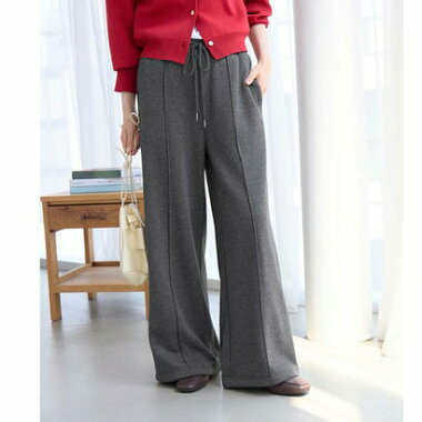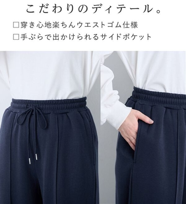 ・ウエスト総ゴムで楽ちんな穿き心地ながら、センターピンタックで綺麗めな印象もプラス。