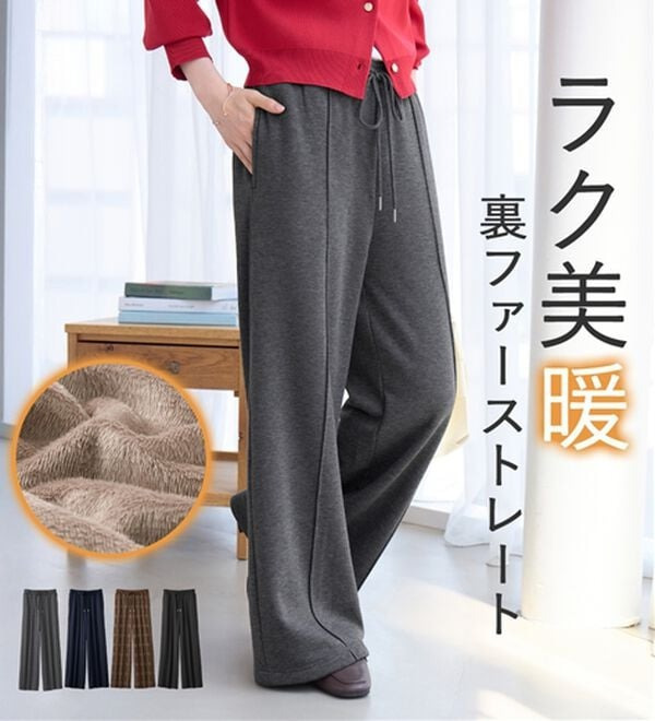・ストレートシルエットで脚のラインをカバーし美しく見せ、細見え効果も期待できます。