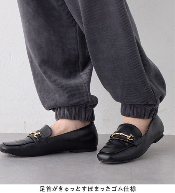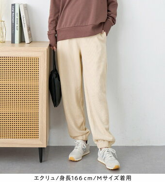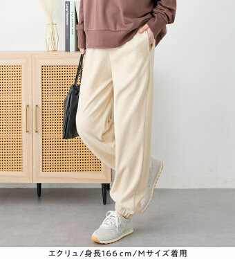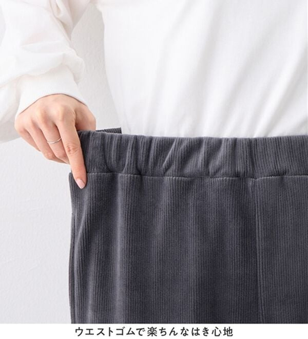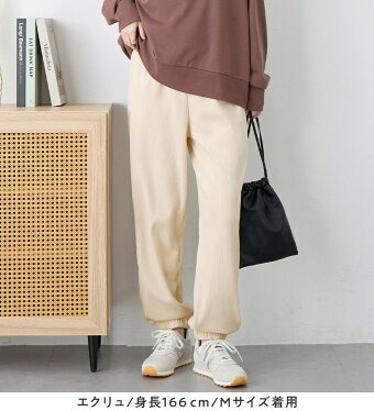・ゆったりとしたシルエットで楽ちんな穿き心地ながら、リブの縦ラインですっきりとした印象に。