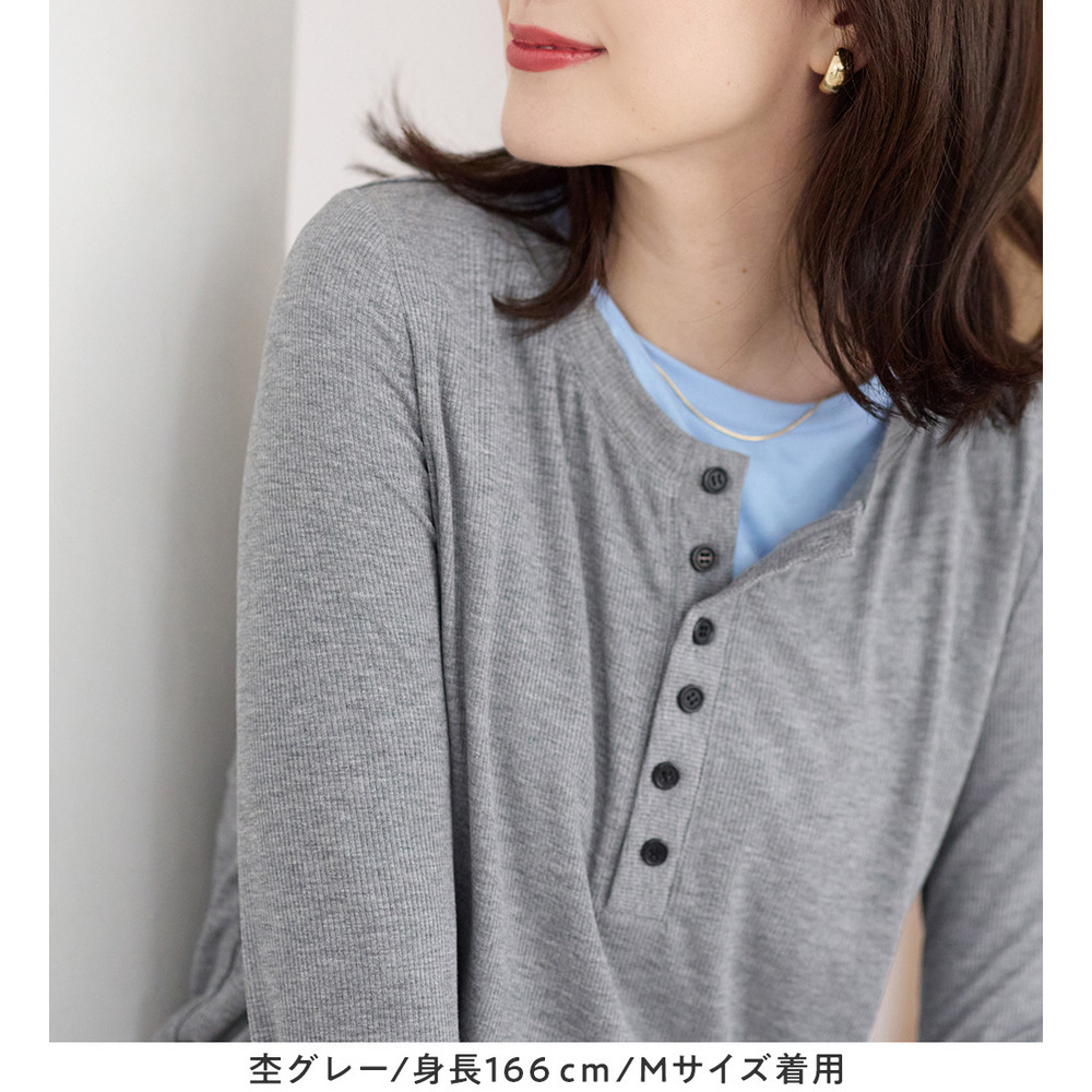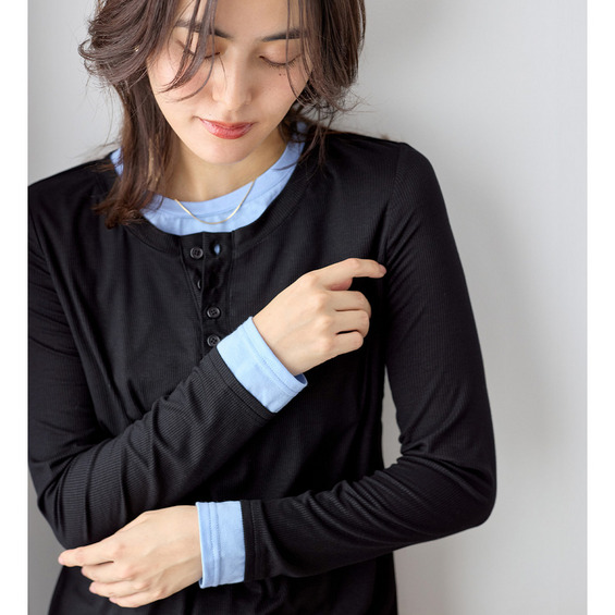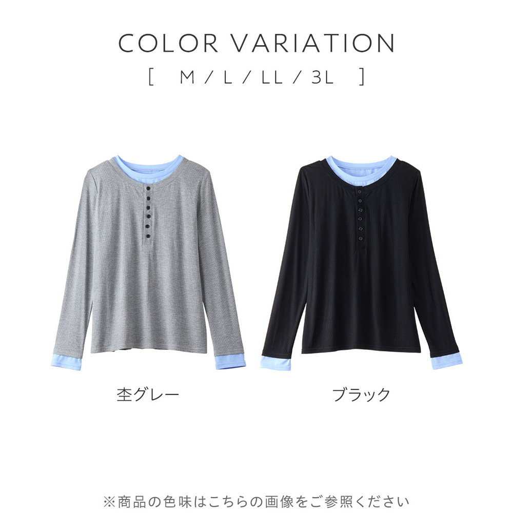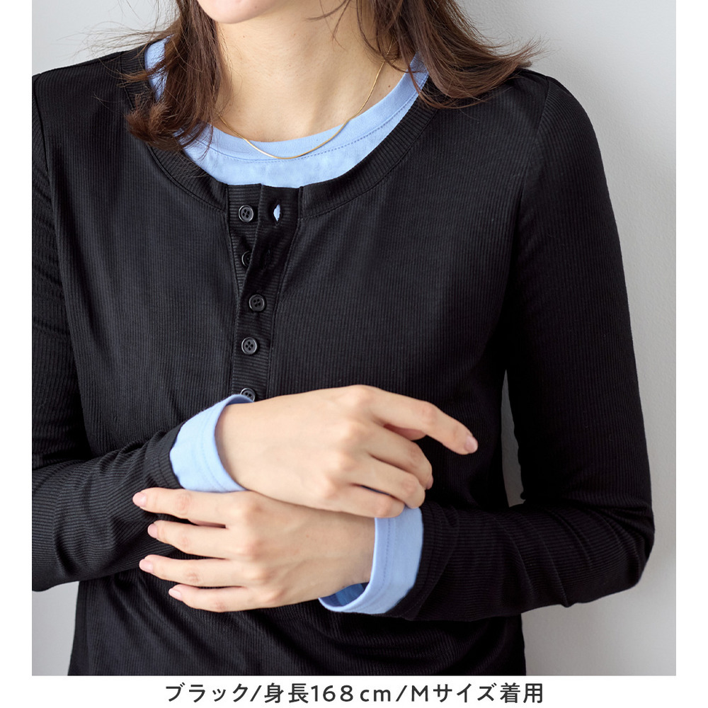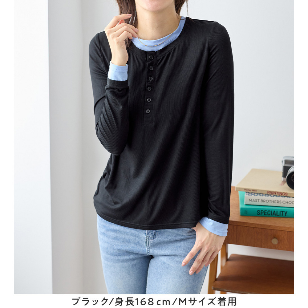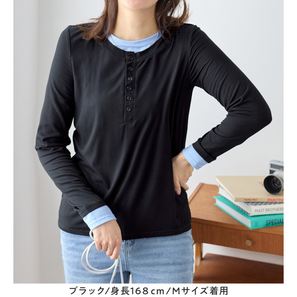 1枚着映えレイヤード風ヘンリーネックリブトップス 大きいサイズ レディース