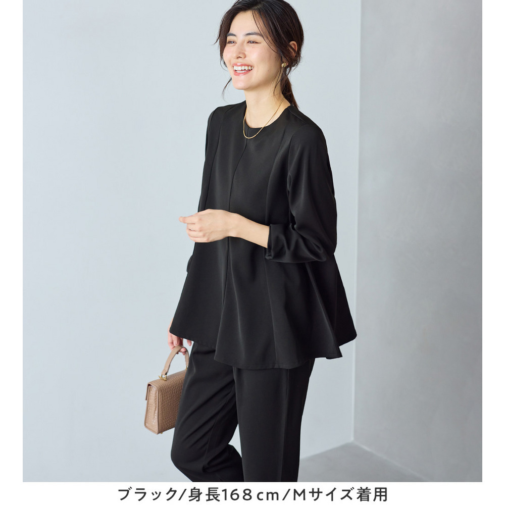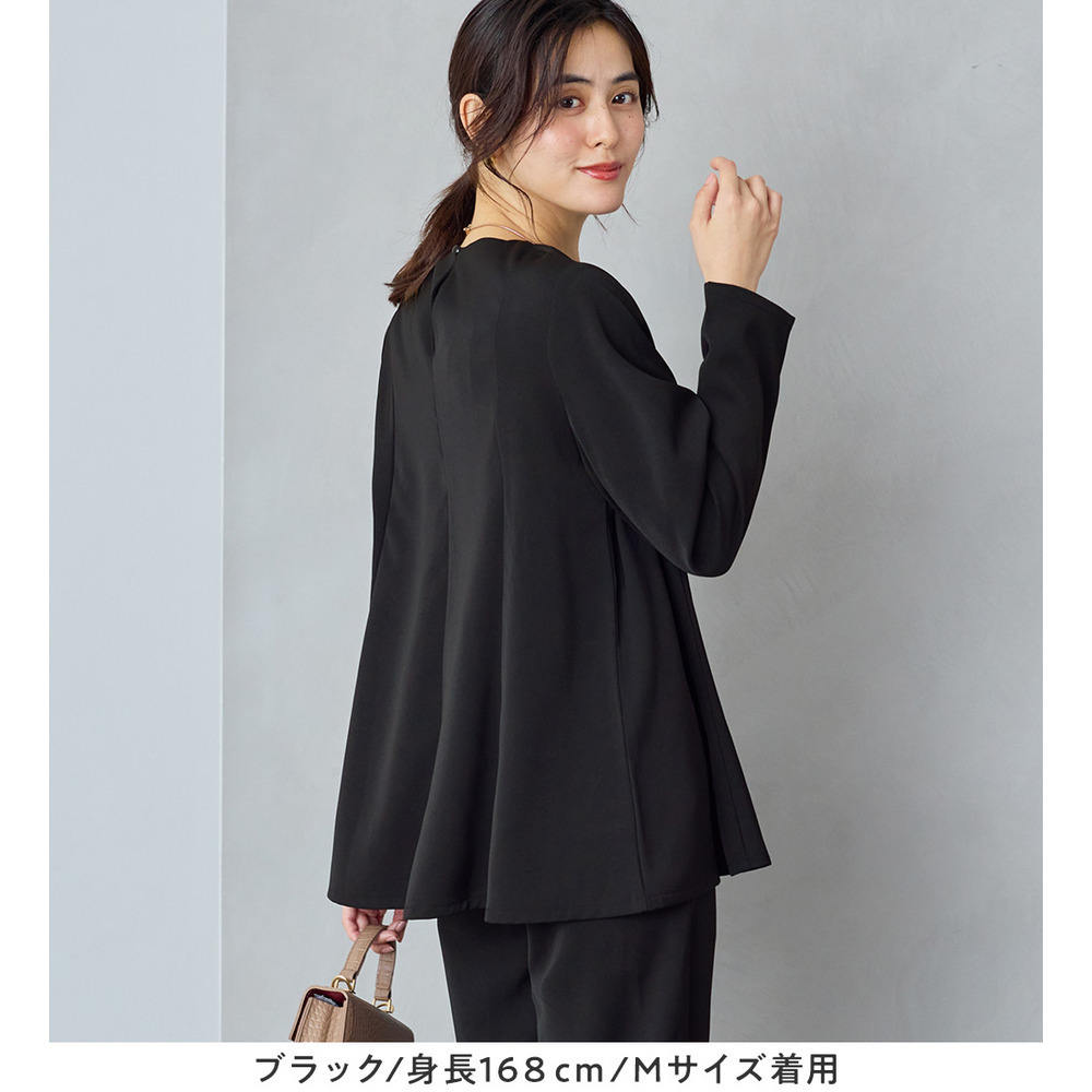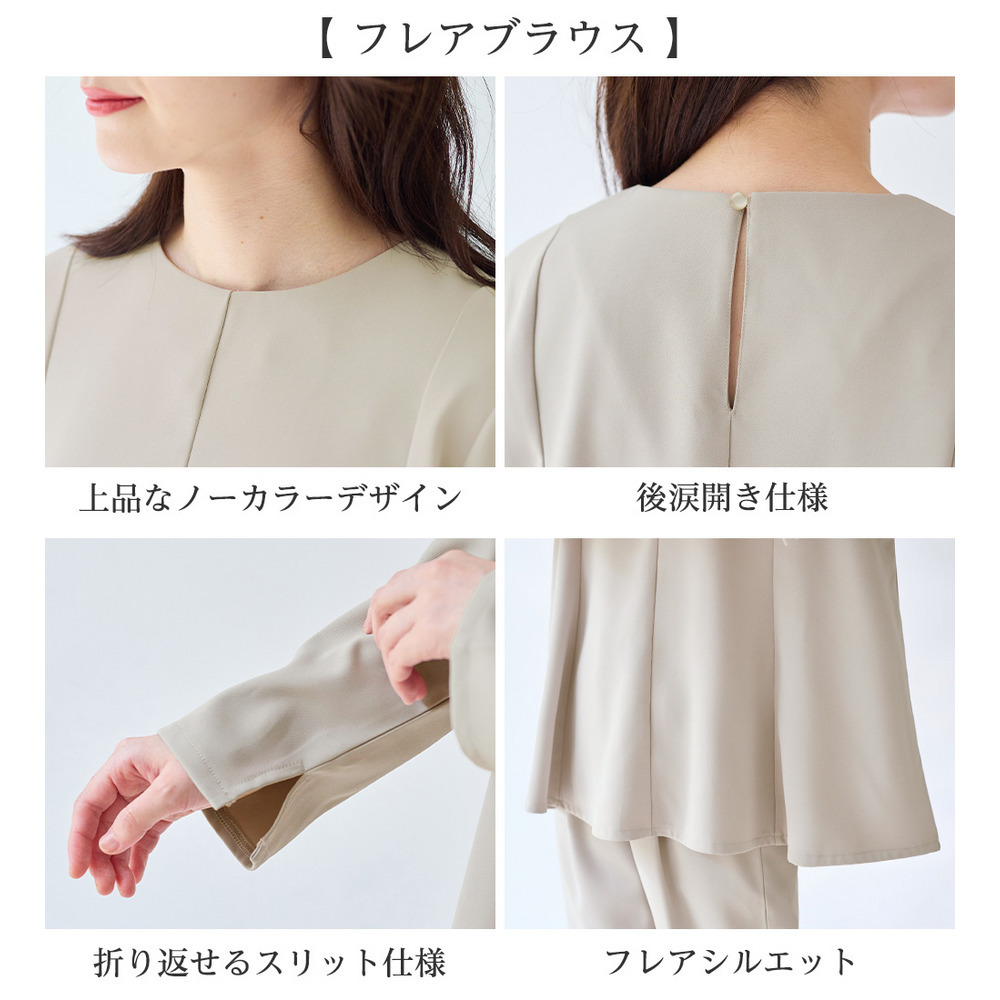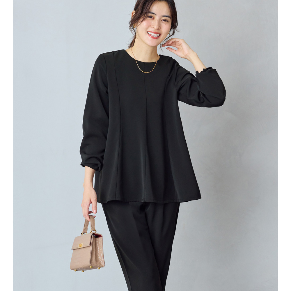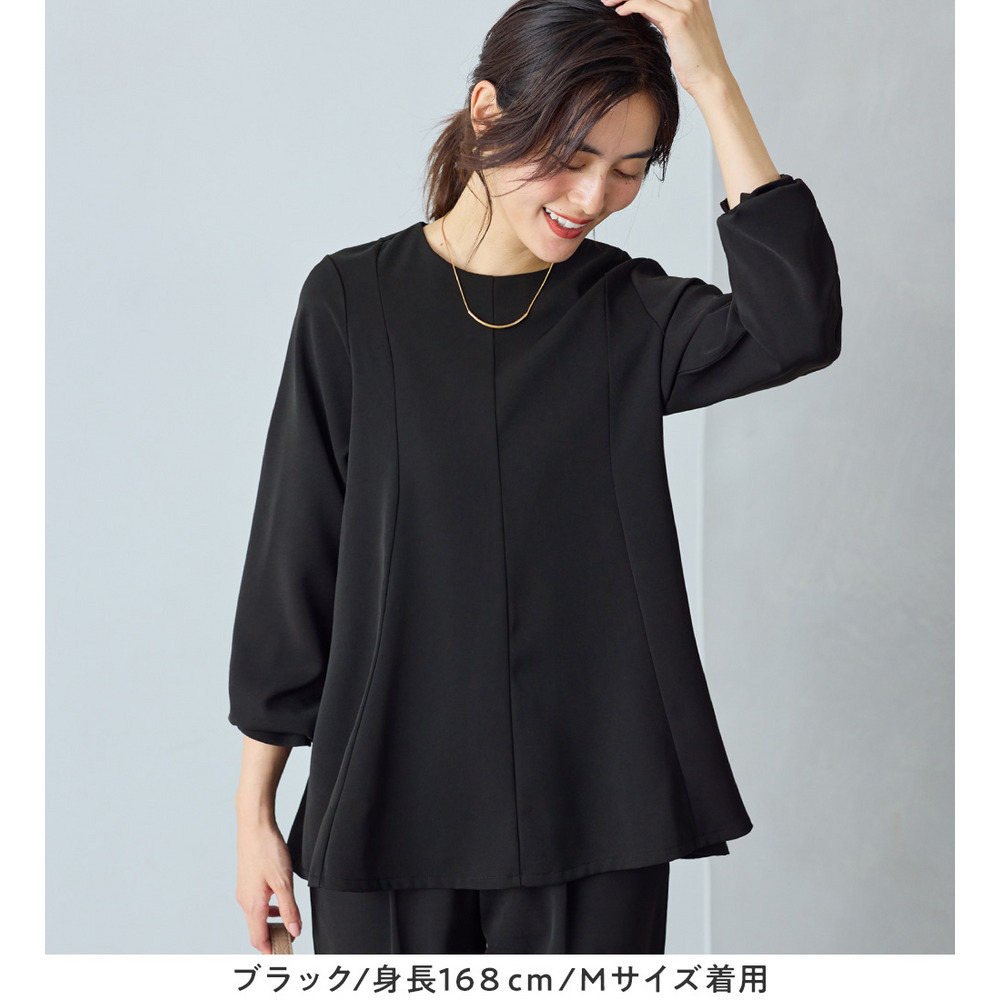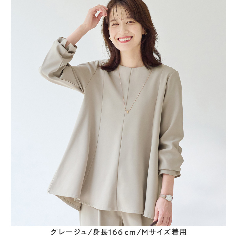 上品さとデザイン性を兼ね備えたフレアーブラウス。