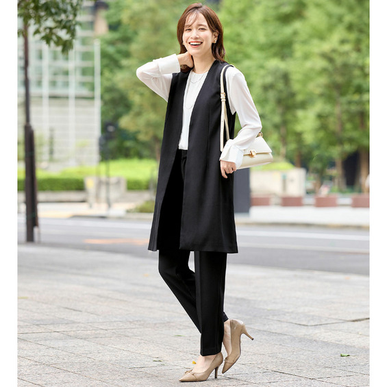 美ラインを叶える!ロングベストセットアップ 大きいサイズレディース