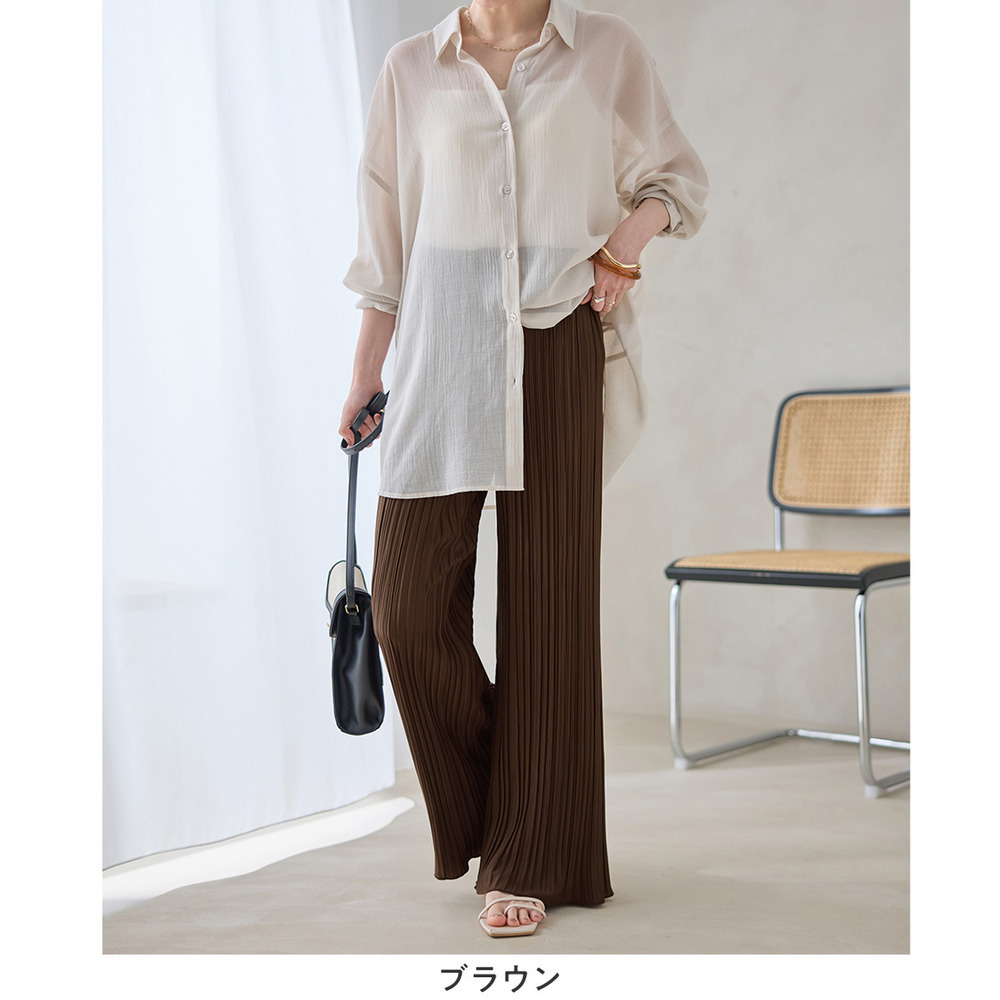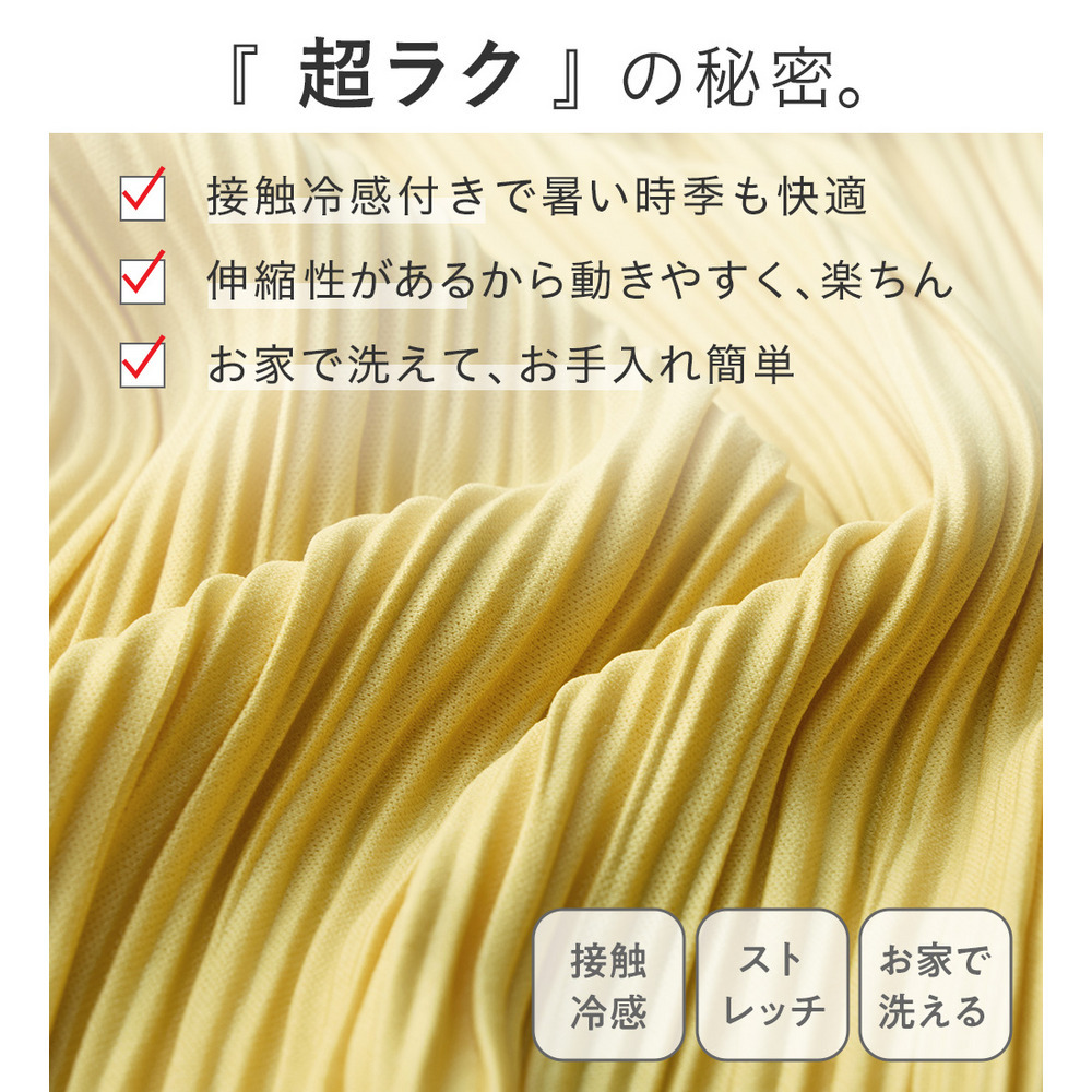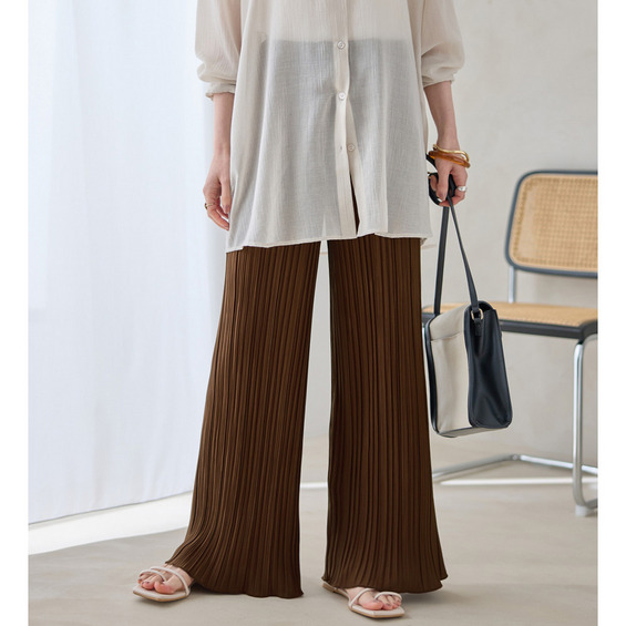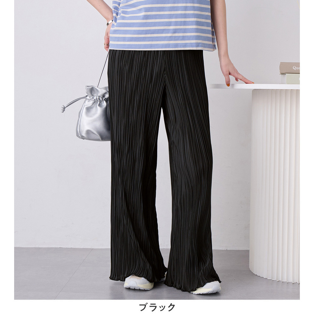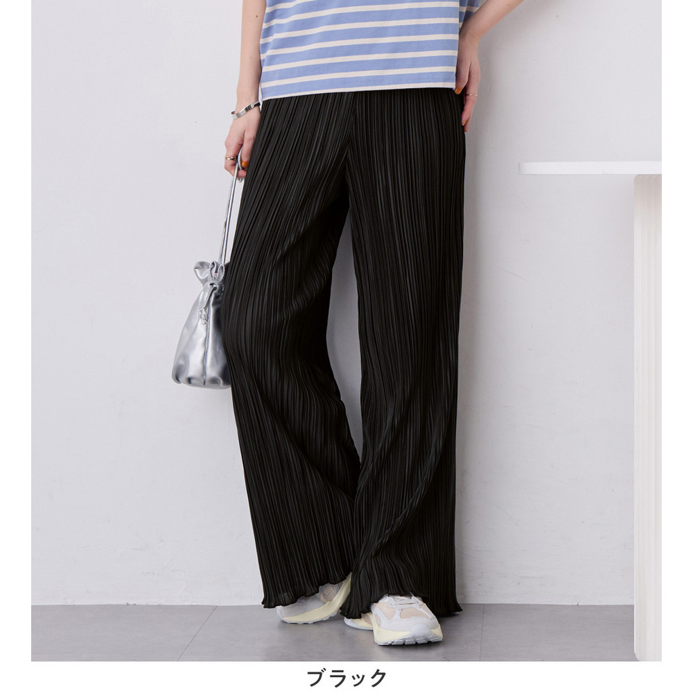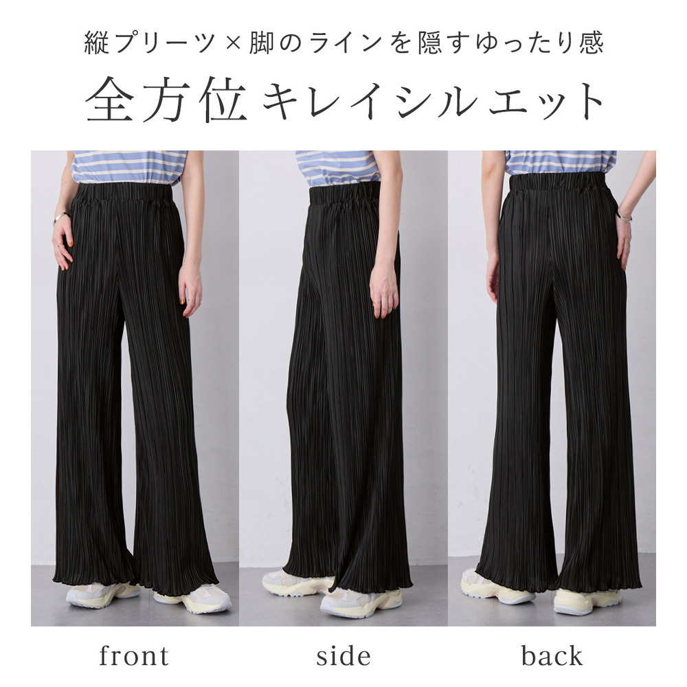 ・細ピッチのプリーツデザインが縦ラインを強調し、脚をすっきりと演出します。