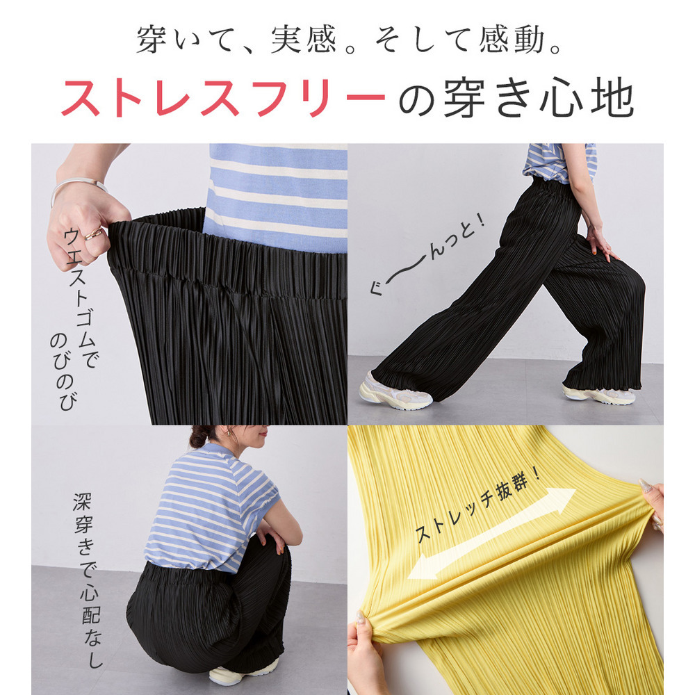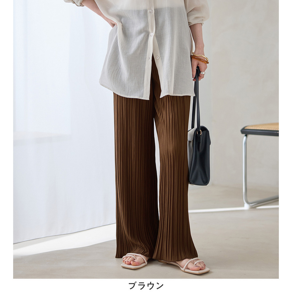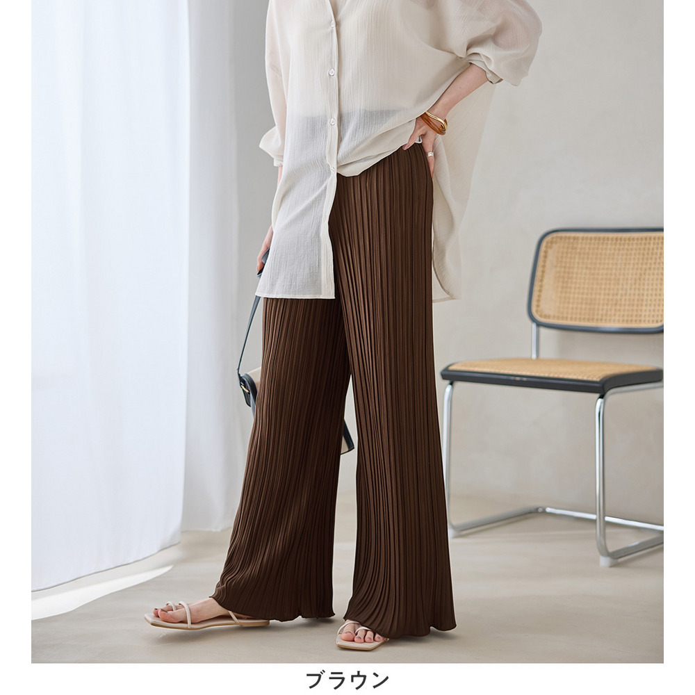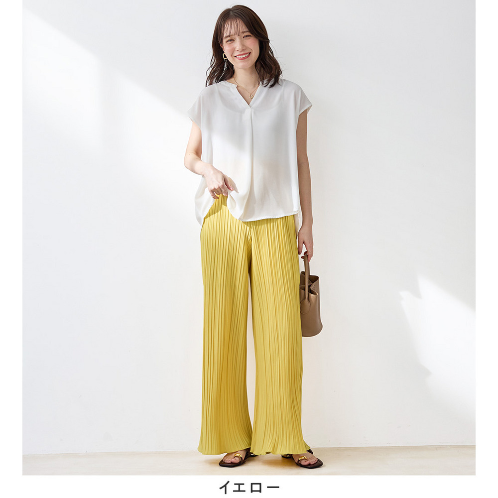 【股下66cm】着心地楽ちん!さらっと軽やかプリーツパンツ