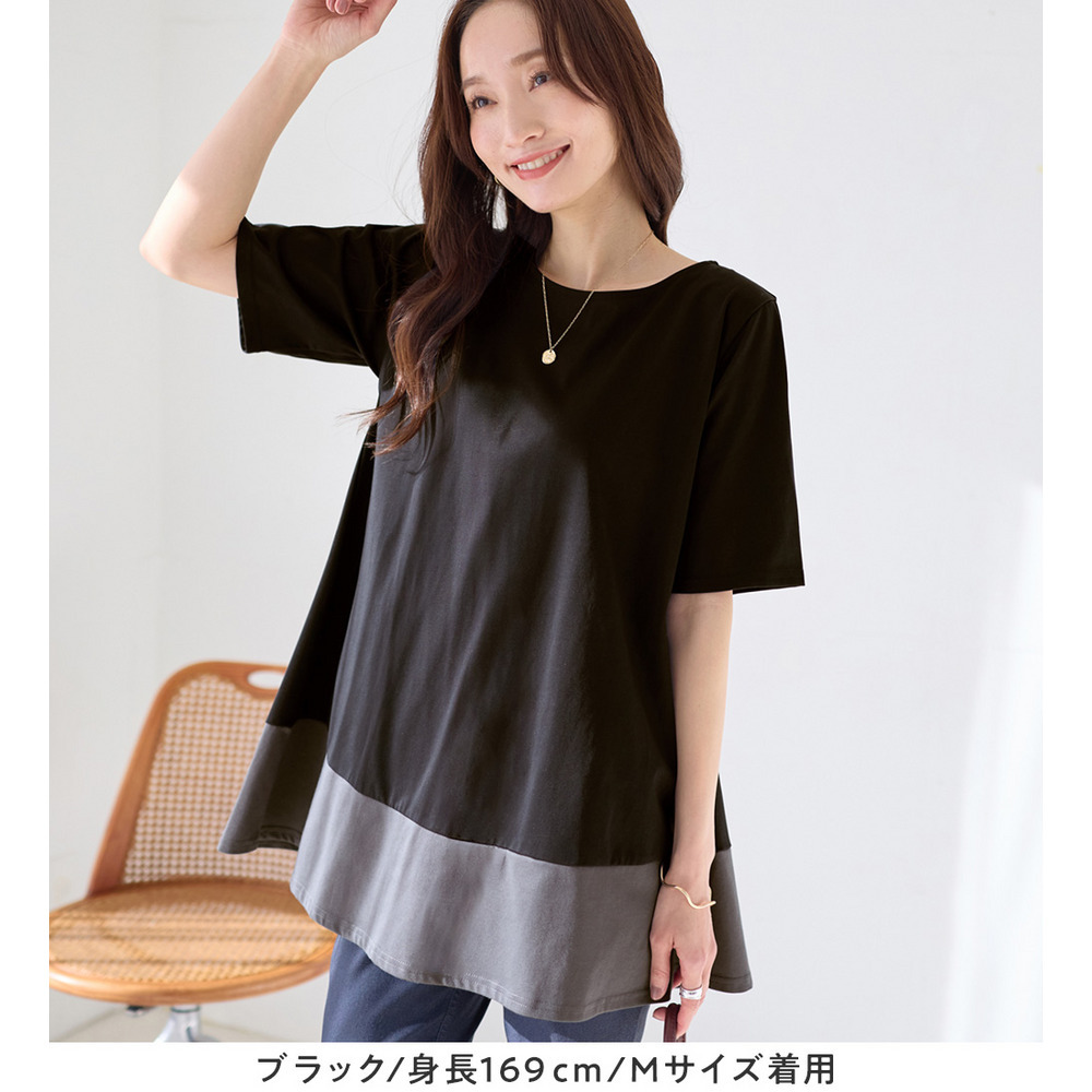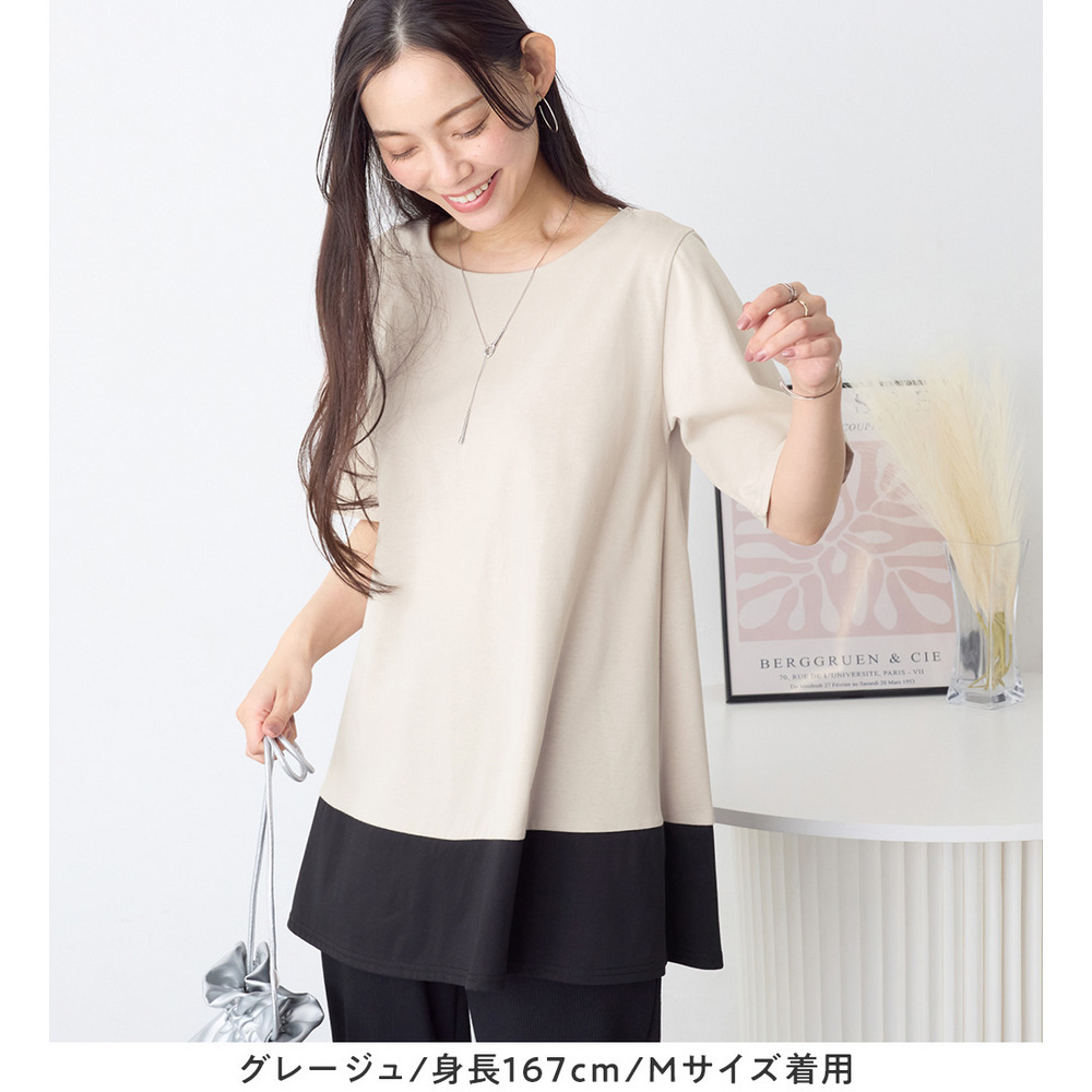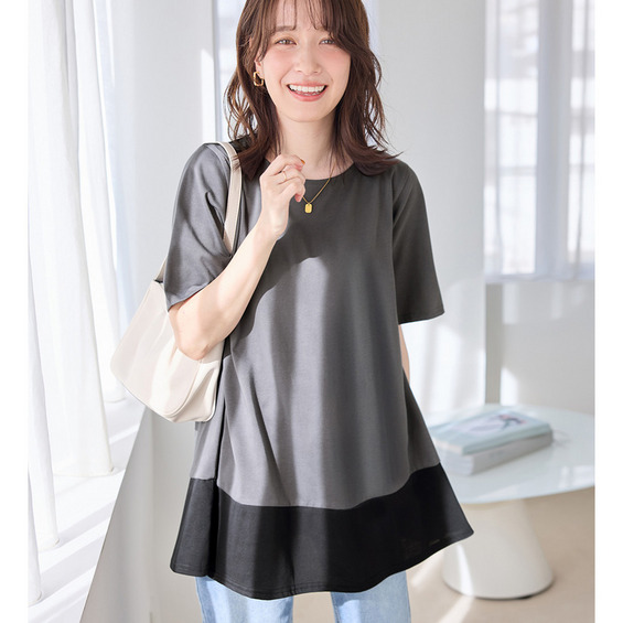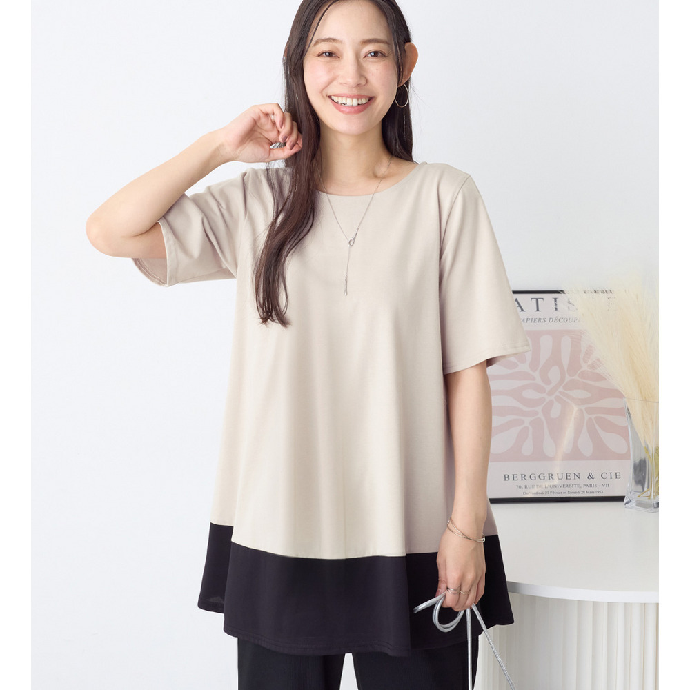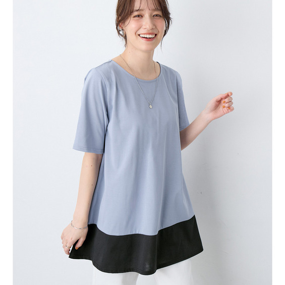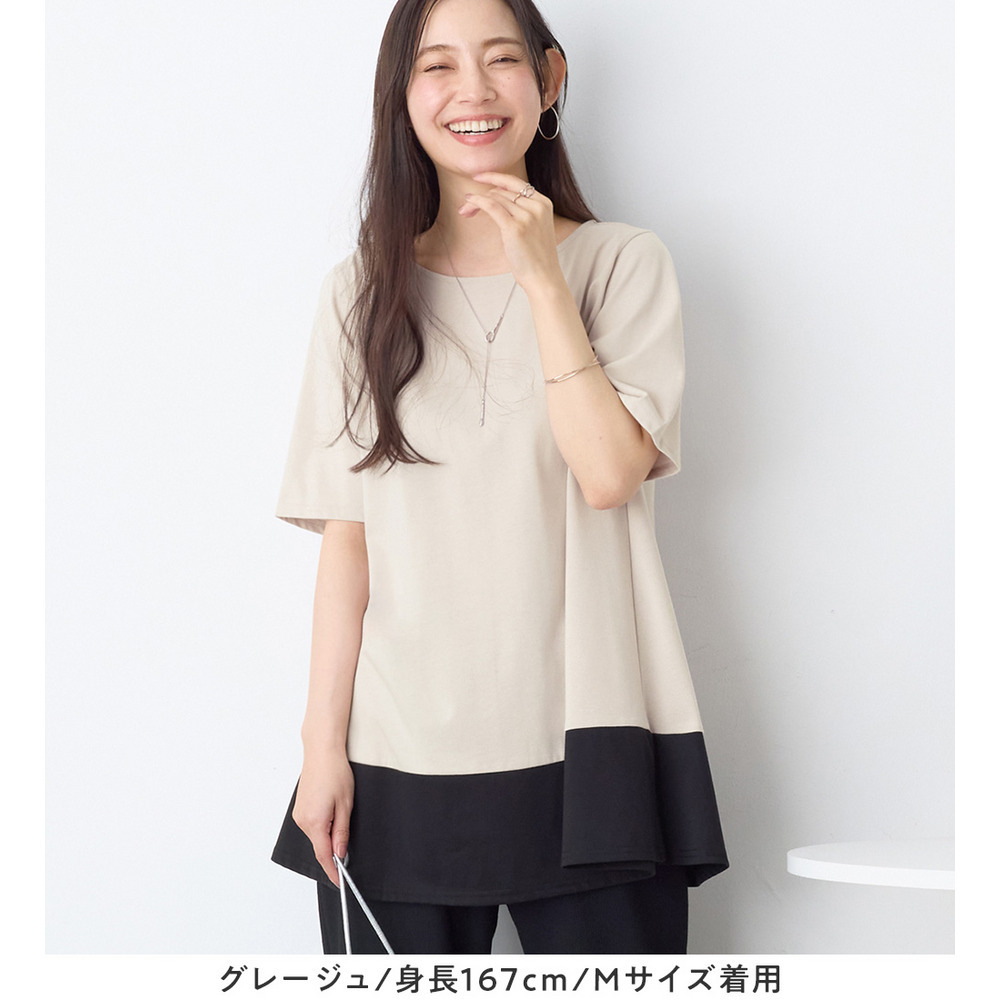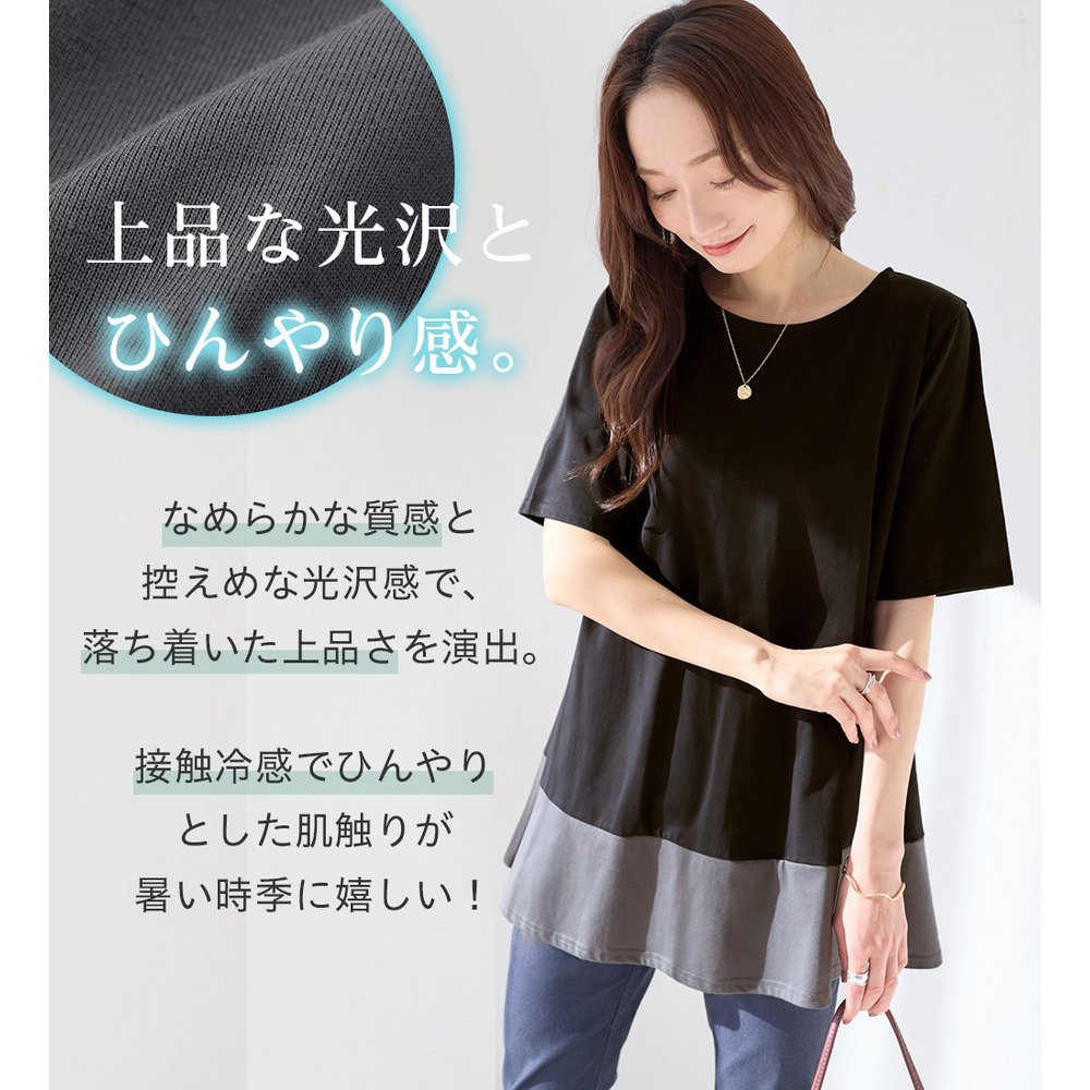 【接触冷感】なめらか上品カットソー配色切替Aラインチュニック