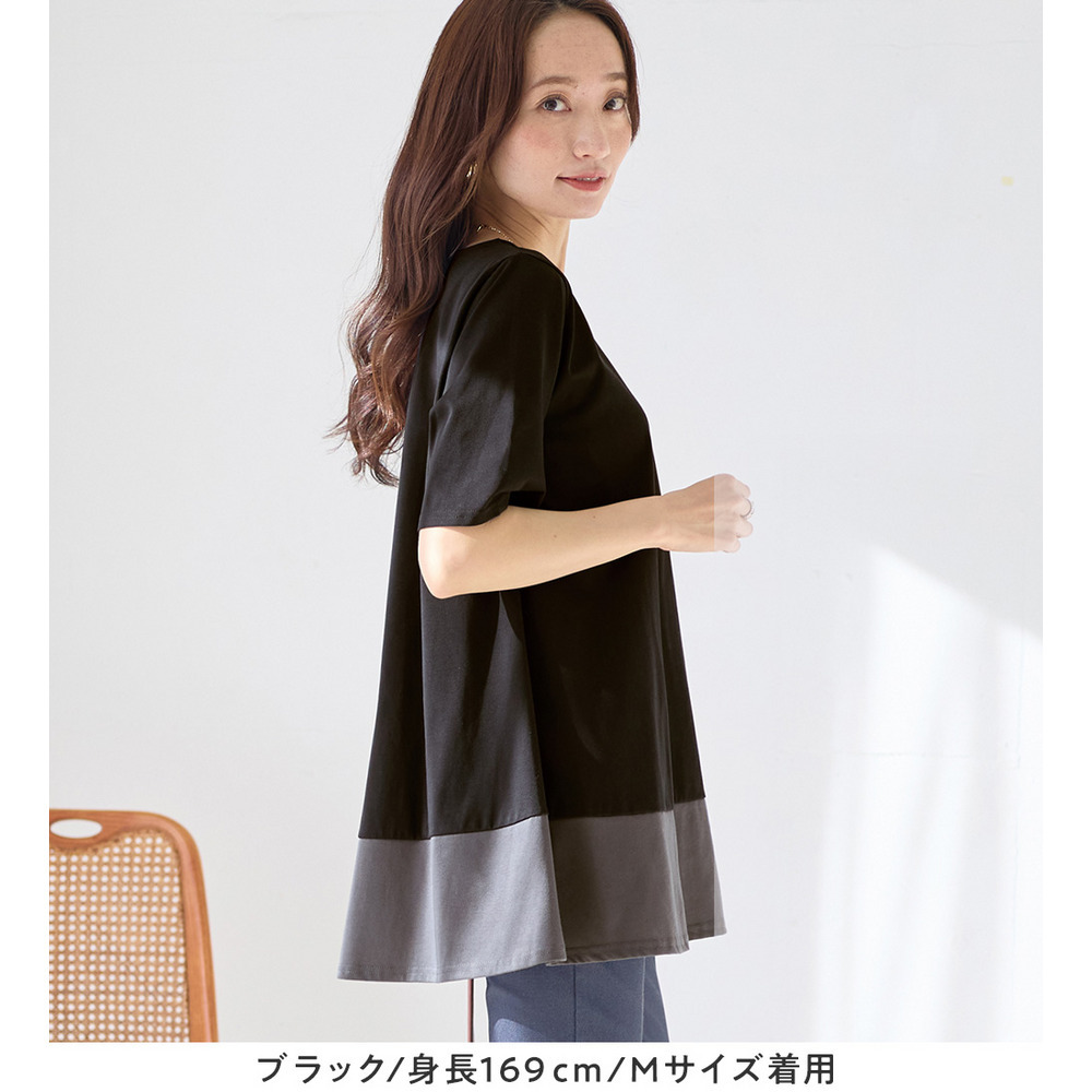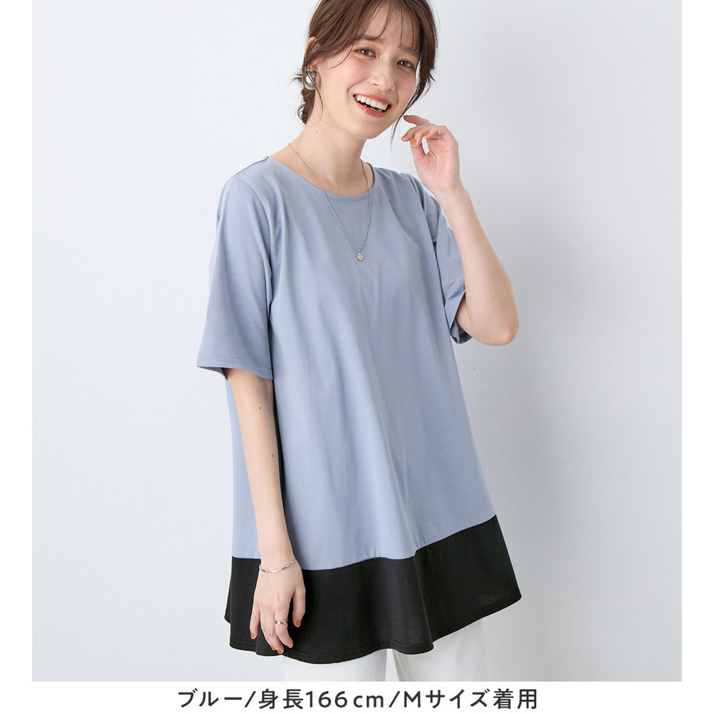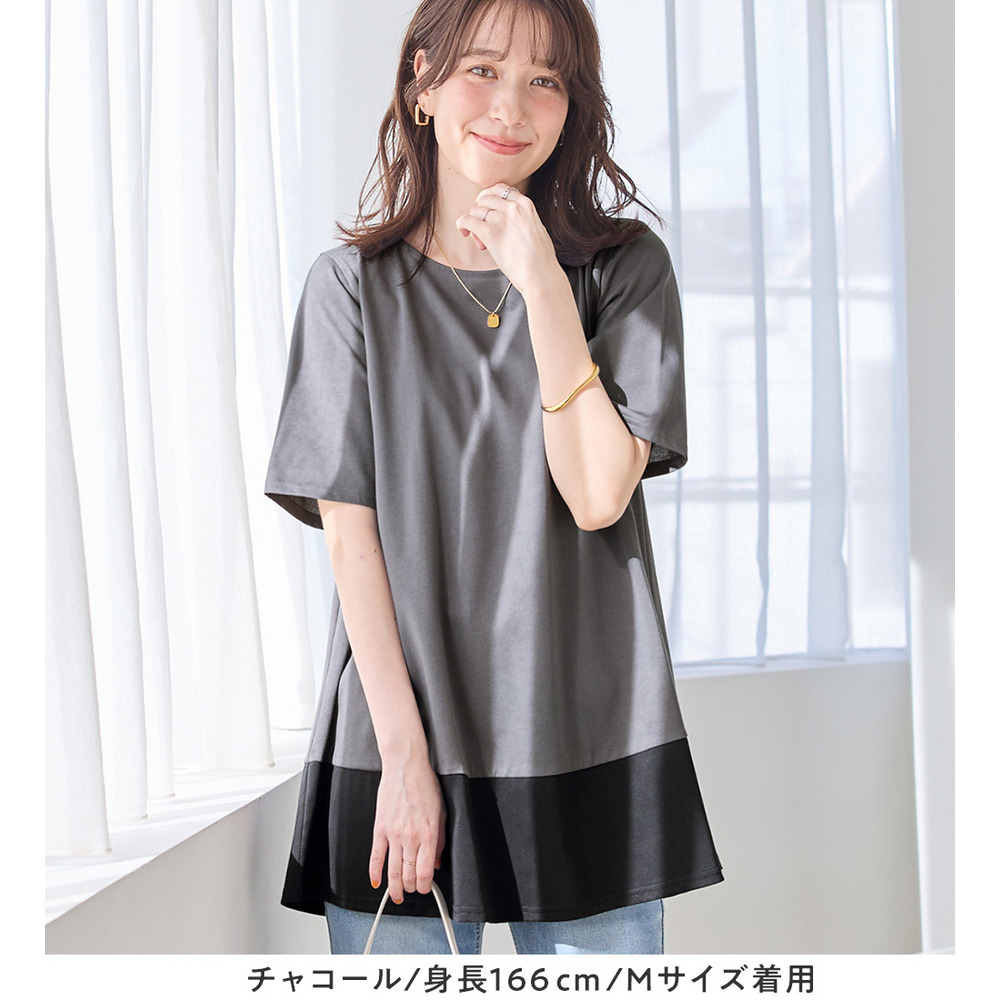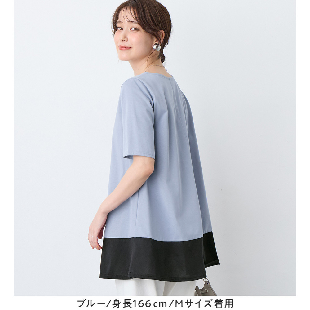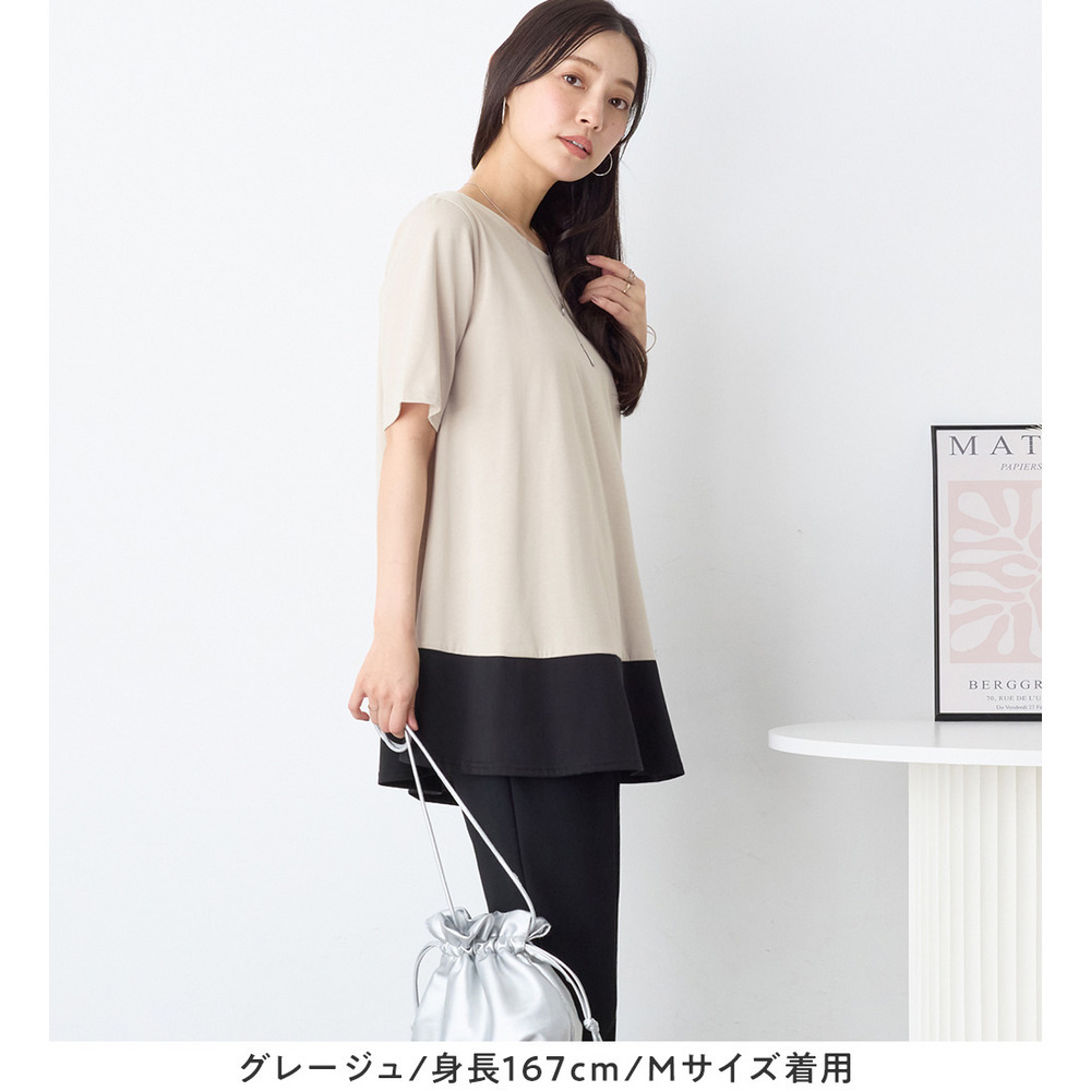 【接触冷感】なめらか上品カットソー配色切替Aラインチュニック