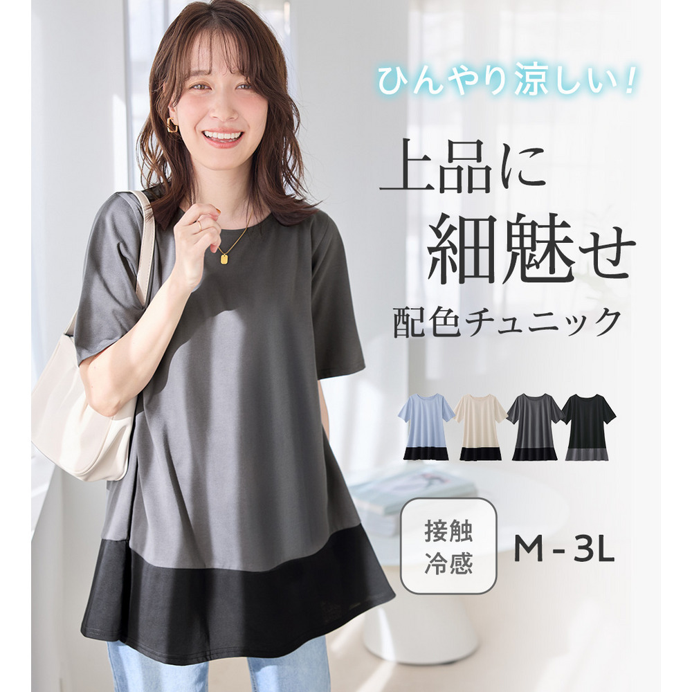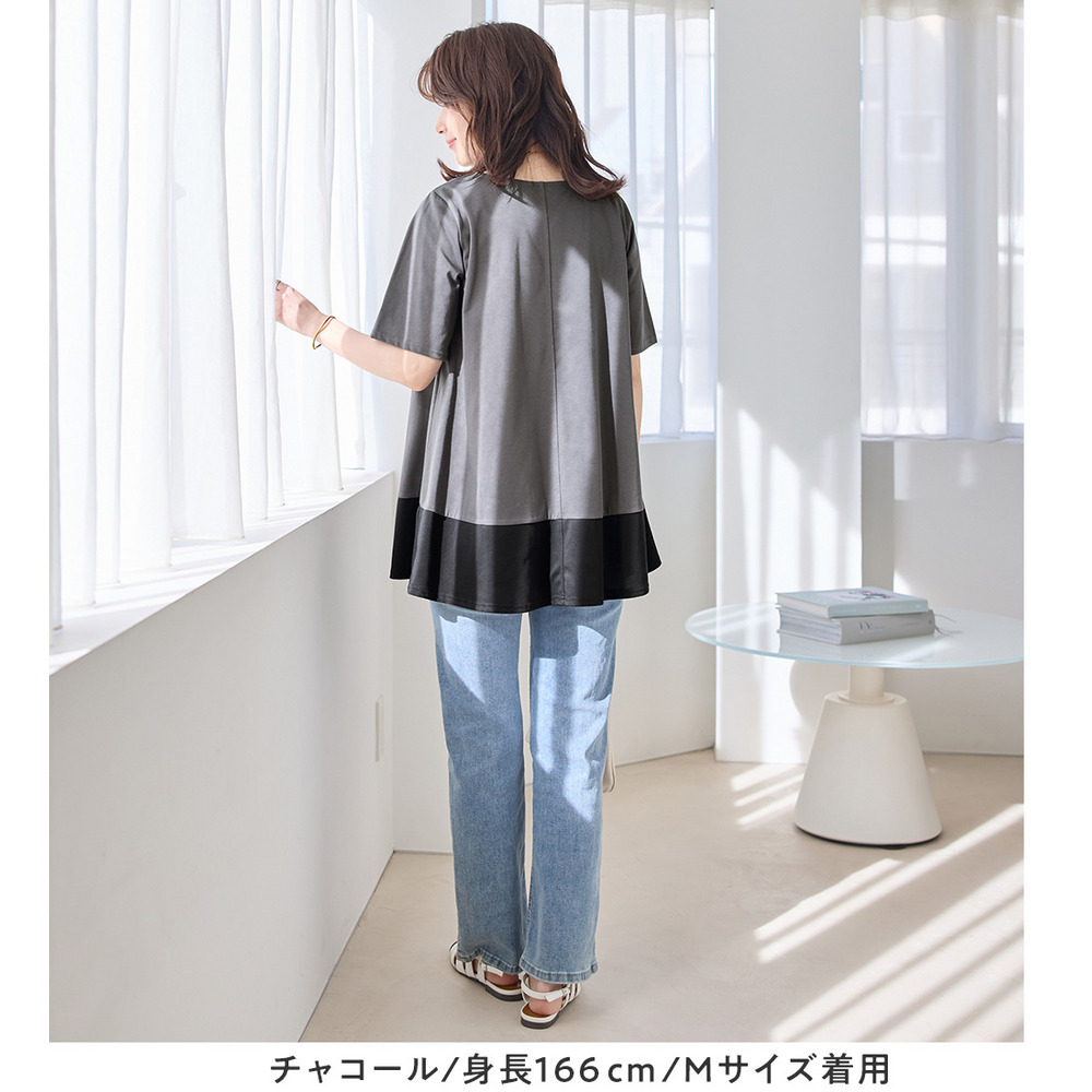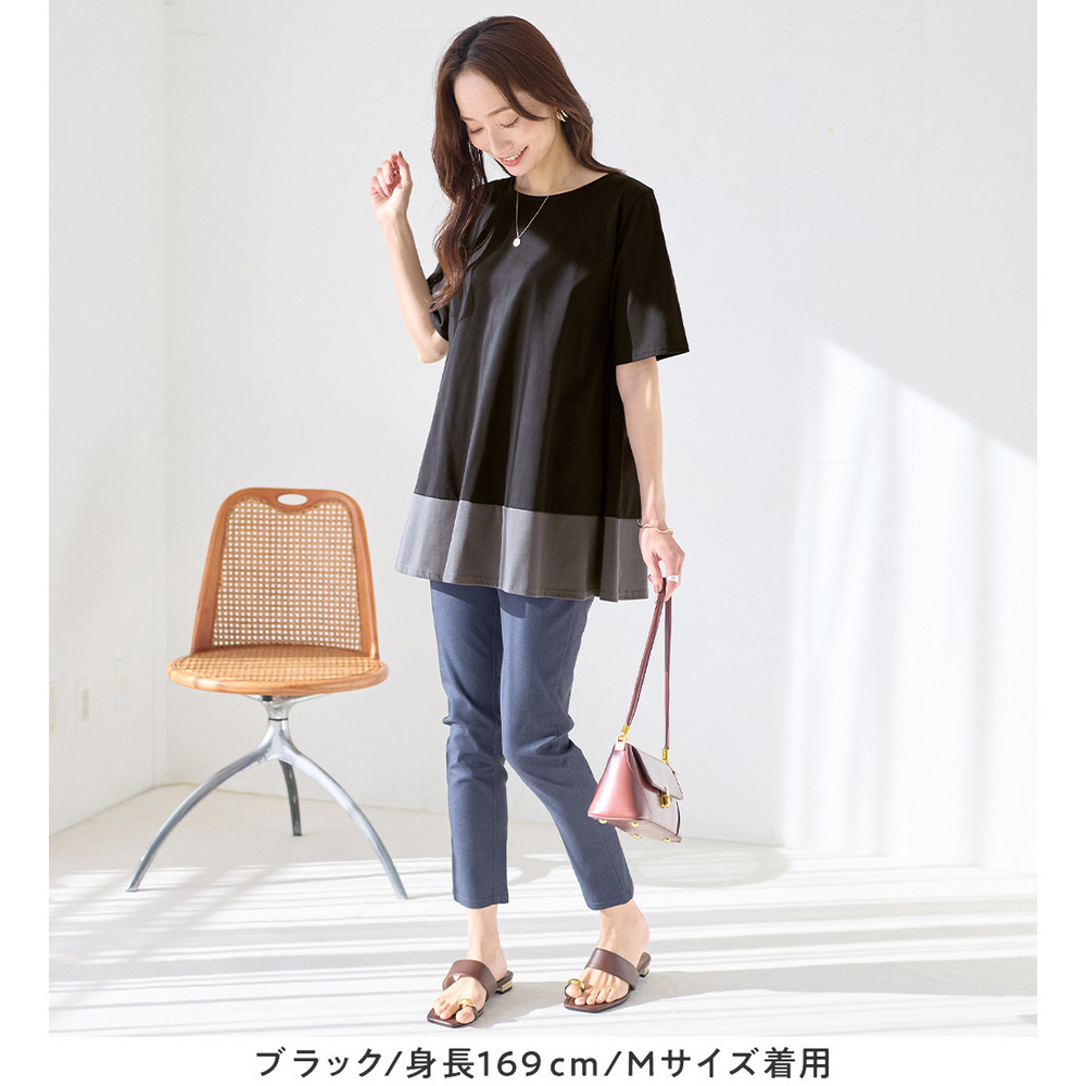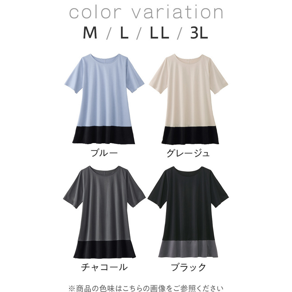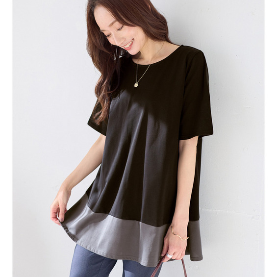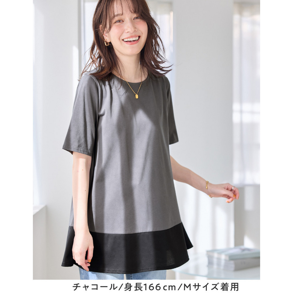 【接触冷感】なめらか上品カットソー配色切替Aラインチュニック