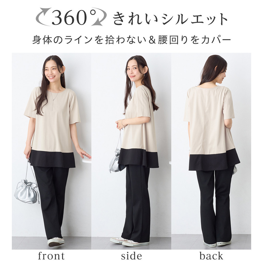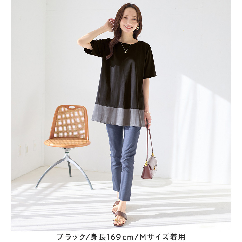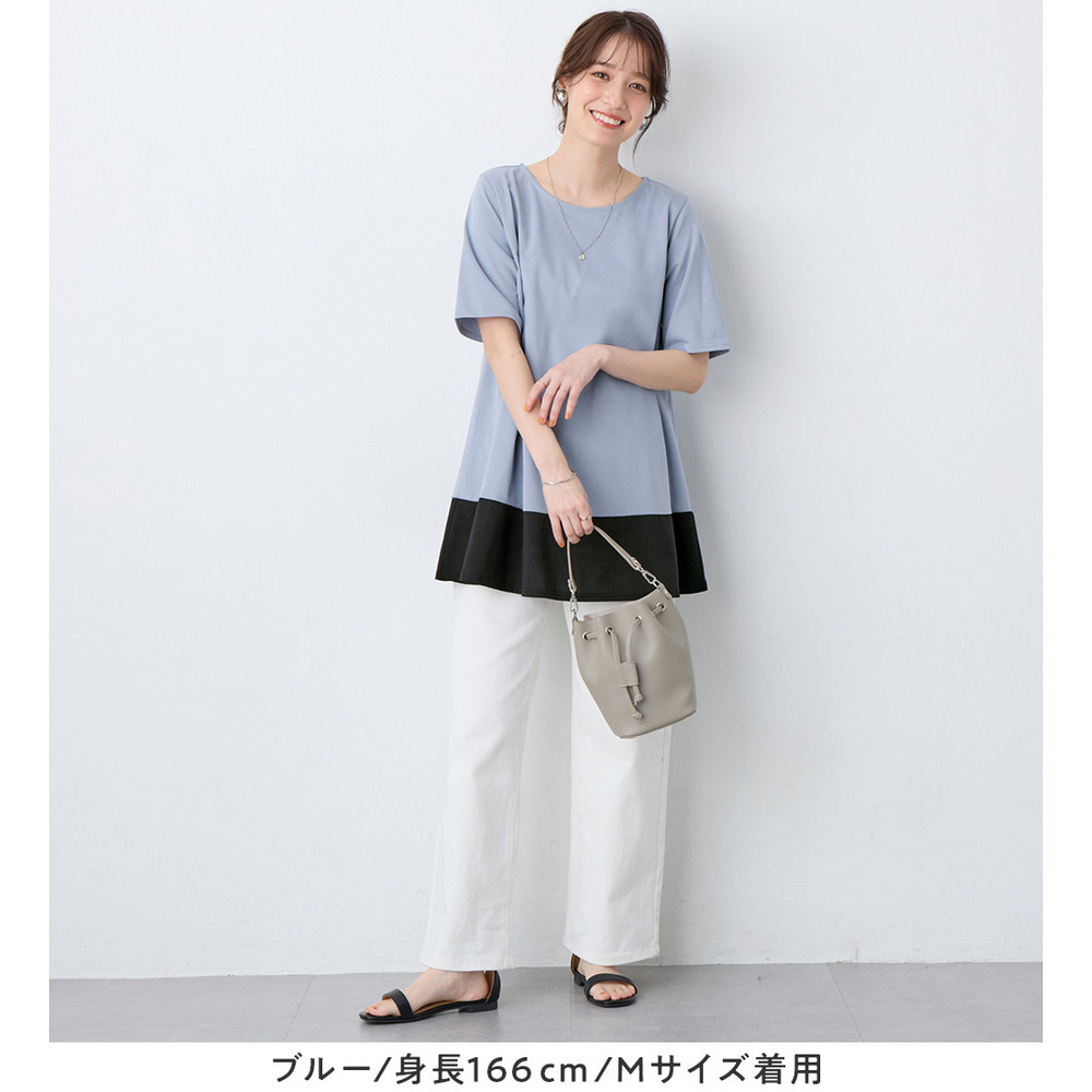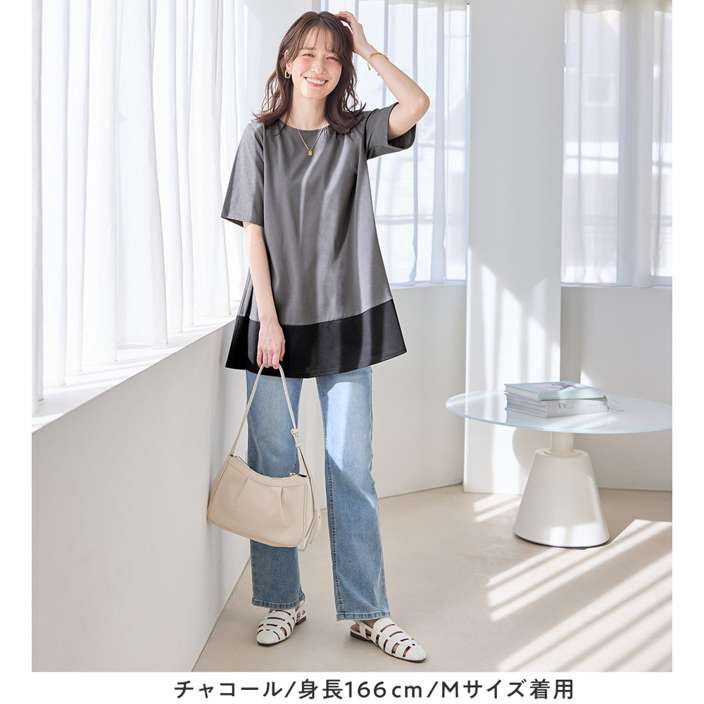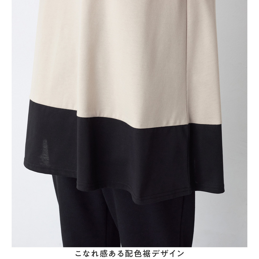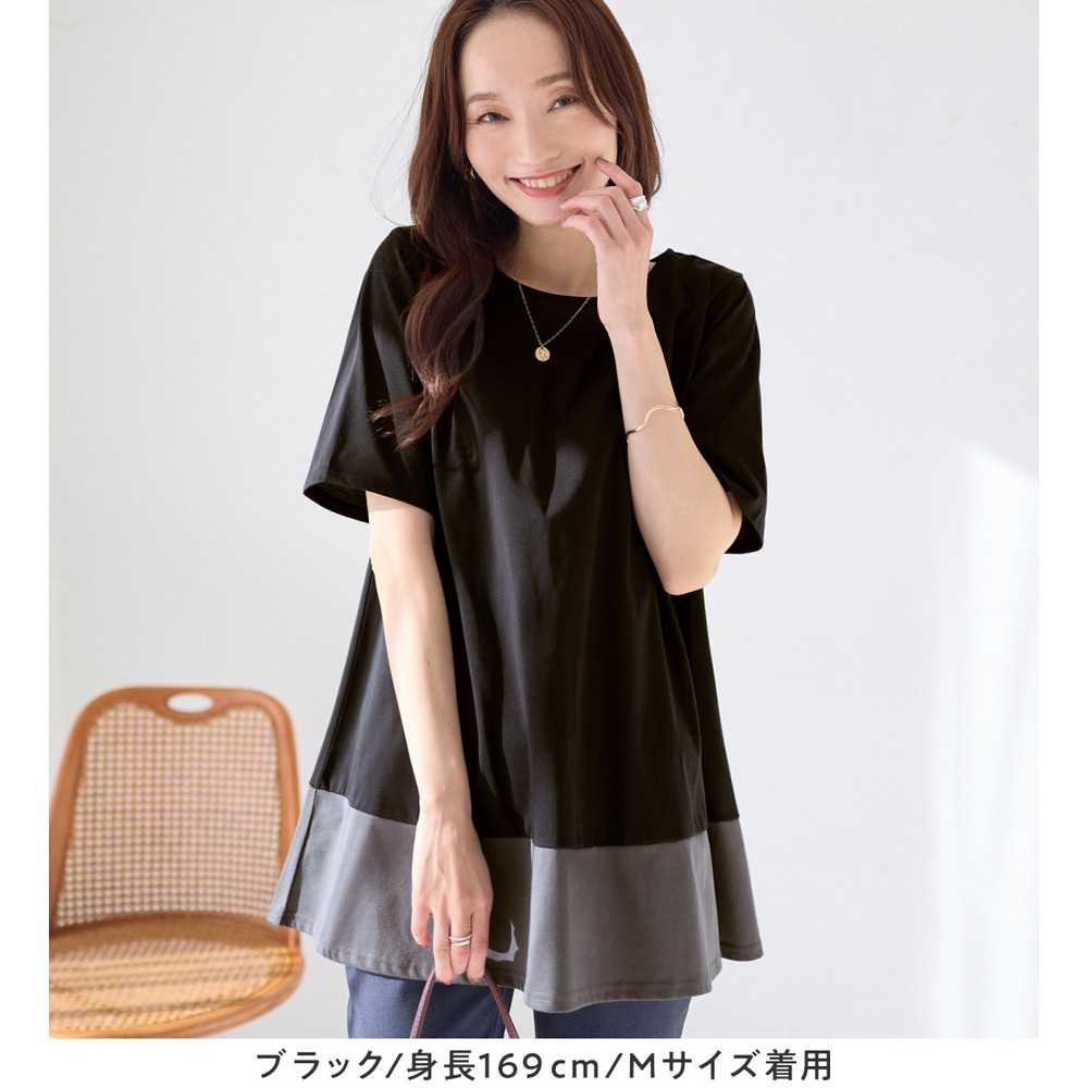 【接触冷感】なめらか上品カットソー配色切替Aラインチュニック