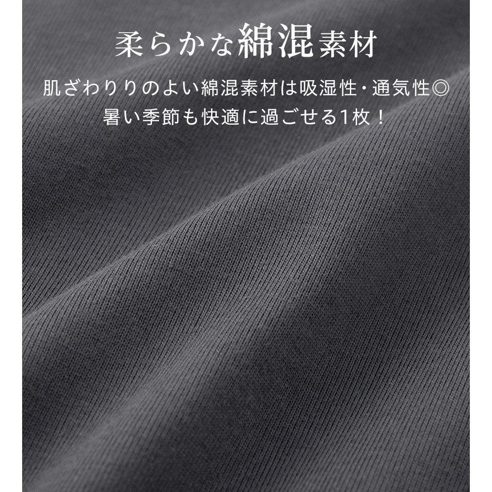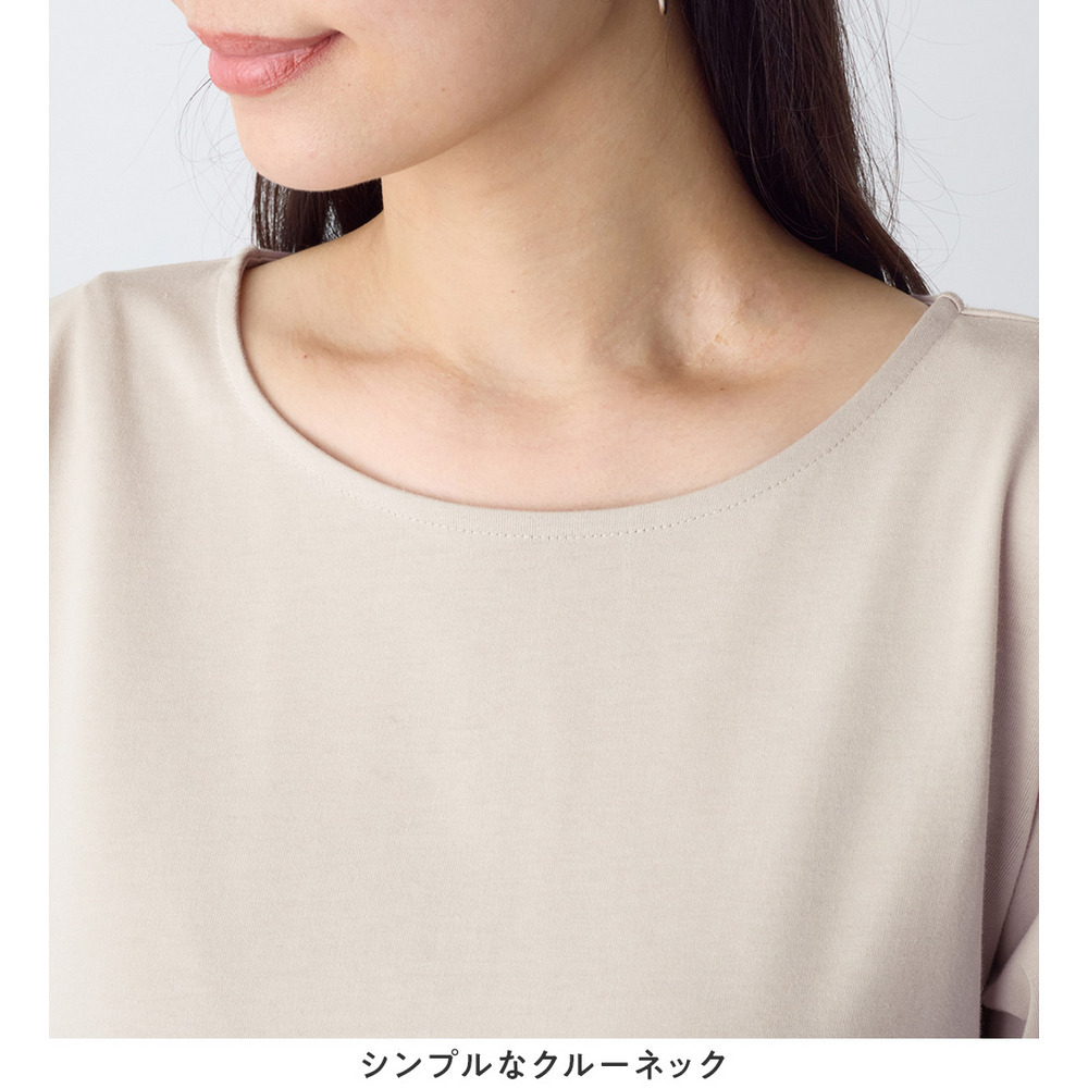 ・長めの半袖丈で、二の腕をしっかり隠しつつ安心感のある着心地。