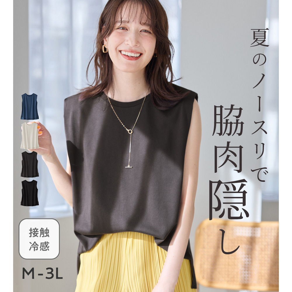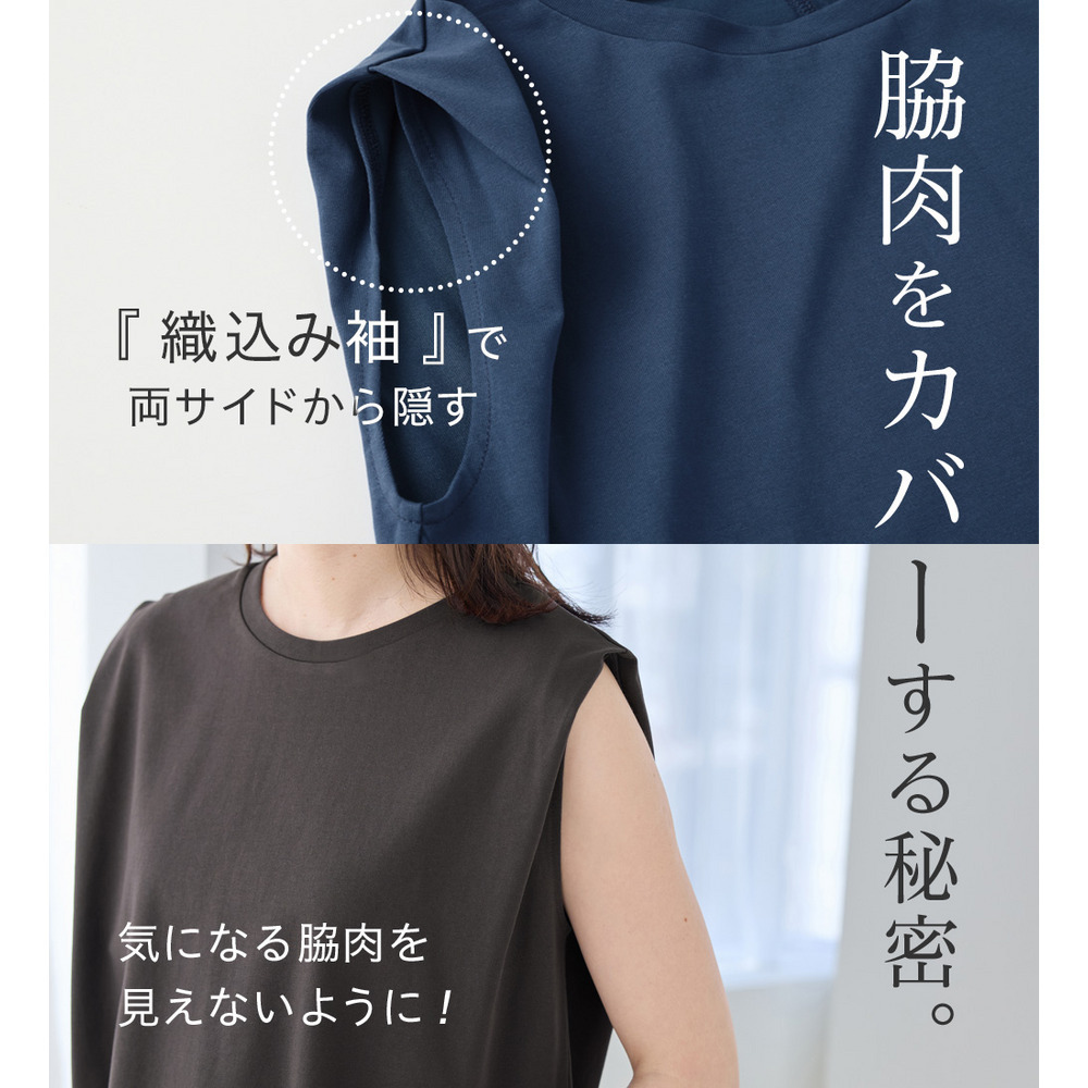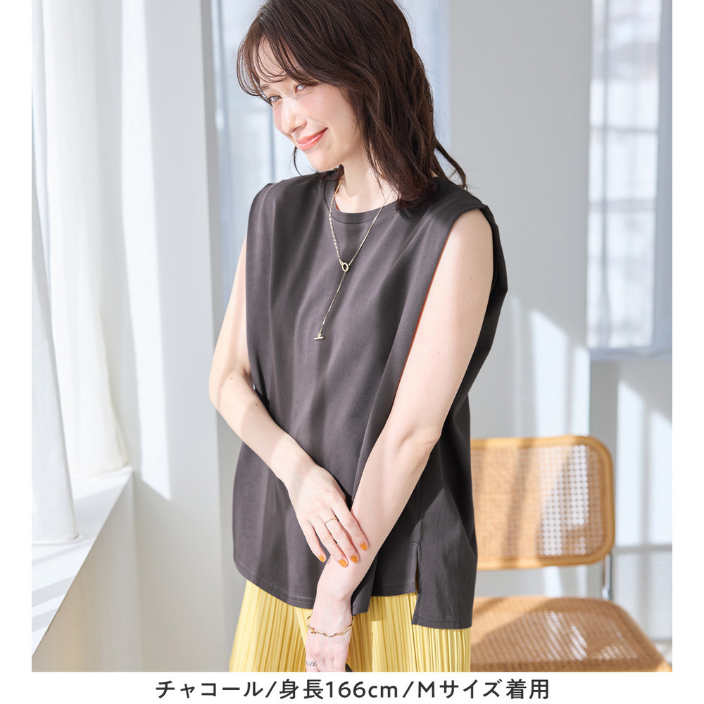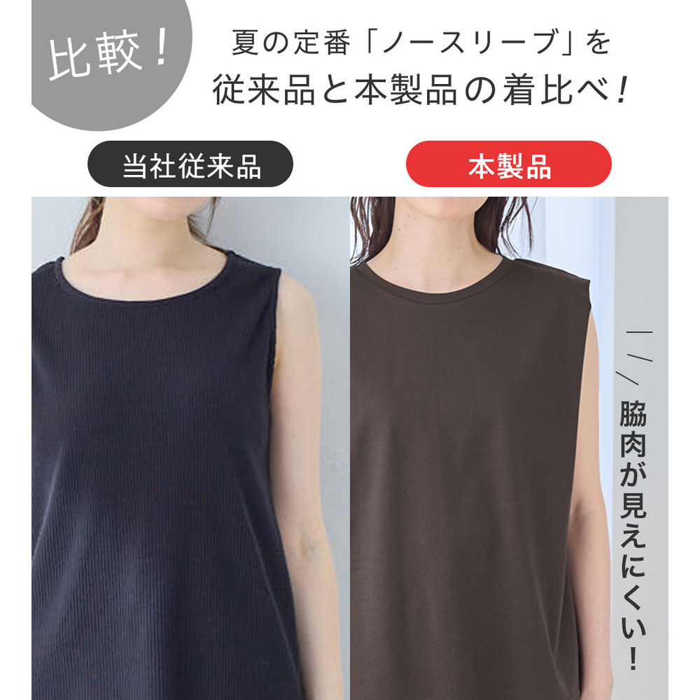・ノースリーブでも脇肉が見えにくく、1枚でさらっと着やすいデザイン