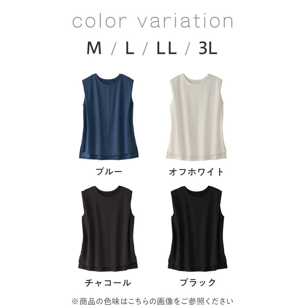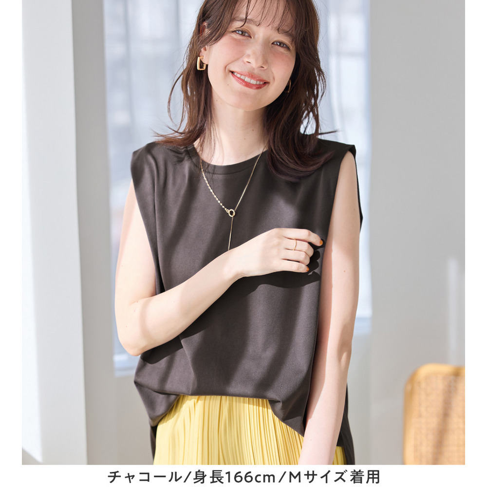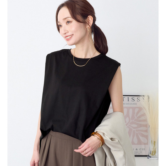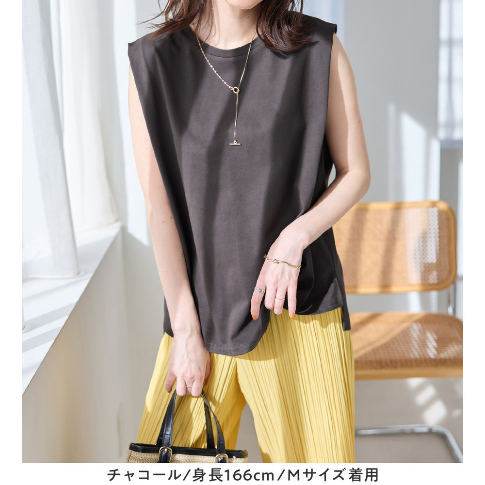 ・ノースリーブでも脇肉が見えにくく、1枚でさらっと着やすいデザイン