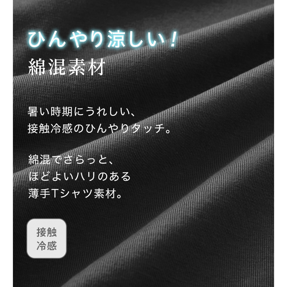 ・接触冷感機能付きで、着た瞬間ひんやり心地よいTシャツ素材