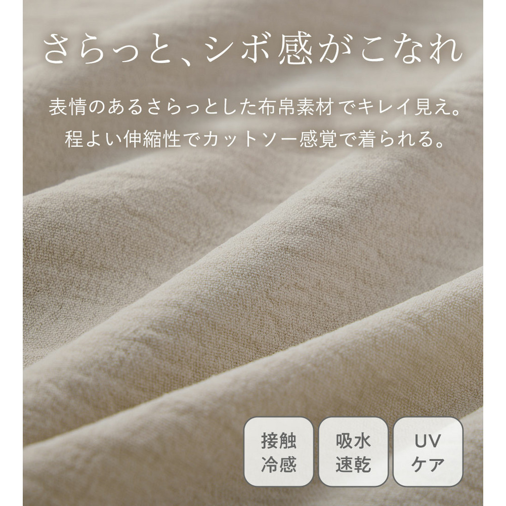 吸水速乾機能付き:汗ばむ季節も乾きやすく、ベタつきにくいサラッとした肌触り。