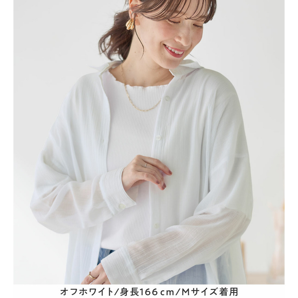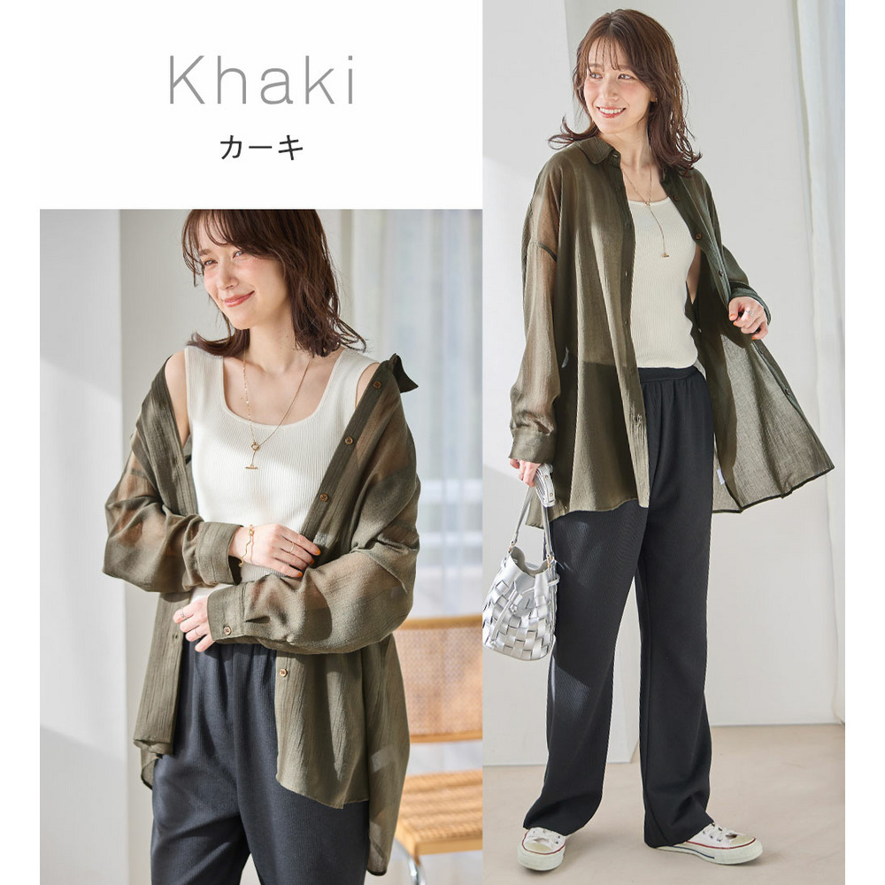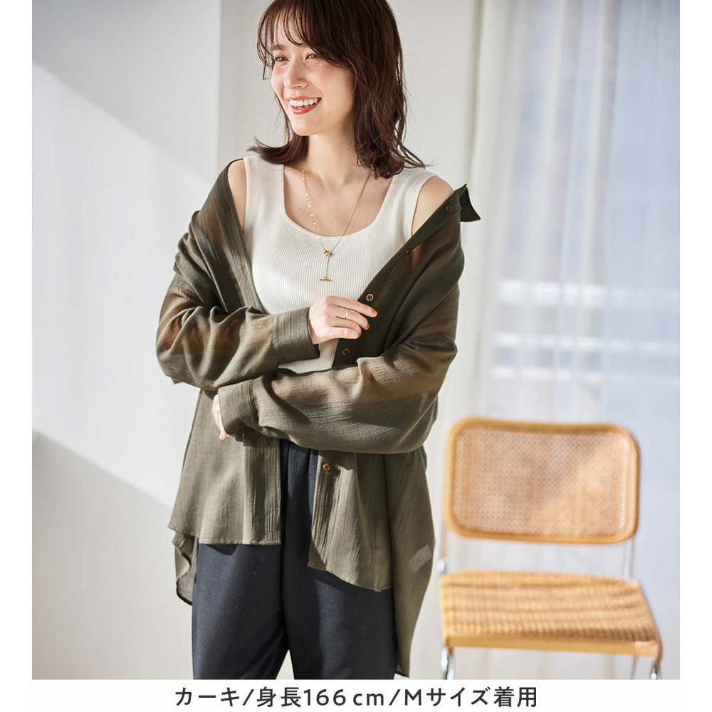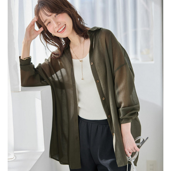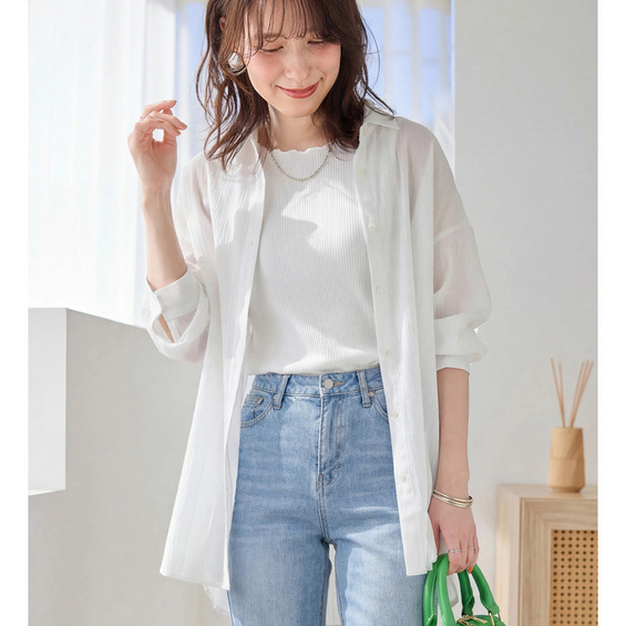 夏の万能羽織り:日よけや冷房対策として、Tシャツやタンクトップの上にさっと羽織るだけ!ぐっとこなれた印象を演出。