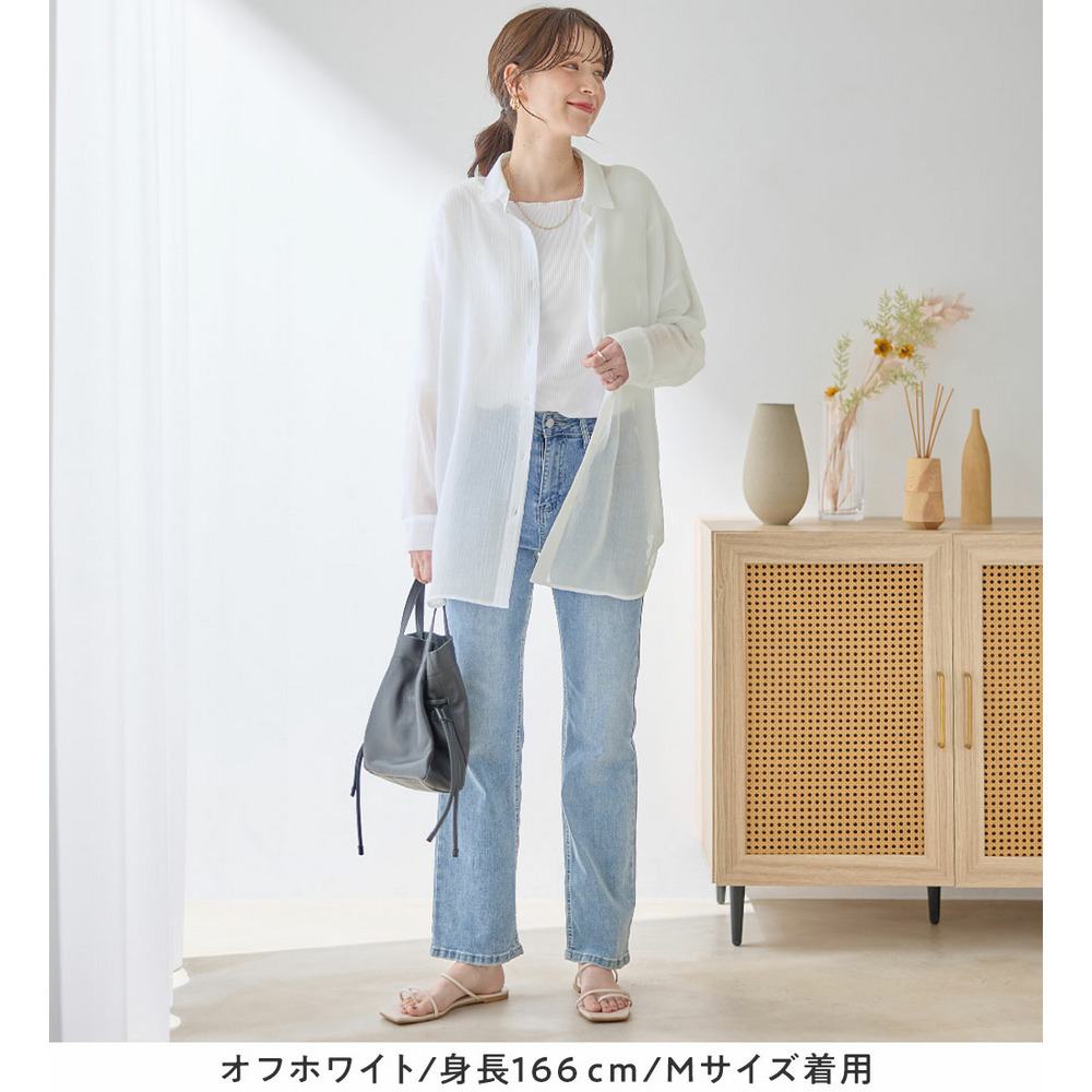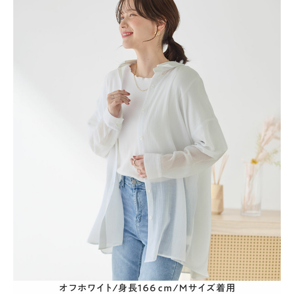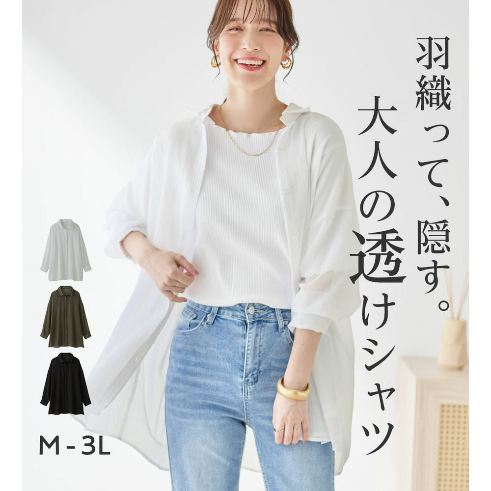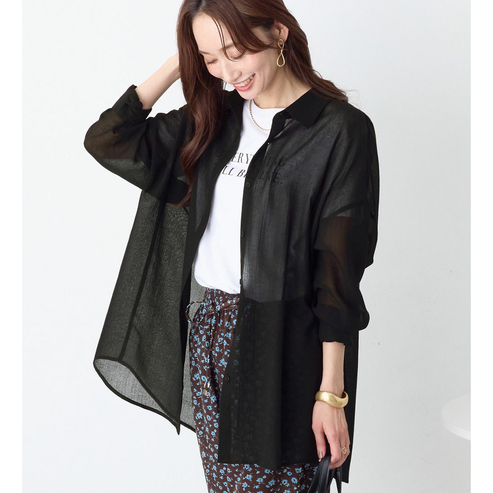 夏の万能羽織り:日よけや冷房対策として、Tシャツやタンクトップの上にさっと羽織るだけ!ぐっとこなれた印象を演出。
