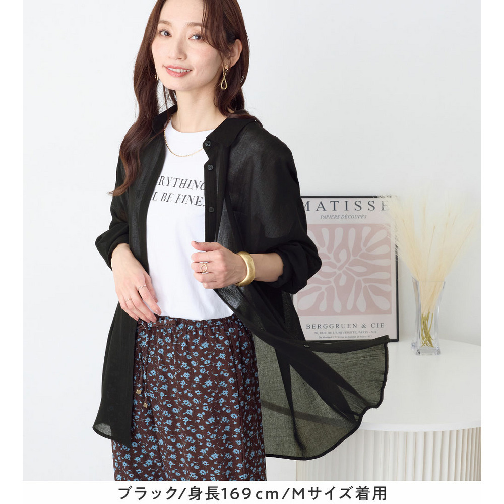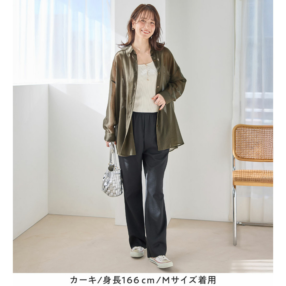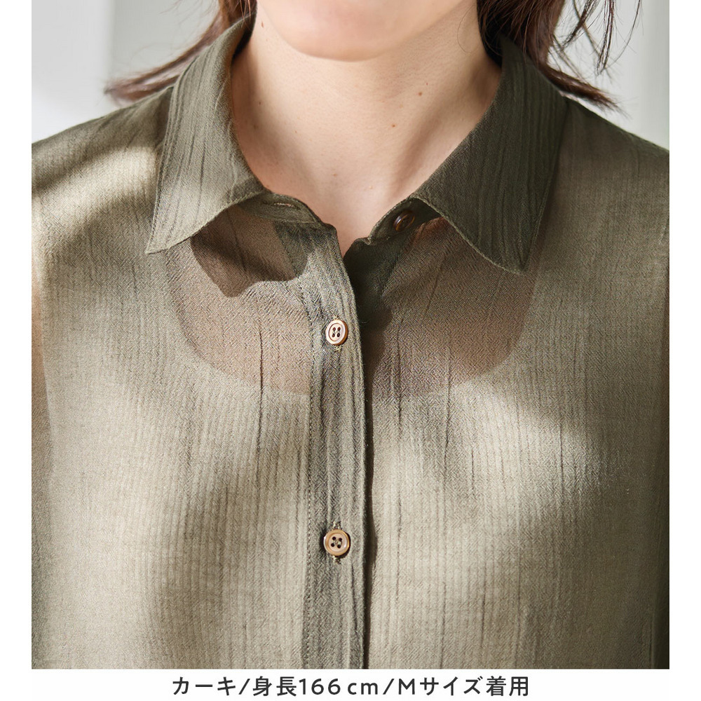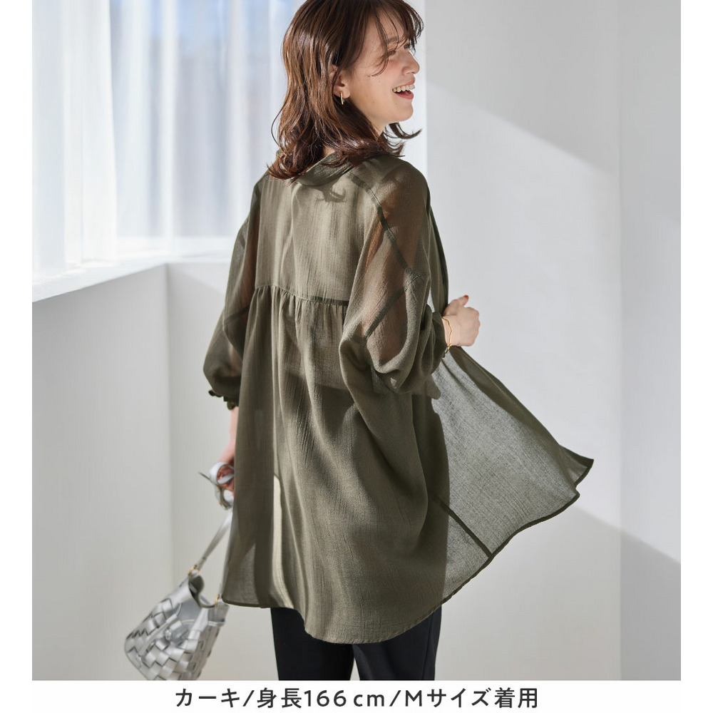 大人な透け感:光沢のないシアーな素材(ジョーゼット風のシボ感あり)が、上品な透け感を演出し、大人っぽく着こなせます。