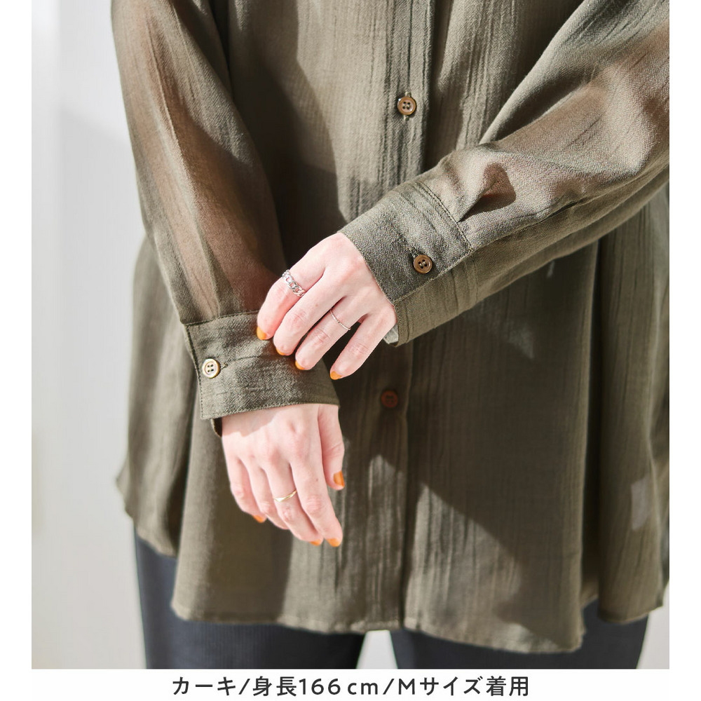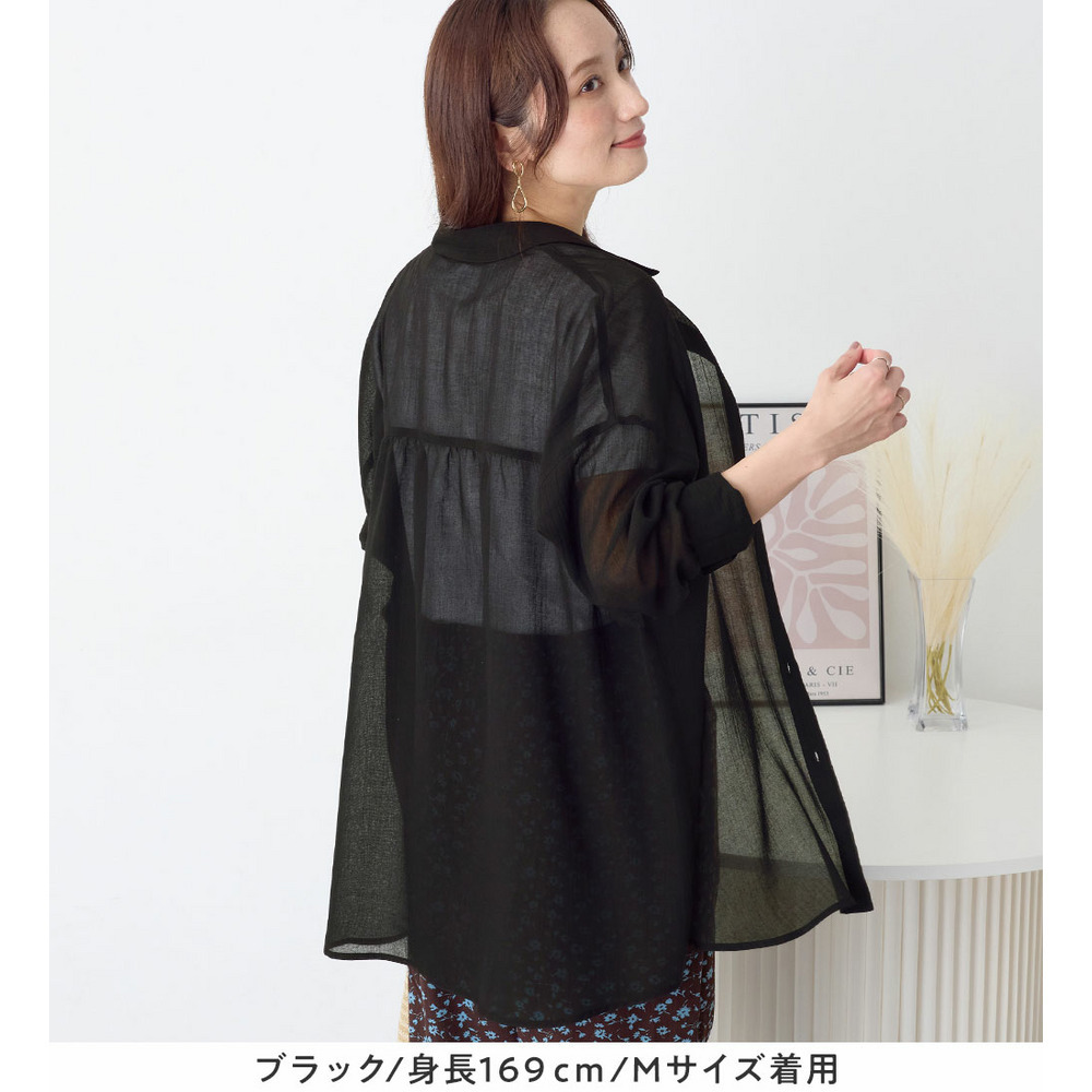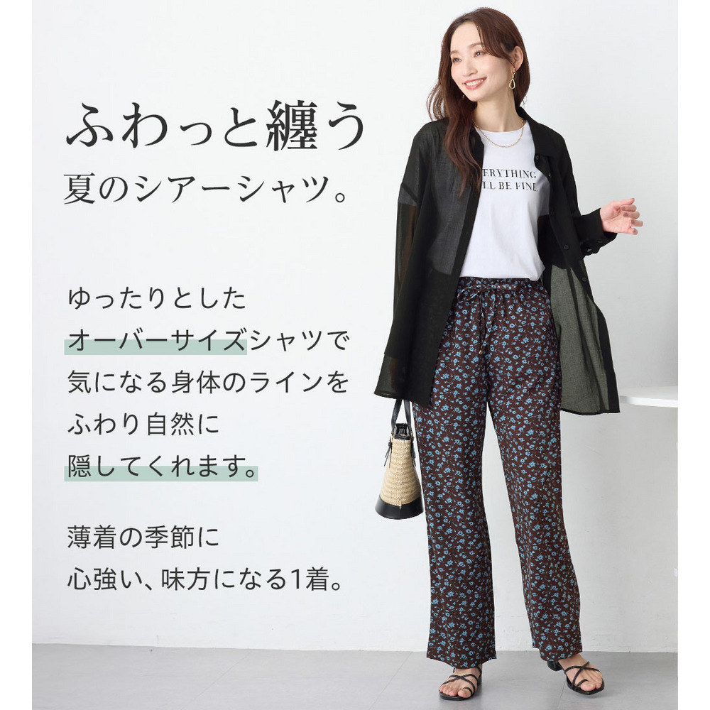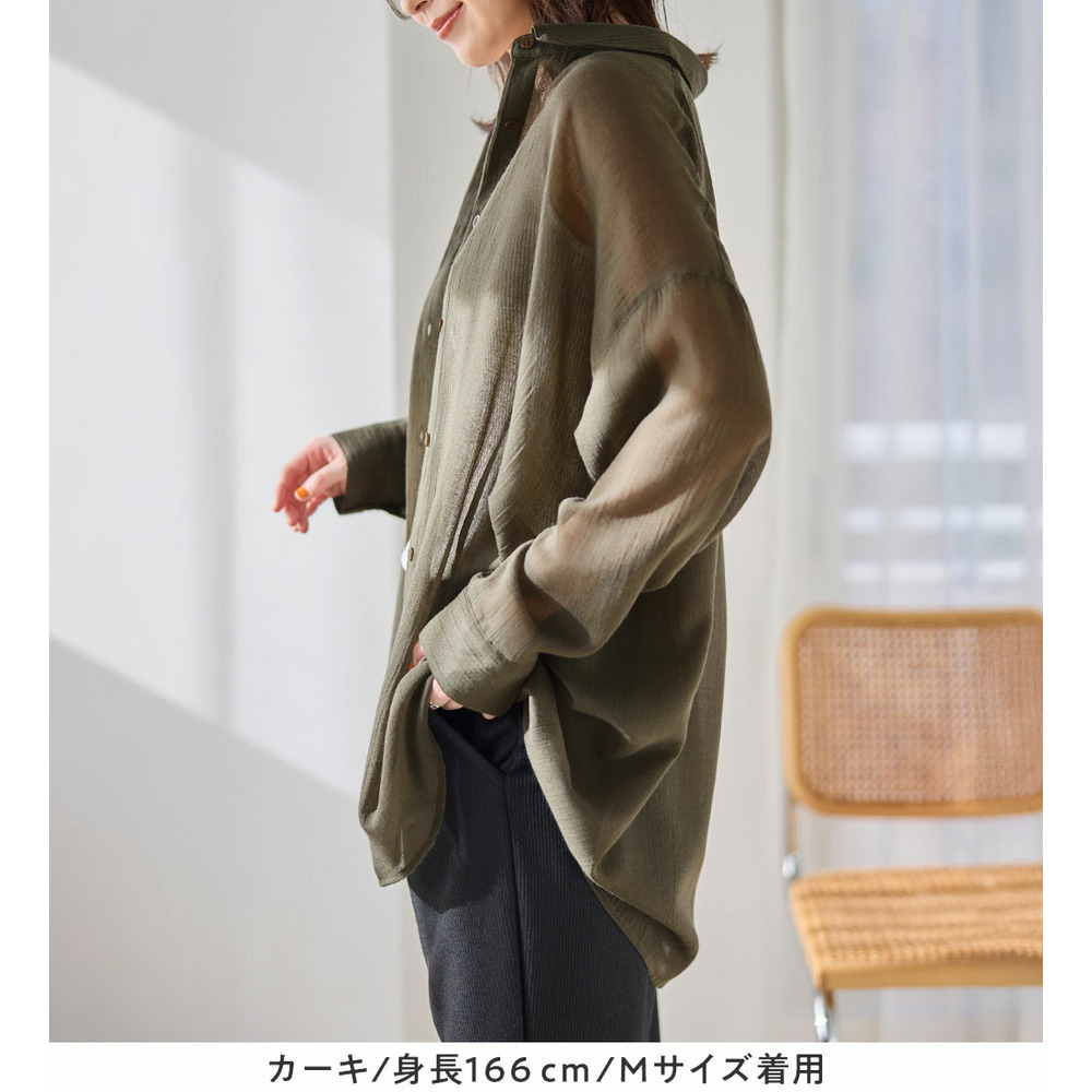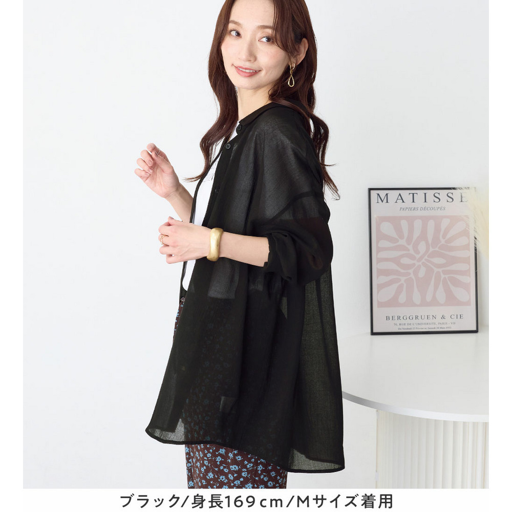 大人な透け感:光沢のないシアーな素材(ジョーゼット風のシボ感あり)が、上品な透け感を演出し、大人っぽく着こなせます。
