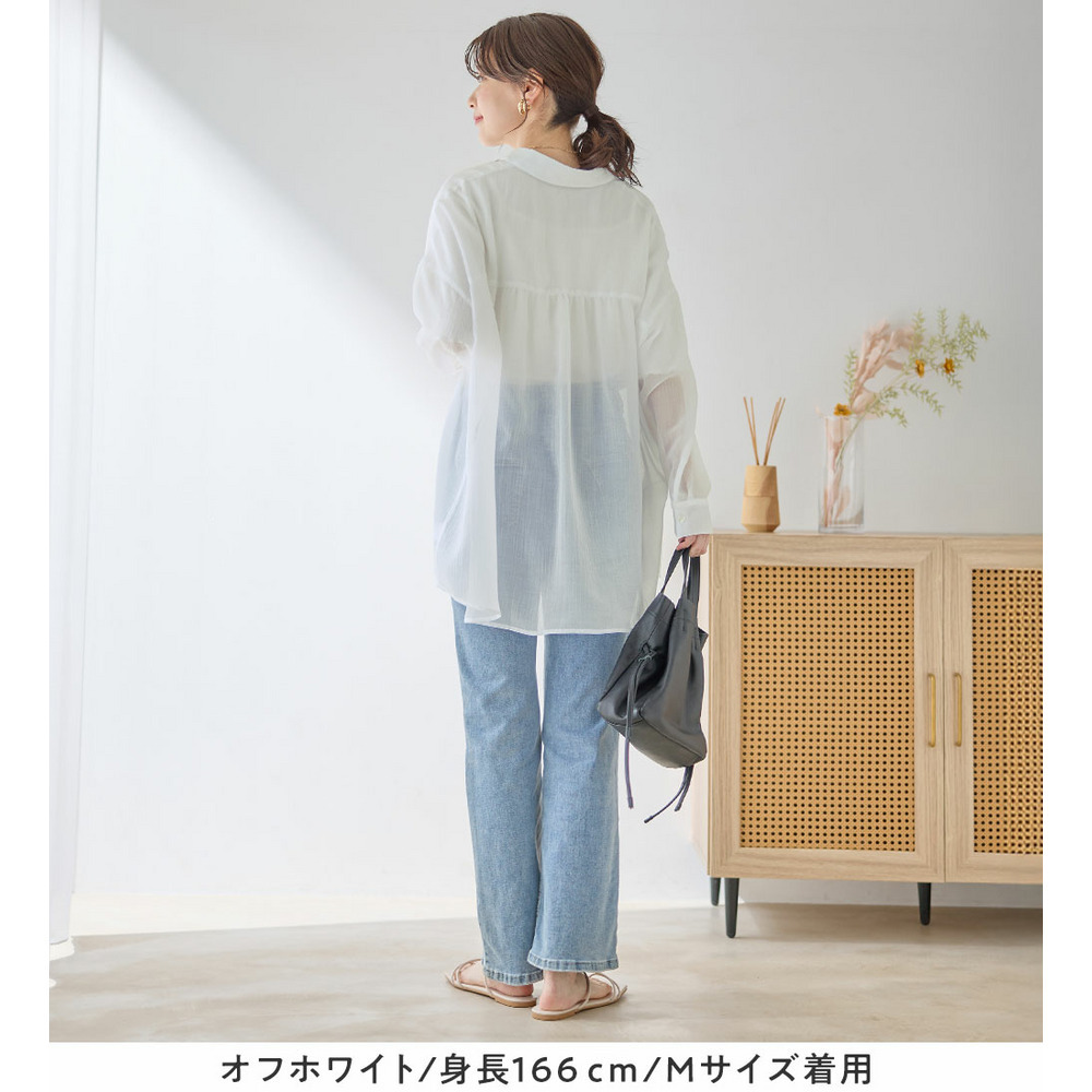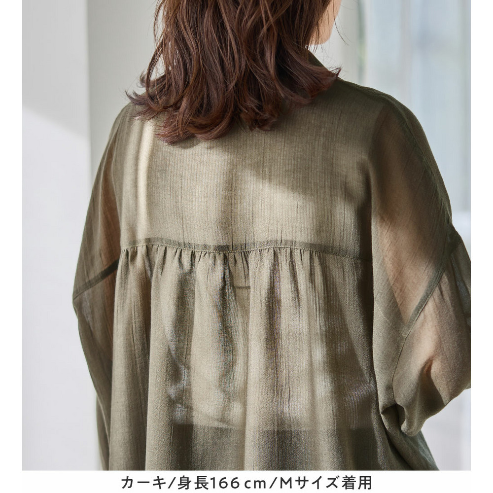 着回し力:前を閉めてトップスとして、ボタンを開けて夏の羽織りとして、幅広い着こなしが楽しめます。