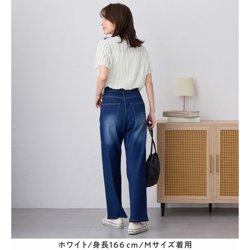 涼しげな素材感:凹凸のある素材なので肌離れが良く、汗ばむ季節でもさらっと快適に着用できます。