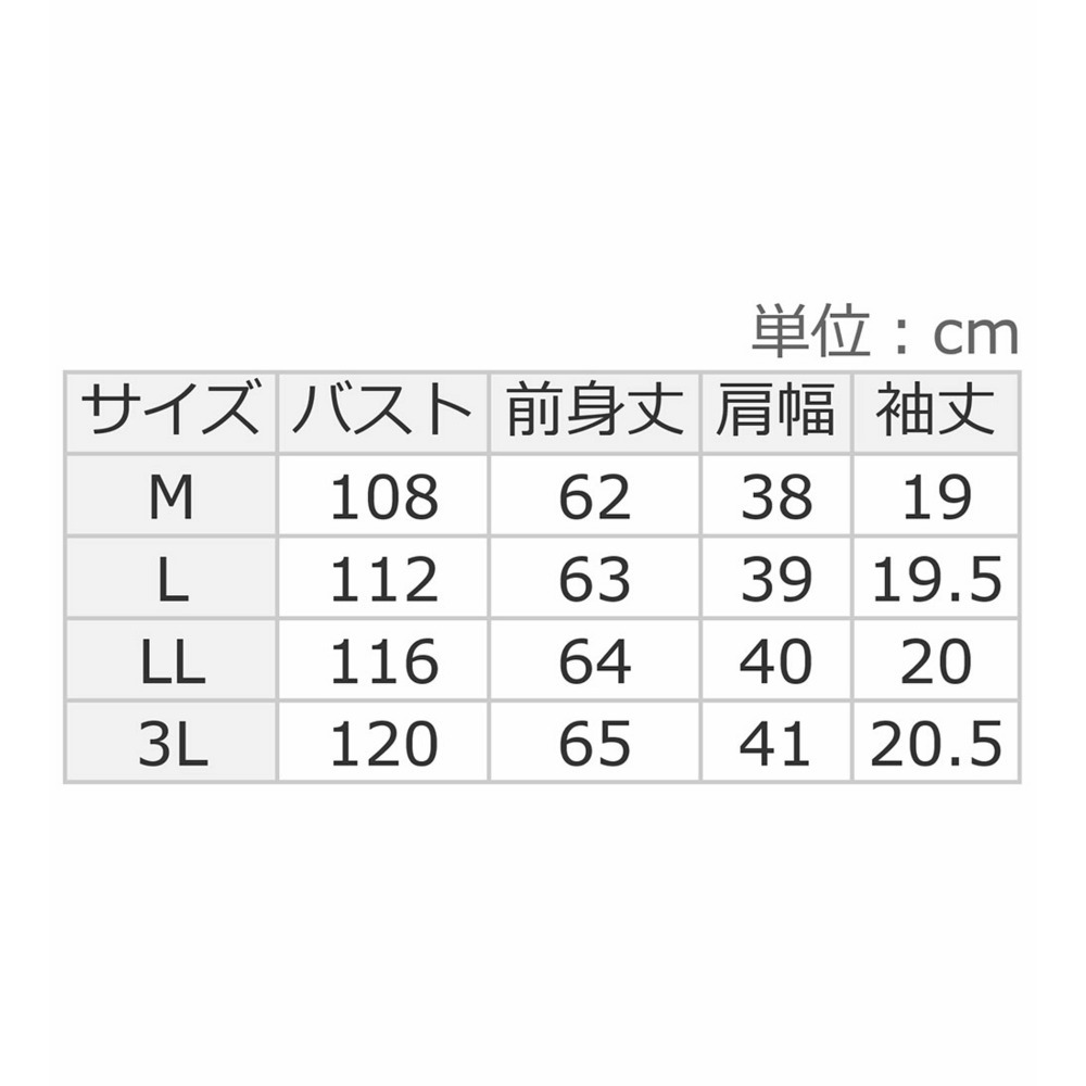 サイズ表記 L LL 3L バスト 112 116 120 前身丈 63 64 65 肩幅 39 40 41 袖丈 19.5 20 20.5