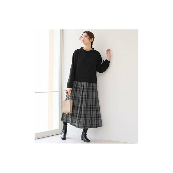 ・可愛いチェック柄スカートにシンプルなトレーナーを合わせたような「ドッキングワンピ」。