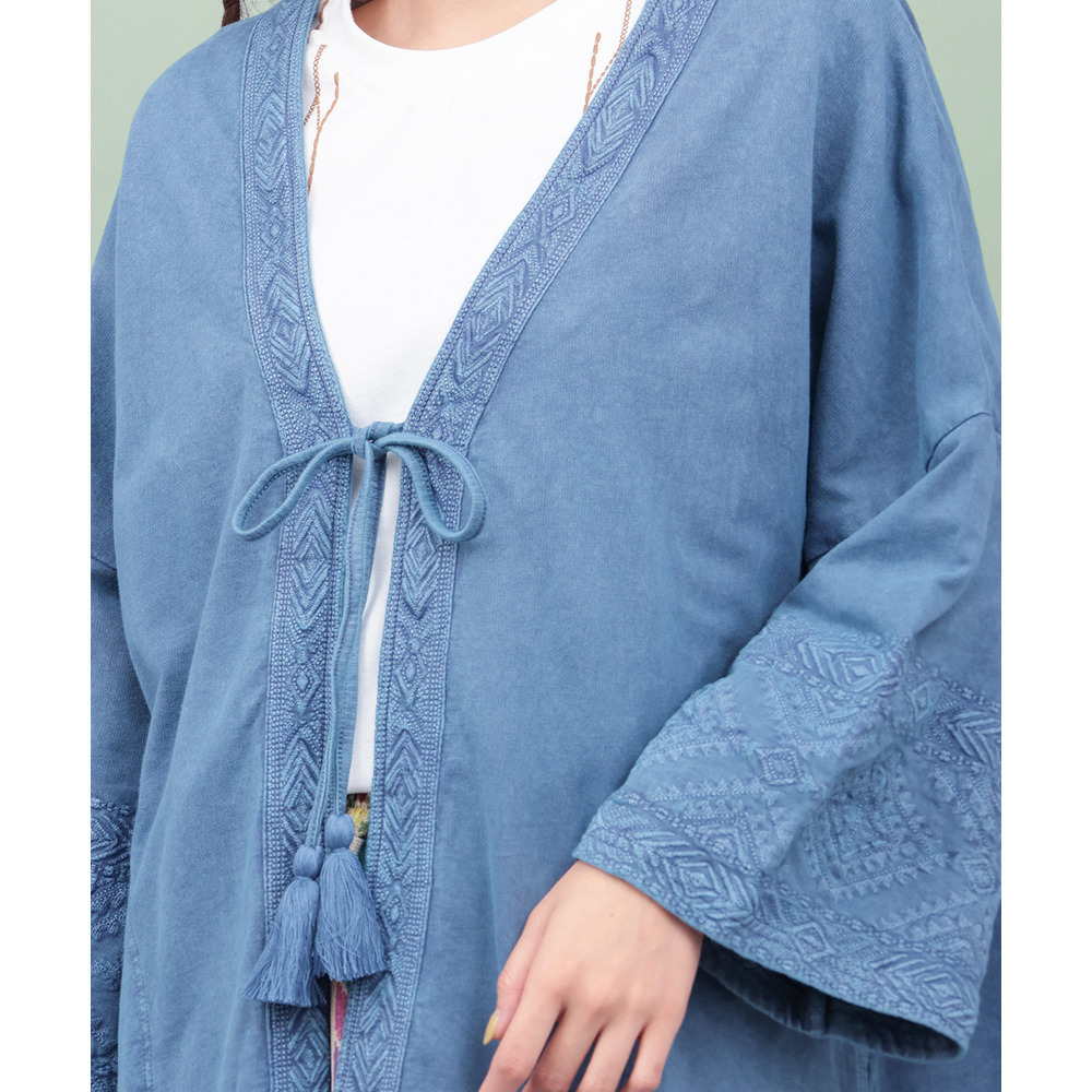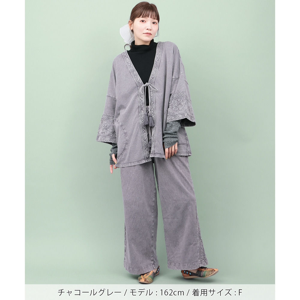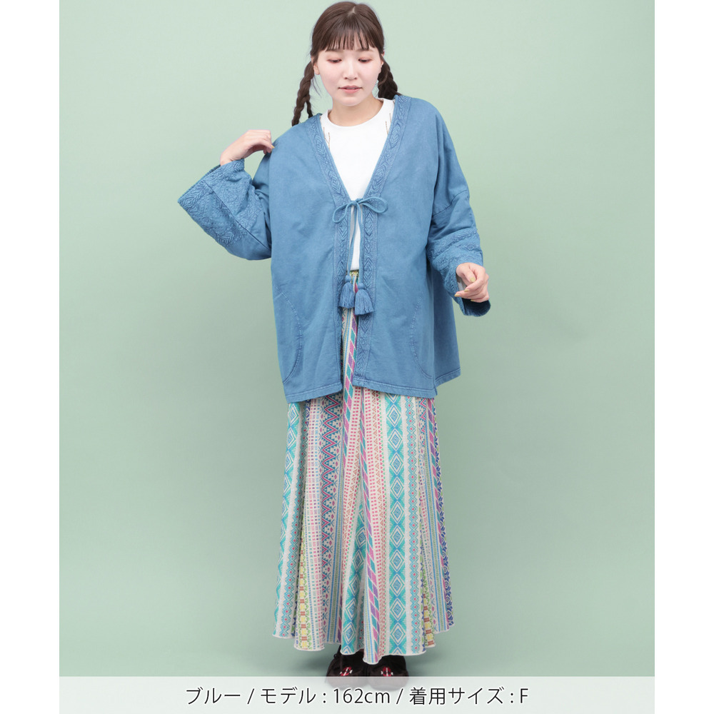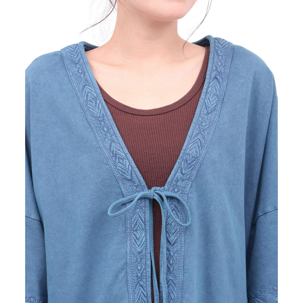 ガウンのように着られてタッセル付きの紐で開け閉めができ、リラックス感のある着こなしが楽しめます。