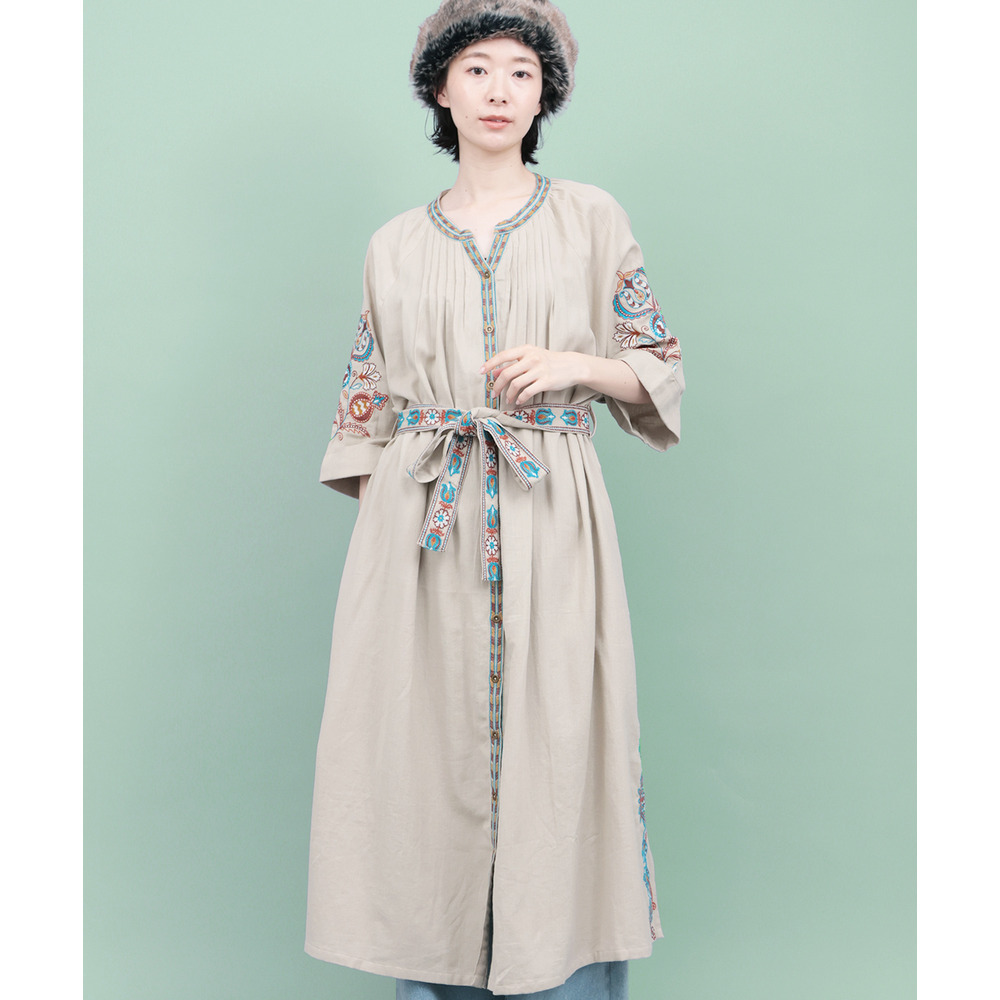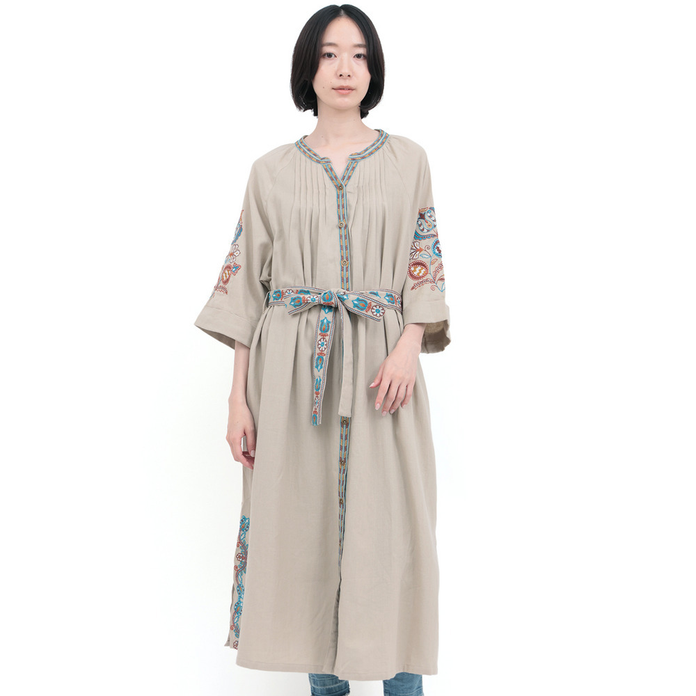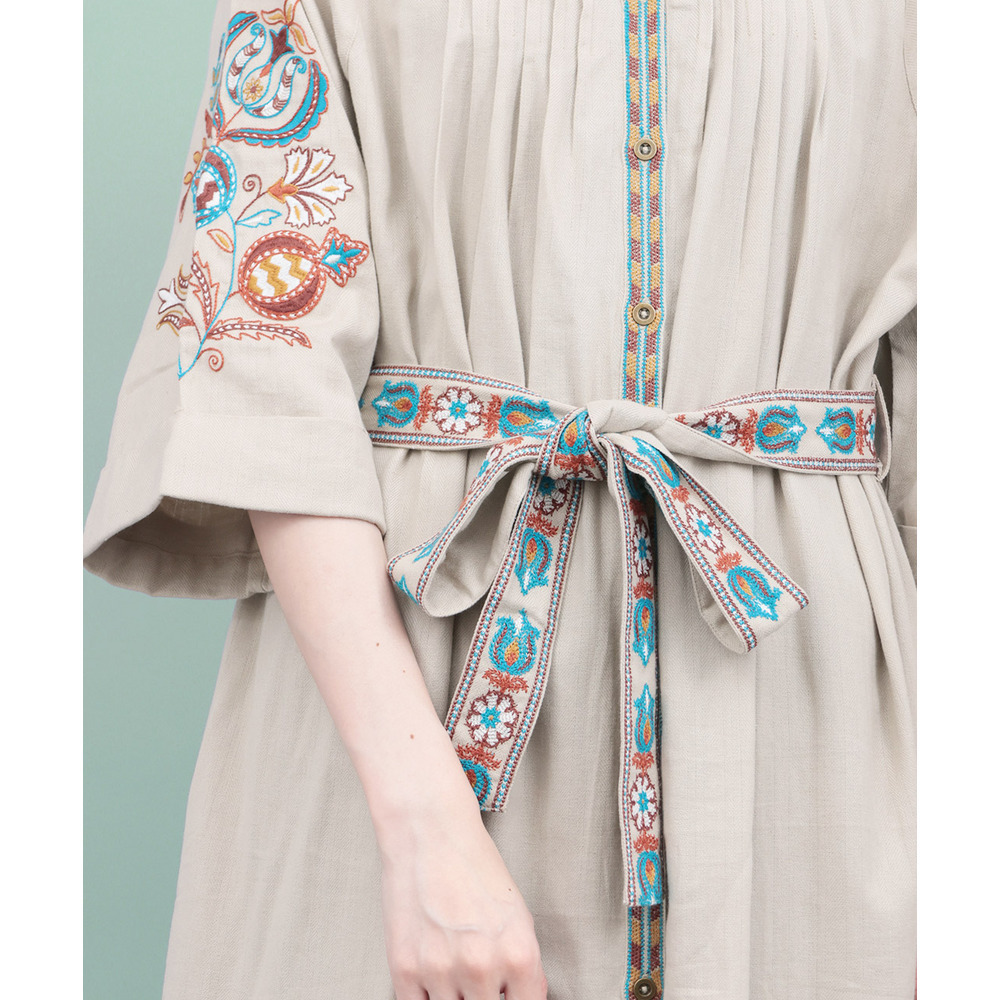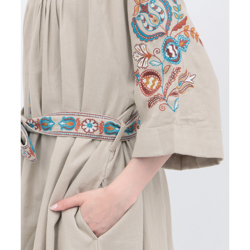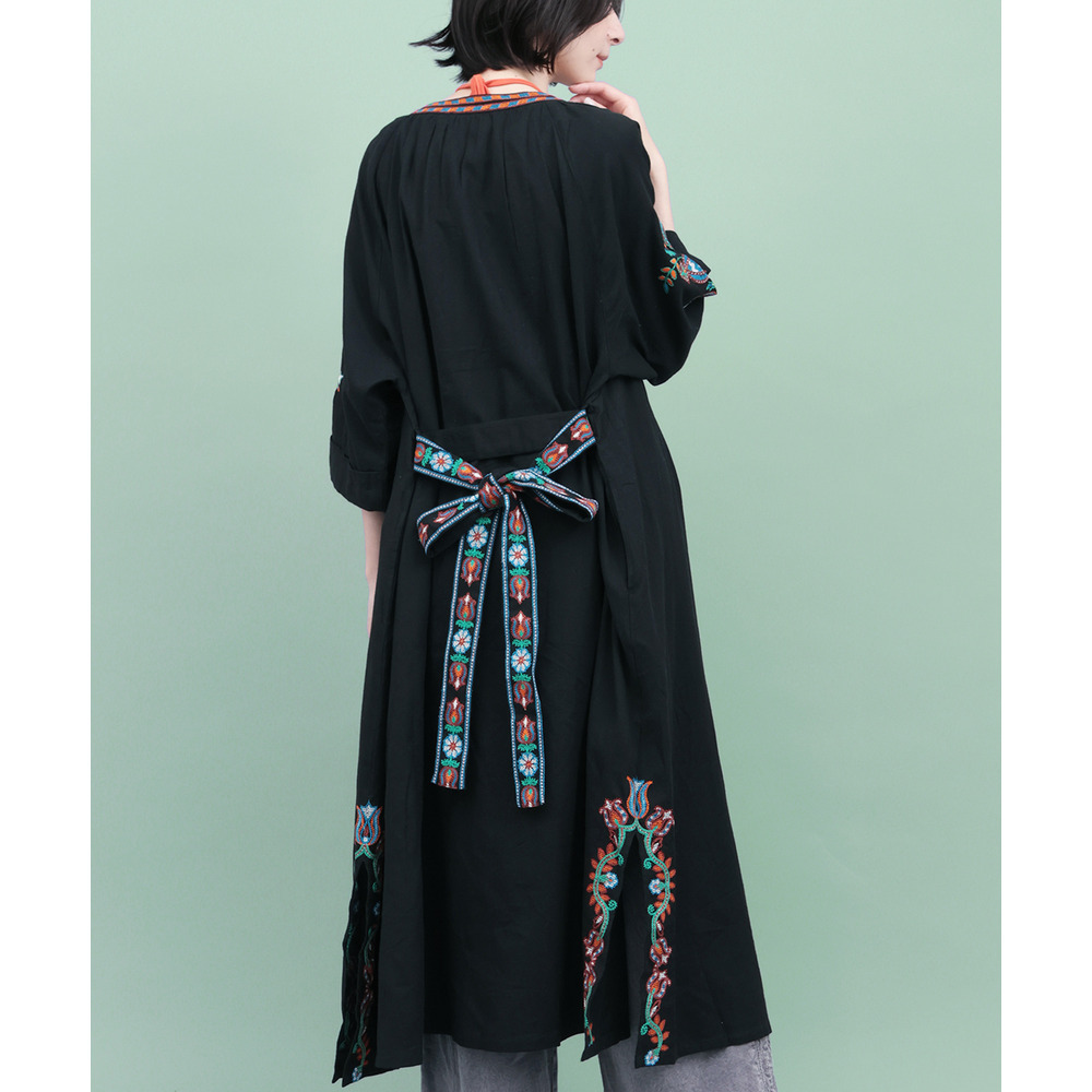 サイドスリットやベルトにまで刺繍を施した、細部までこだわりの詰まった贅沢な一着です。