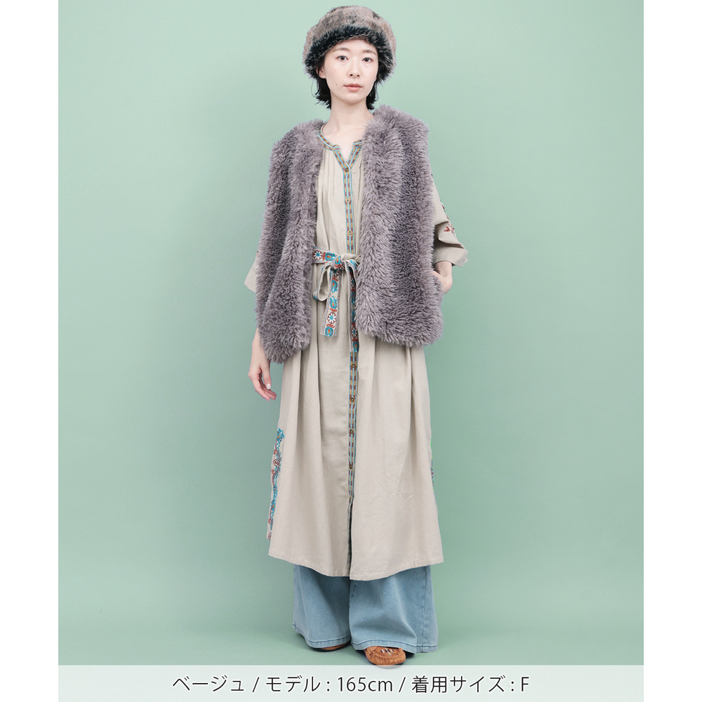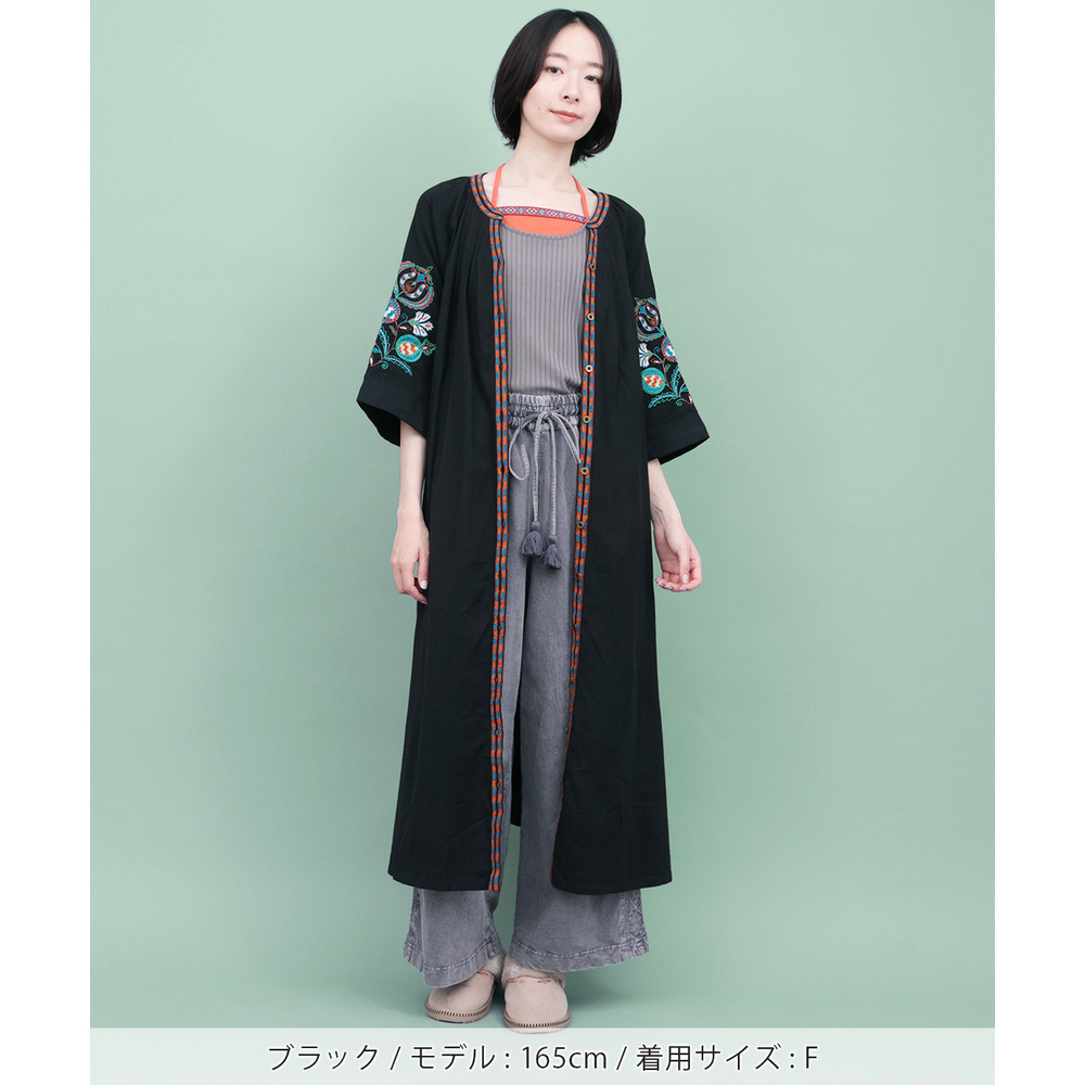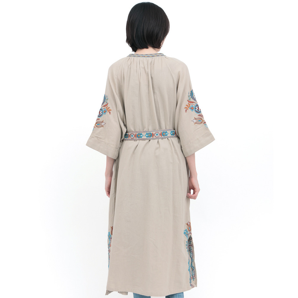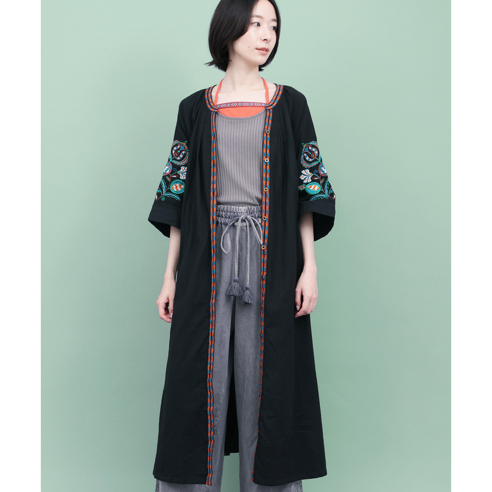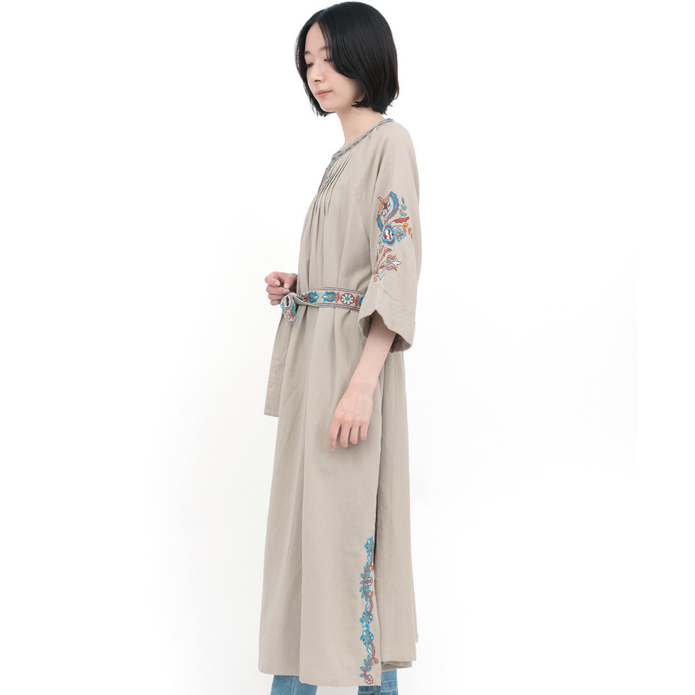 サイドスリットやベルトにまで刺繍を施した、細部までこだわりの詰まった贅沢な一着です。