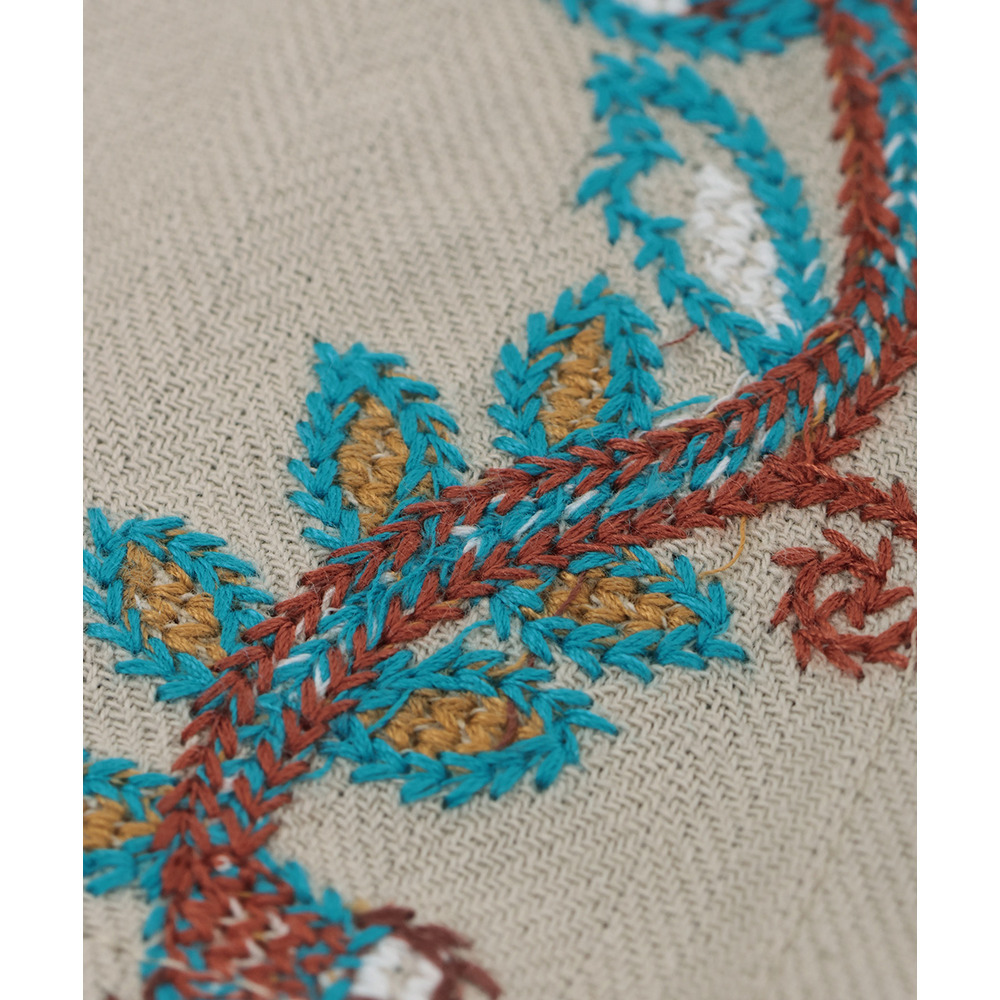 チューリップやザクロをモチーフにした刺繍をたっぷりとあしらい、存在感のある一枚に仕上げました。