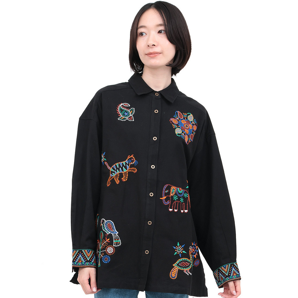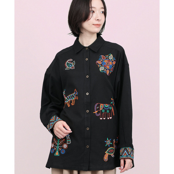 一つ一つの刺繍が可愛らしく個性が光るカンタ刺繍モチーフシャツ