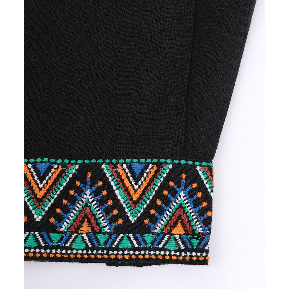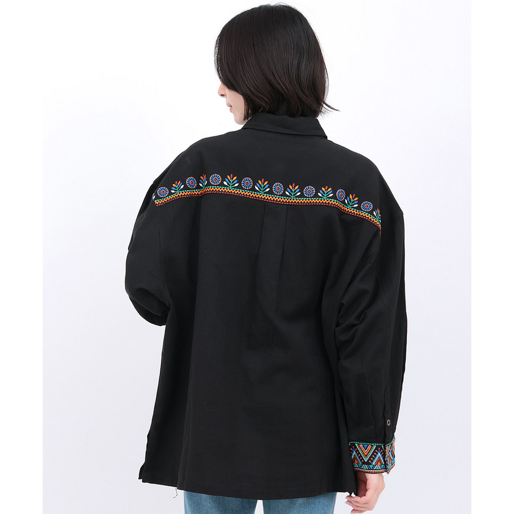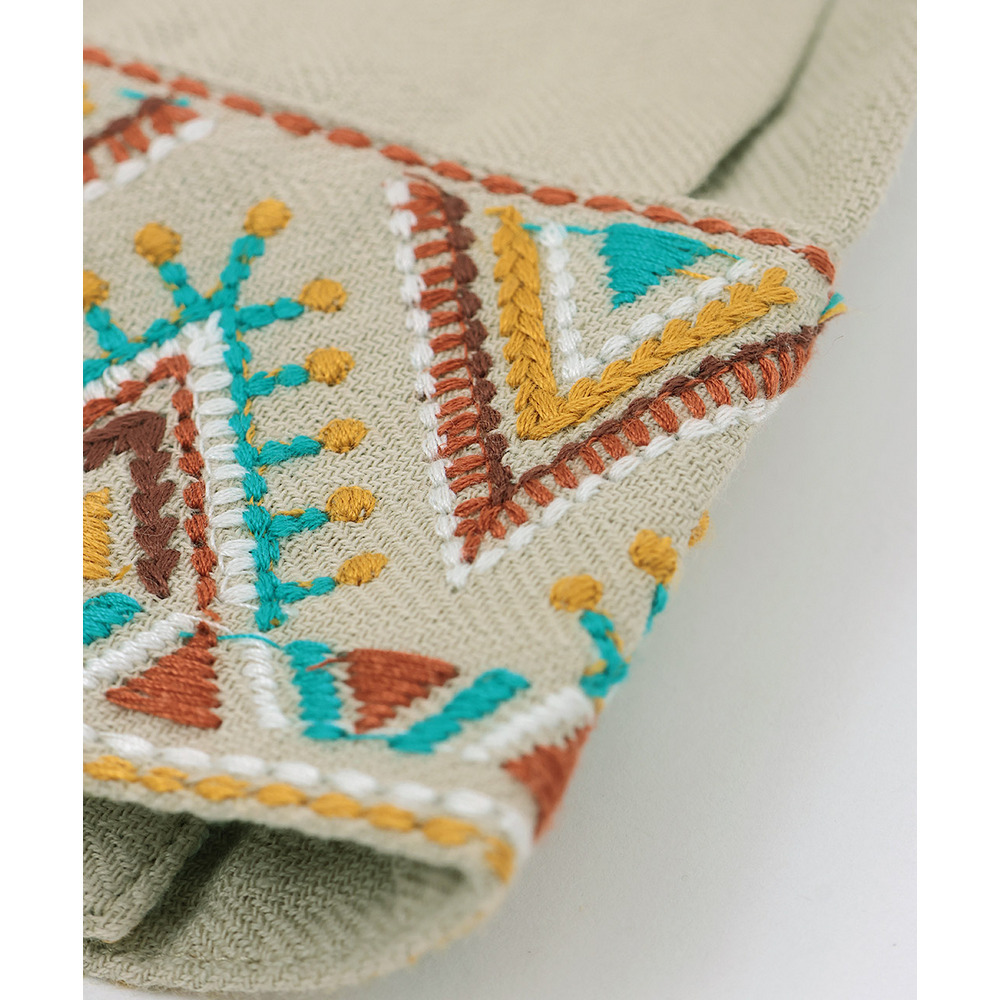 袖からバックにかけて施された刺繍が、さりげなく存在感を放ちます。