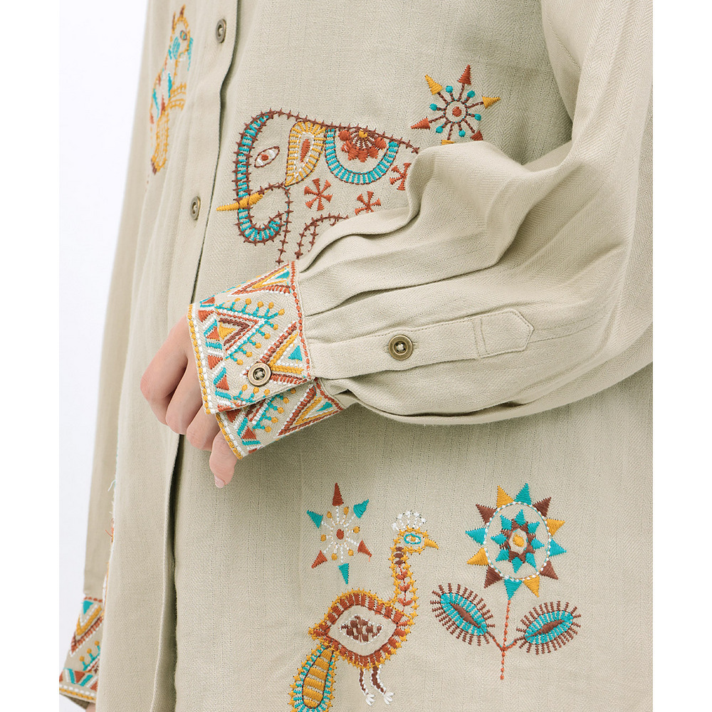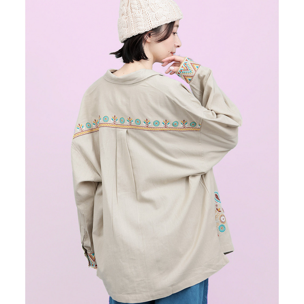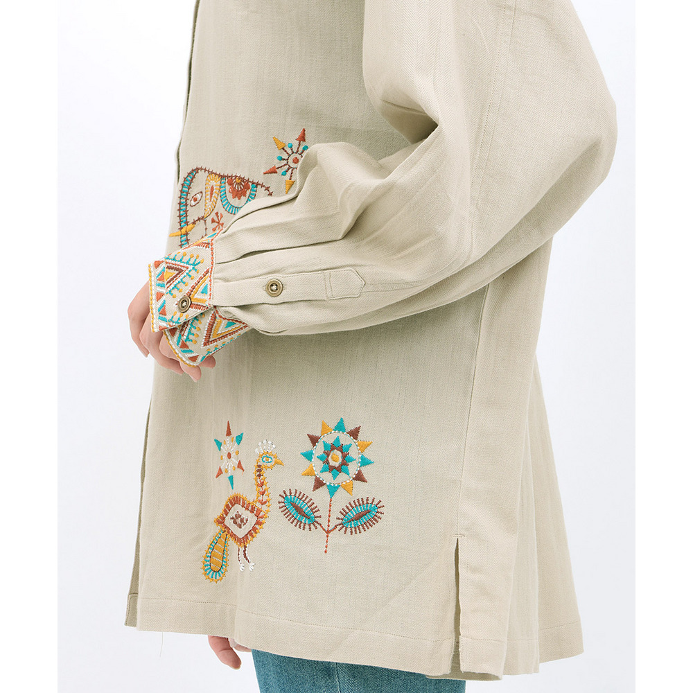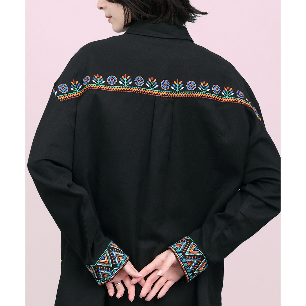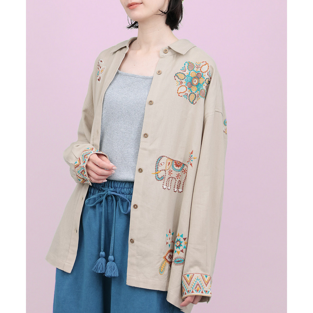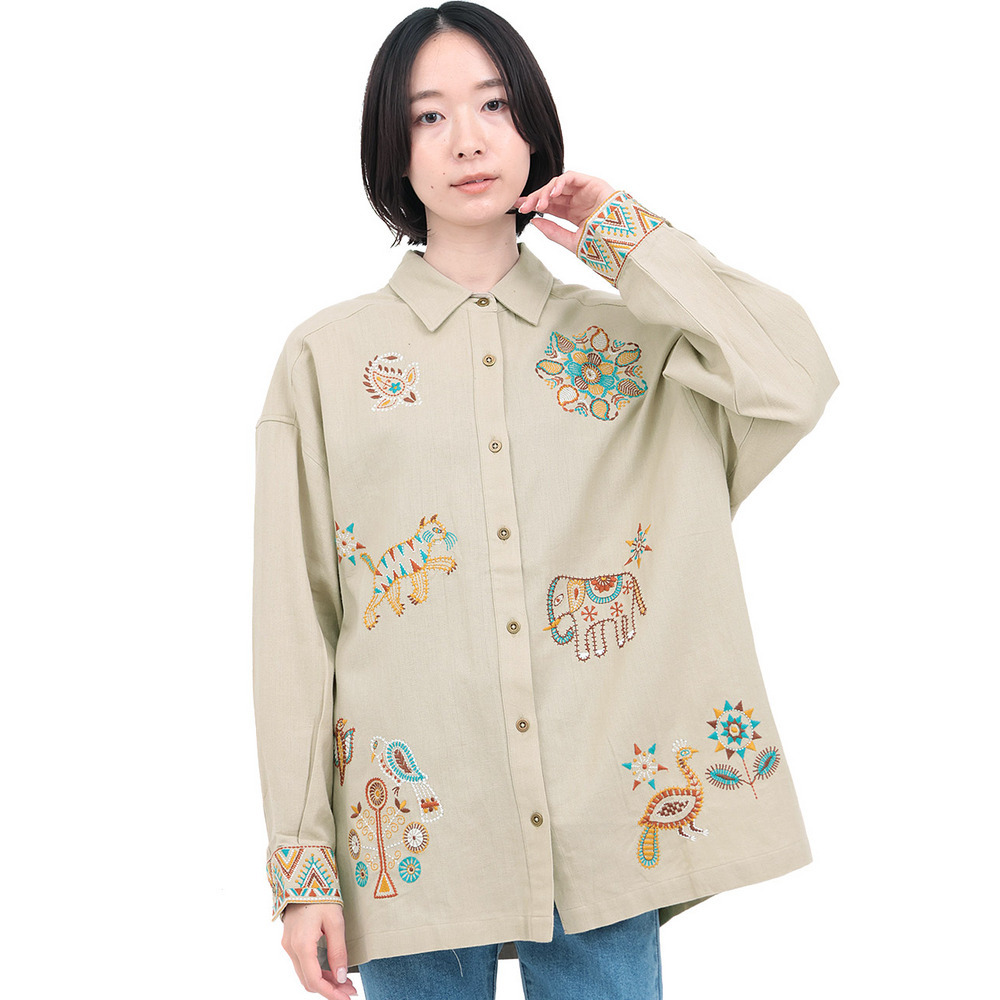 インド・ベンガル地方に伝わるカンタ刺繍をモチーフにしたベーシックシャツ。