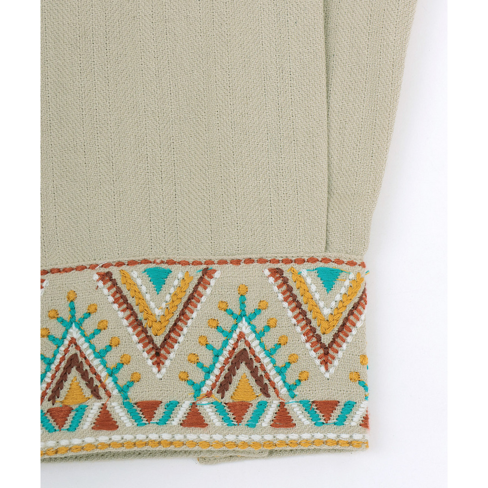 デニムパンツ×シンプルインナーと合わせて、羽織り感覚でサラッと刺繍を引き立てて。