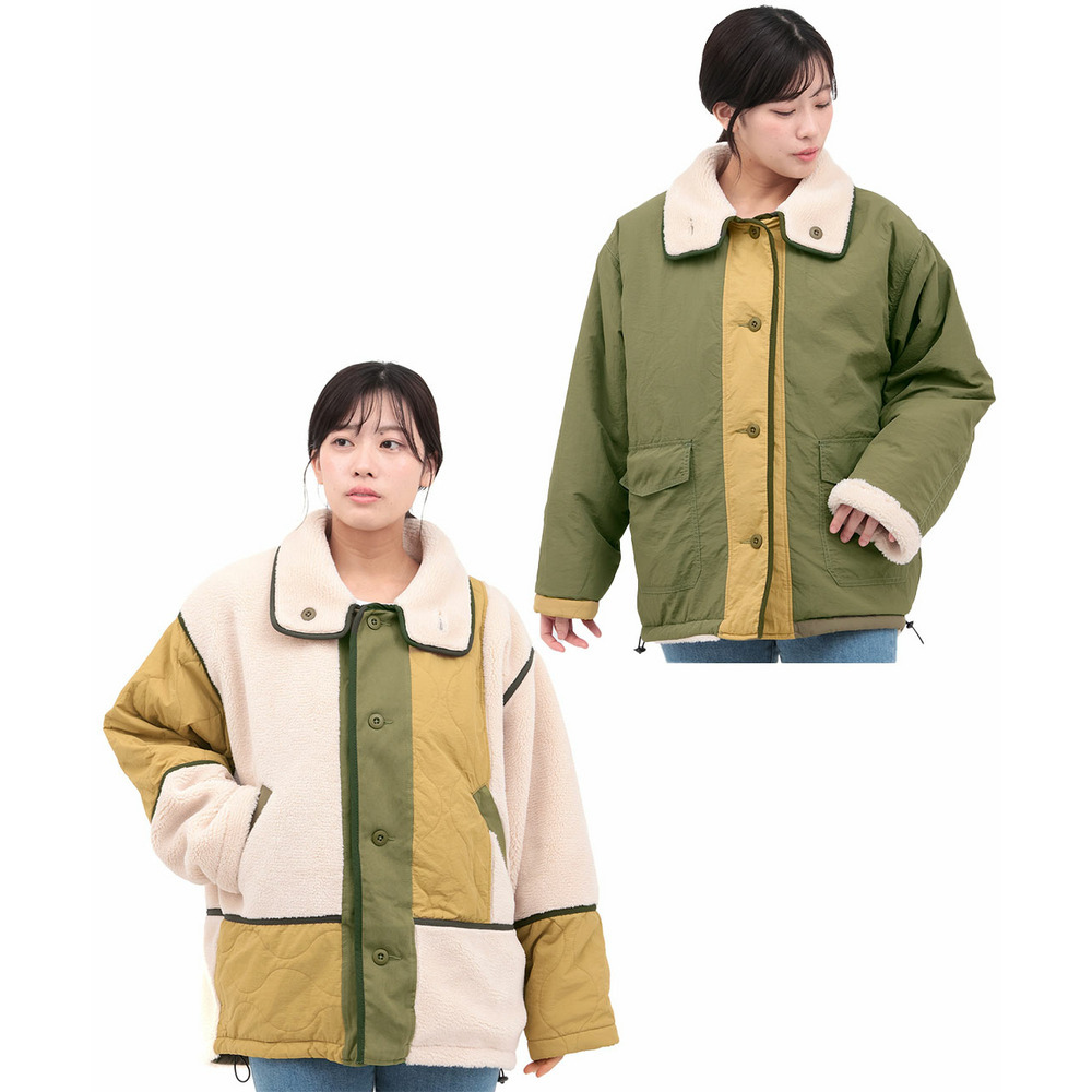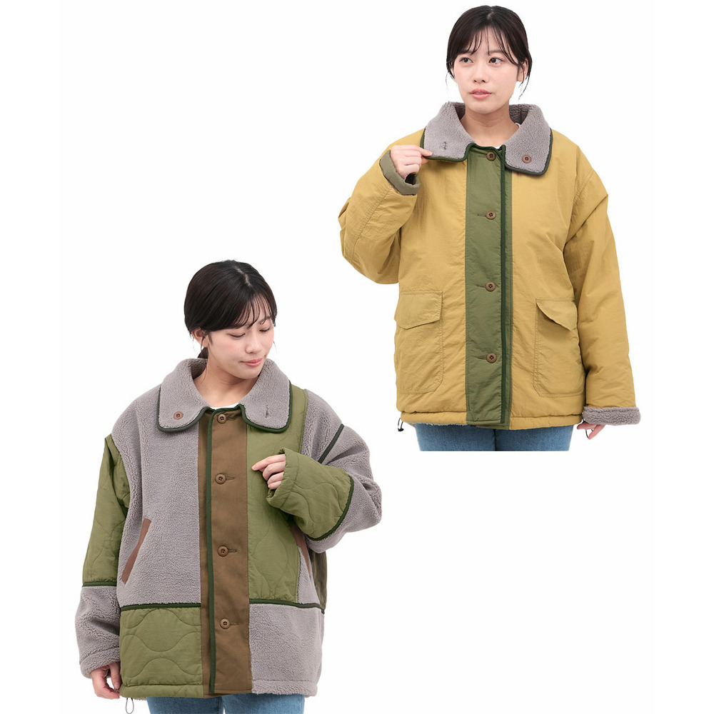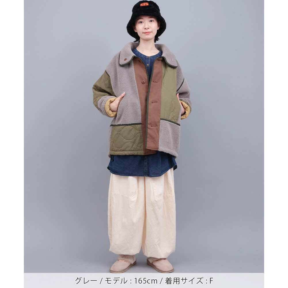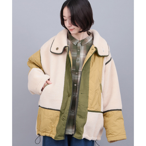 ボア×キルト×ピーチツイル×ナイロンを組み合わせた、ユニークで遊び心あるデザインが魅力です。