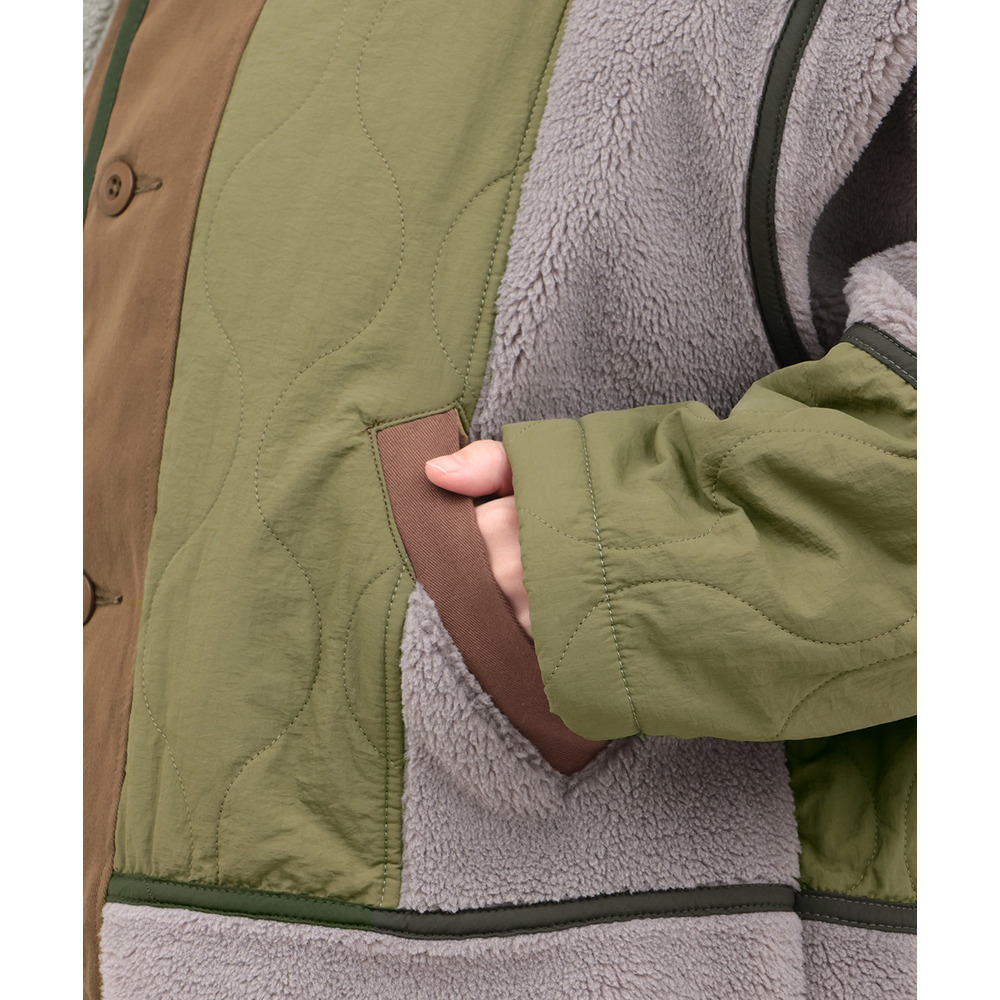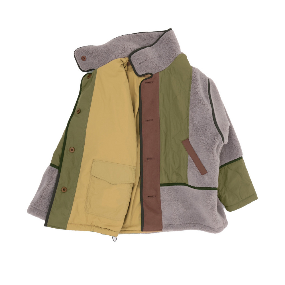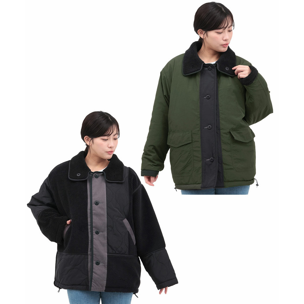 ボア×キルト×ピーチツイル×ナイロンを組み合わせた、ユニークで遊び心あるデザインが魅力です。