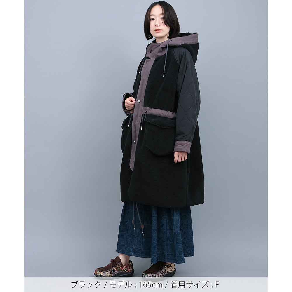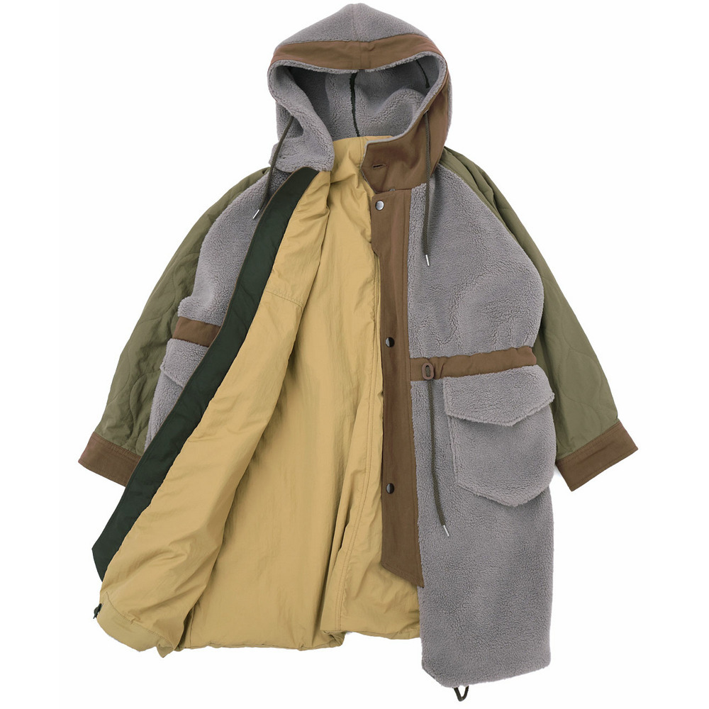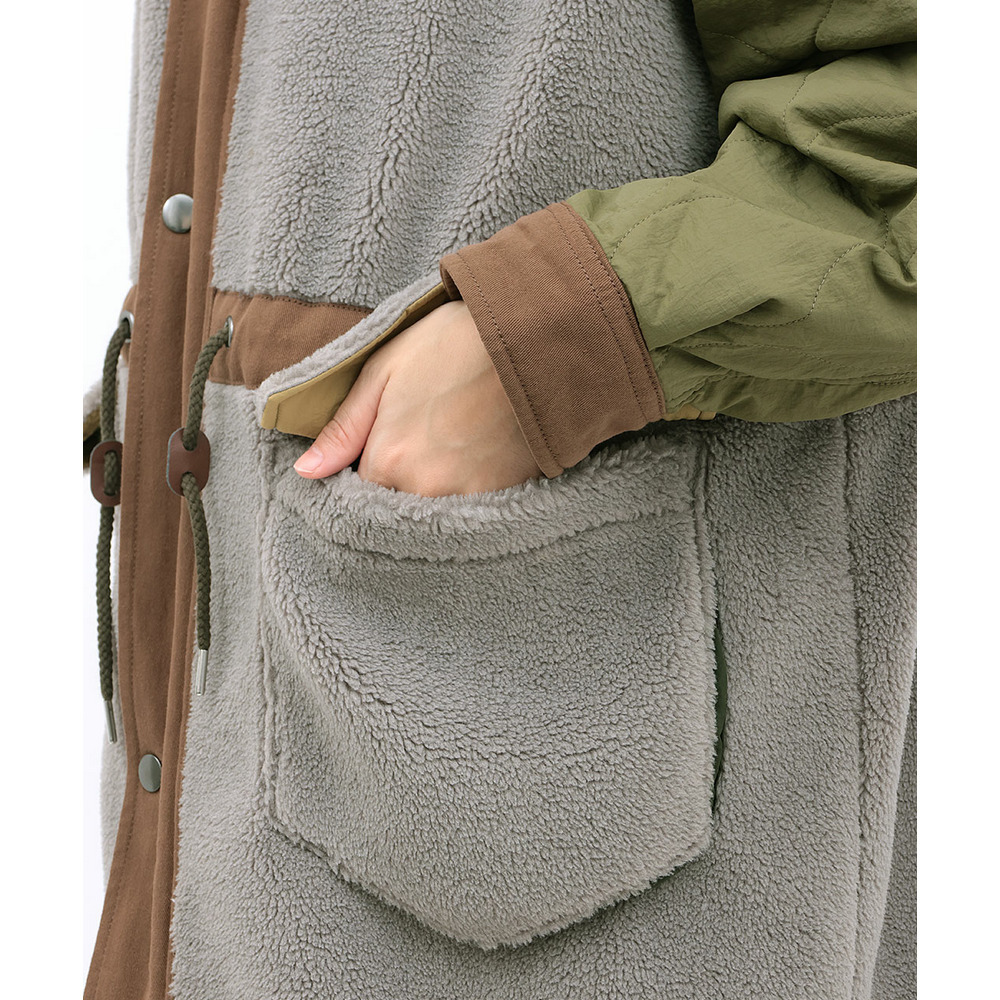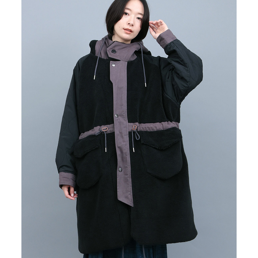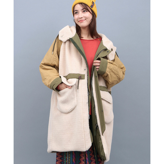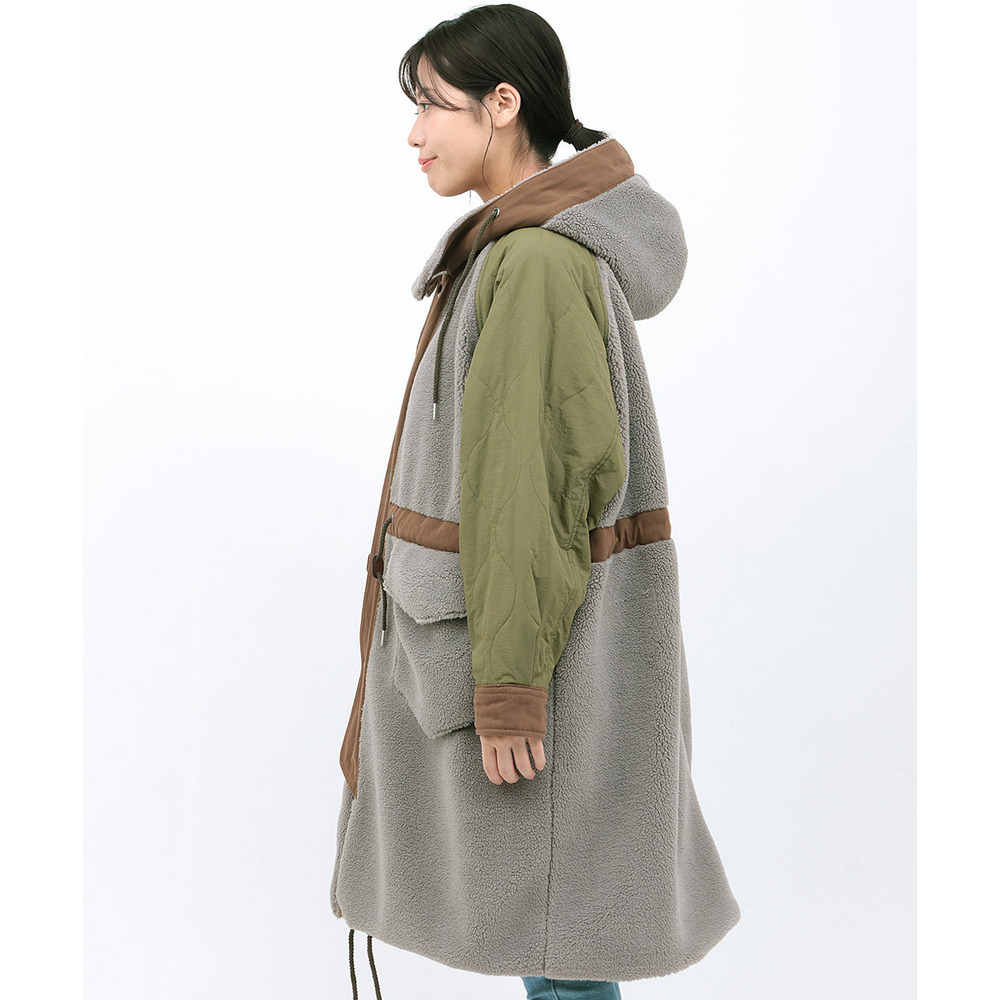 可愛らしいボア×キルト×ピーチツイル×ナイロン生地を組み合わせたクレイジー感が絶妙です◎