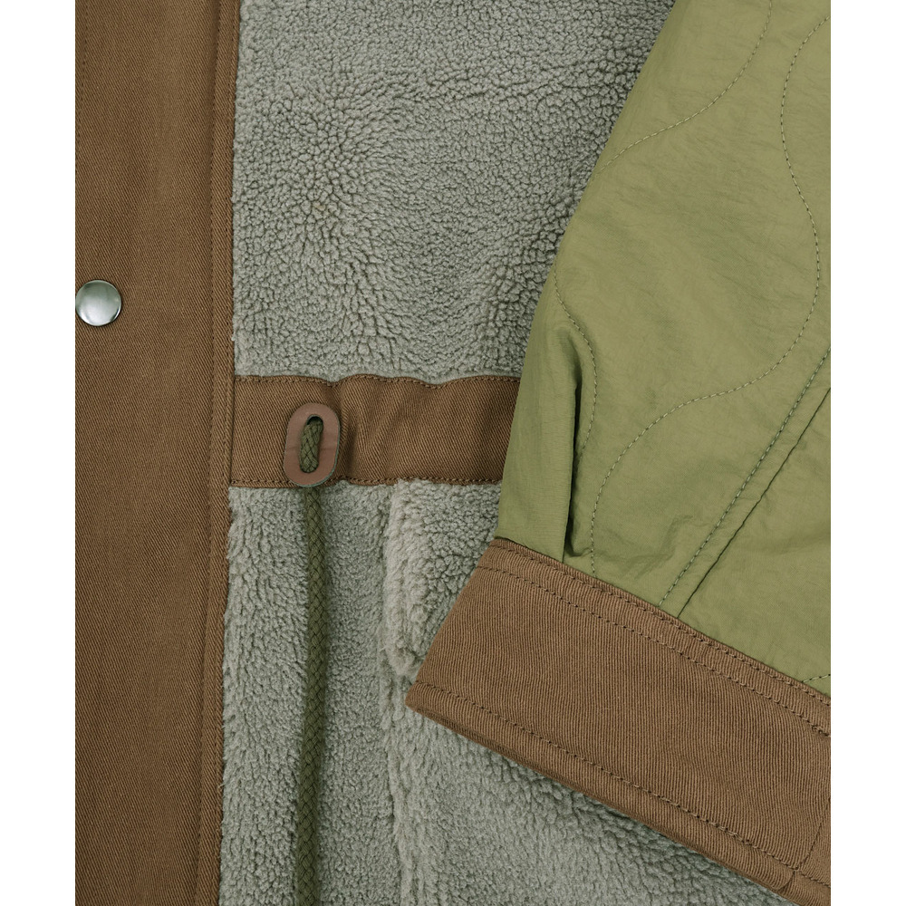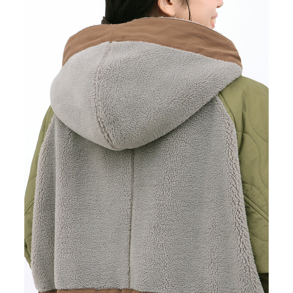 ふわふわとしたボア×キルト×ピーチツイル×ナイロン生地を組み合わせています。