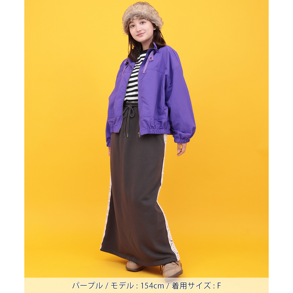 スウェット素材のスカートと合わせて、女性らしいスポーティースタイルもおすすめ。