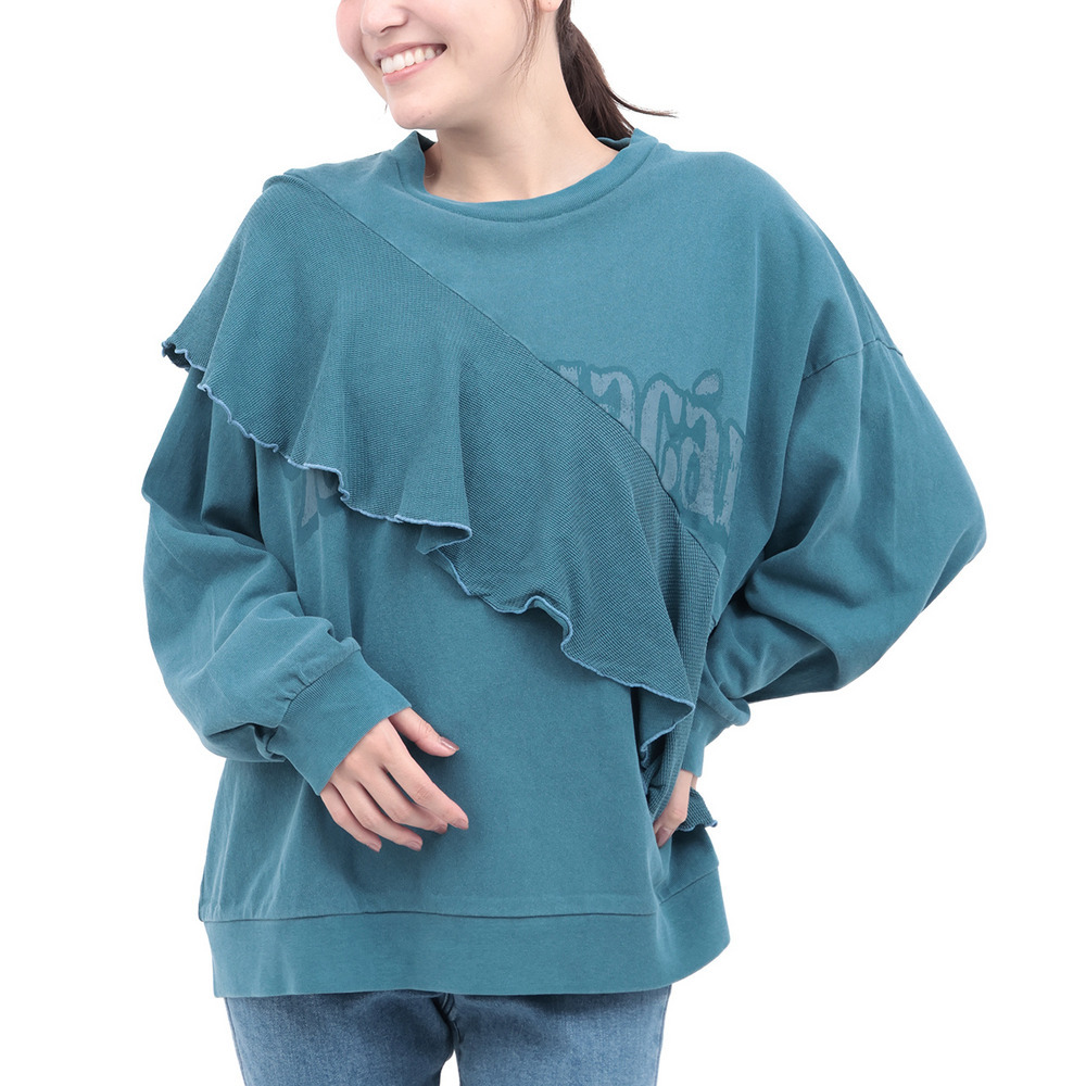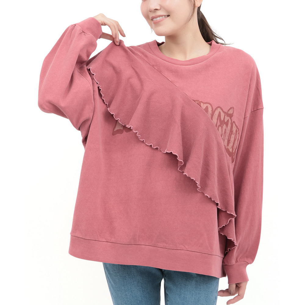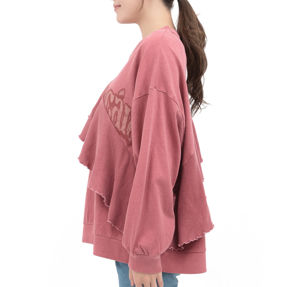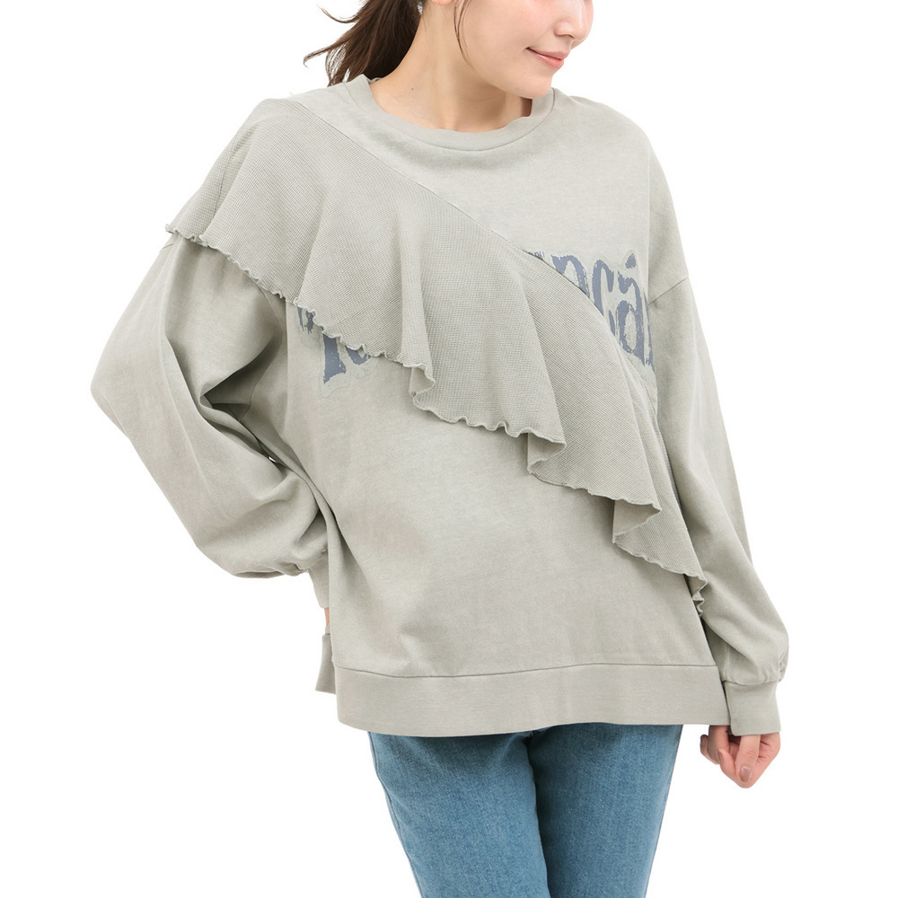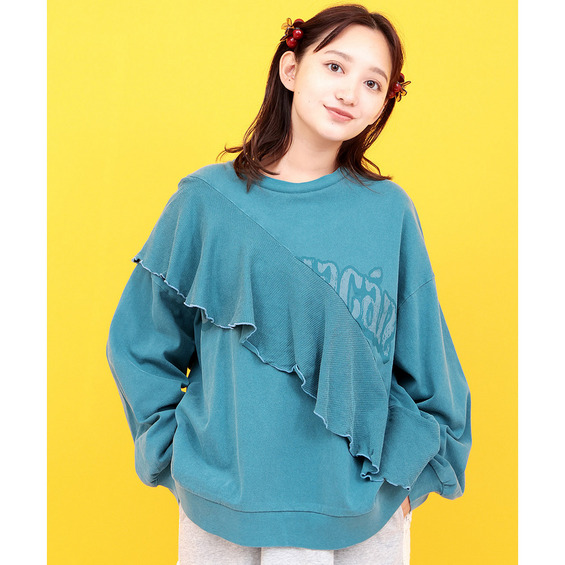 ロゴプリントにフリルを掛け合わせた、遊び心たっぷりのトップス。