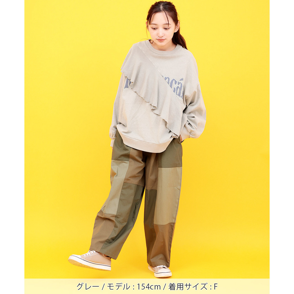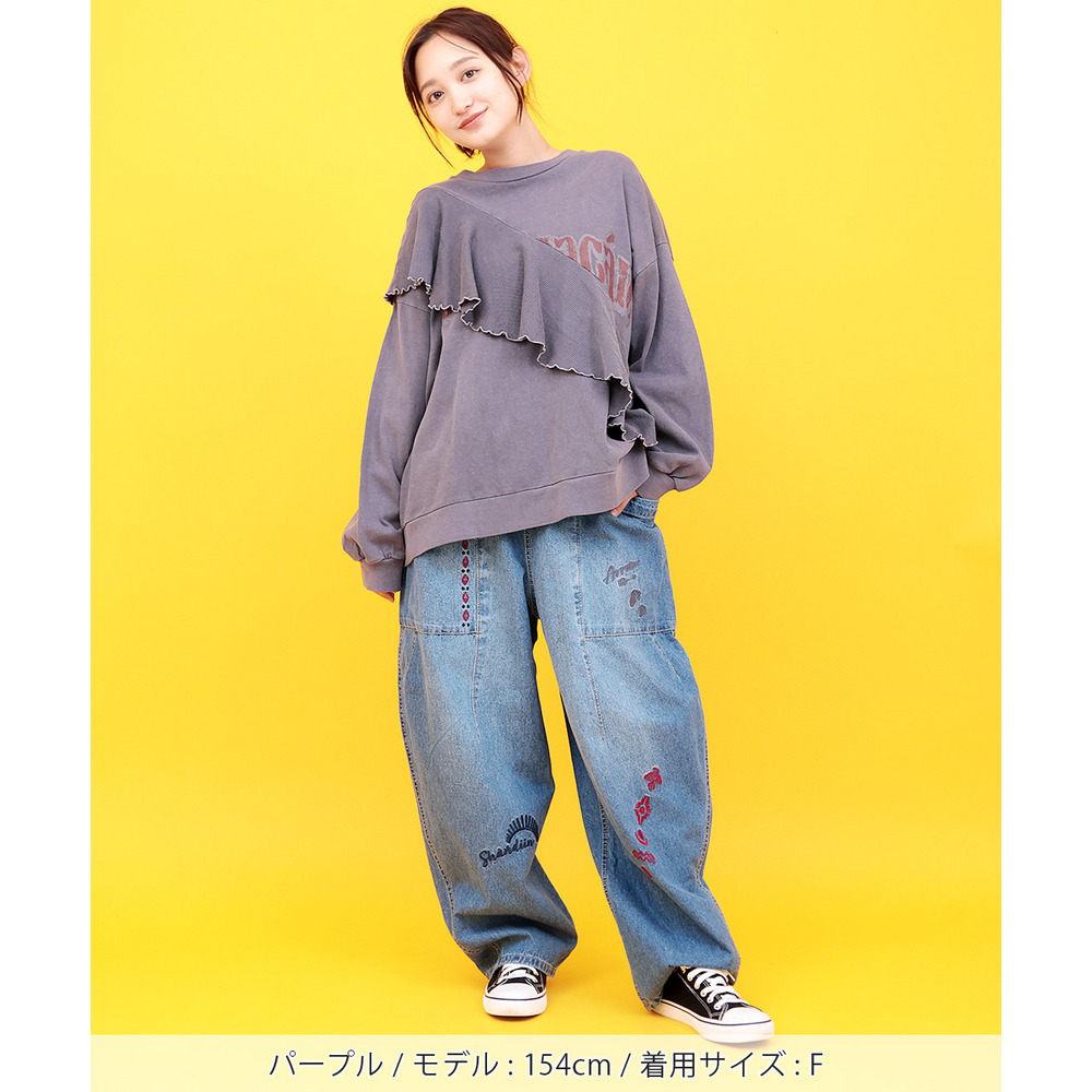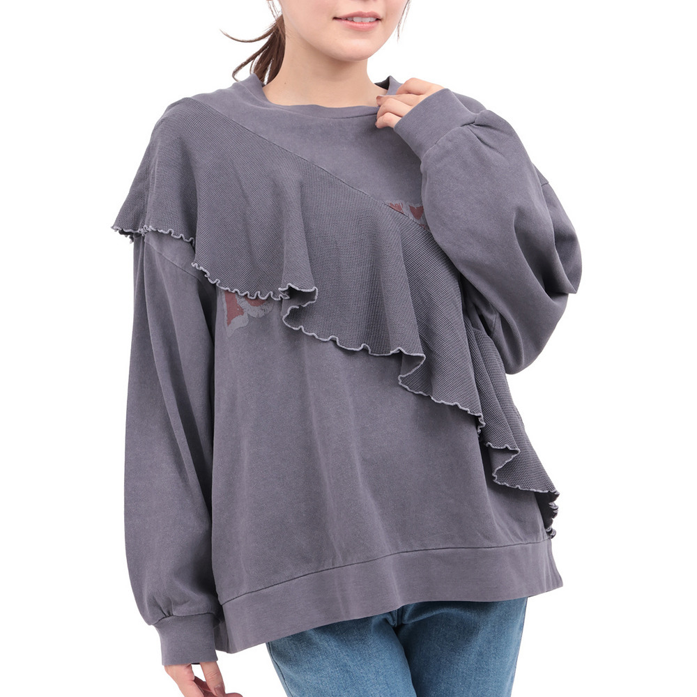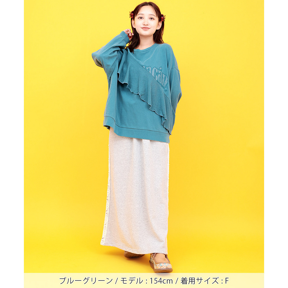 ロゴプリントにフリルを掛け合わせた、遊び心たっぷりのトップス。