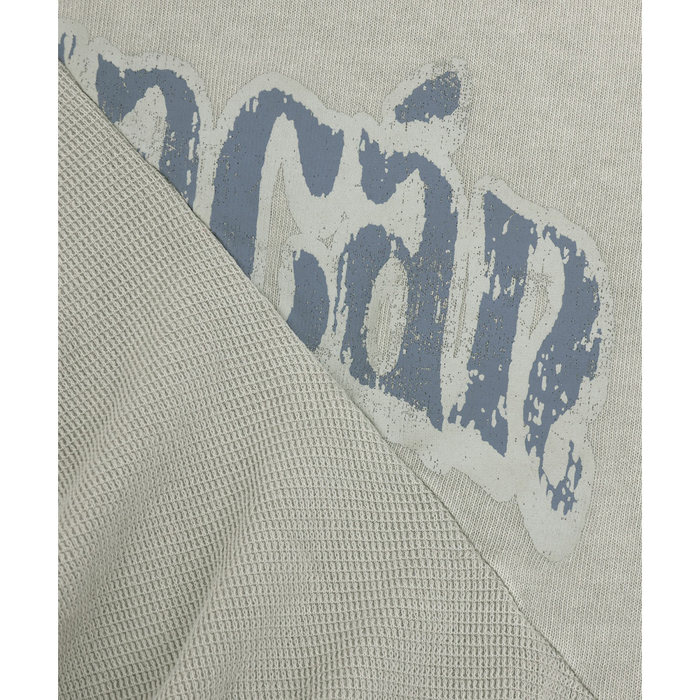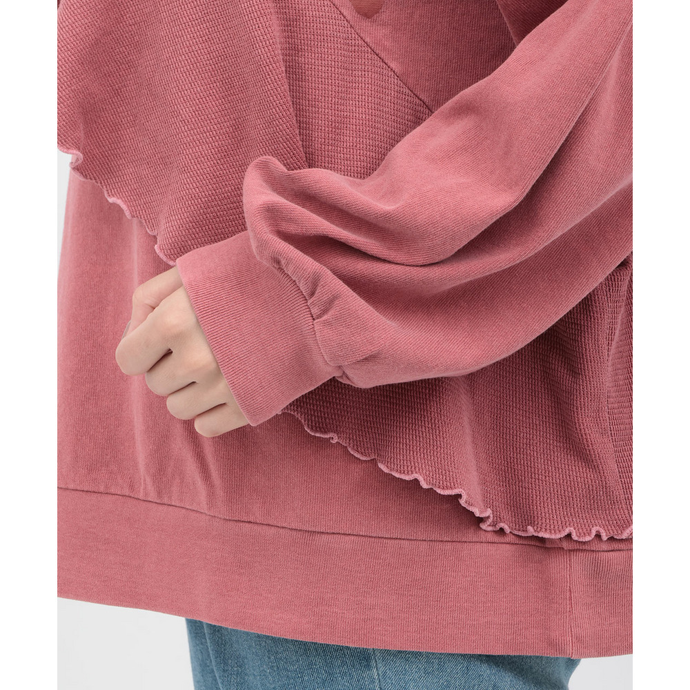 カットソーとワッフル生地を組み合わせたサッと着やすいながらもしっかりとした生地感。