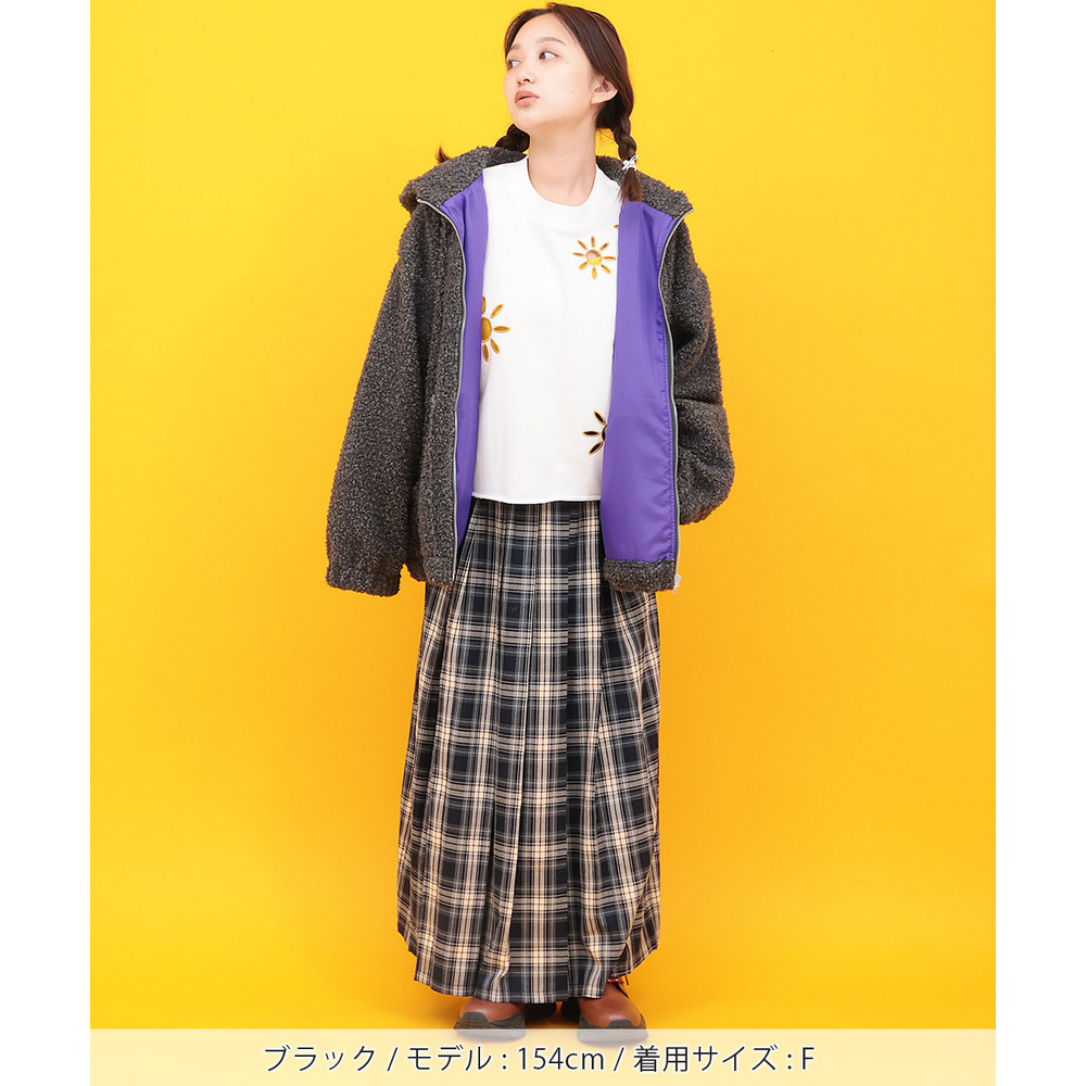 チェックのスカートと合わせて女性らしい着こなしにするのもおすすめです。