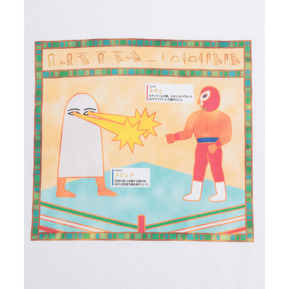 古代エジプト編はルチャドールと「死者の書」に登場する謎の神メジェドとの戦いの一幕を壁画風にプリント。