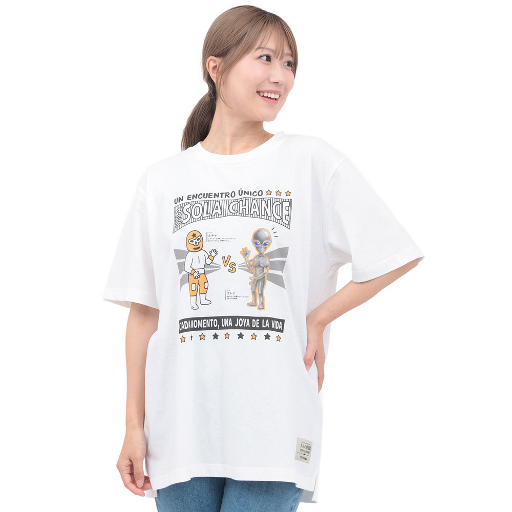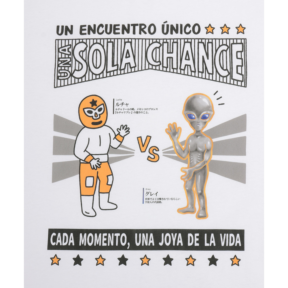 世界の不思議編はグレイ(よく目撃されているらしい宇宙人)とルチャドールの奇跡の出会いをプリント。