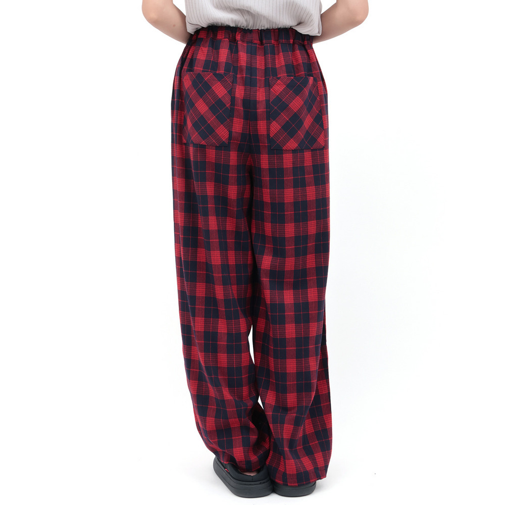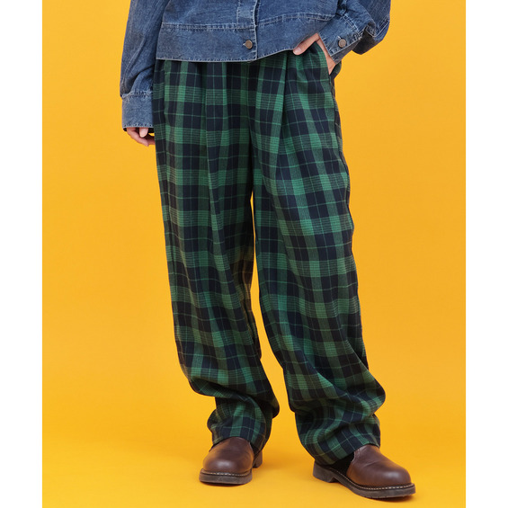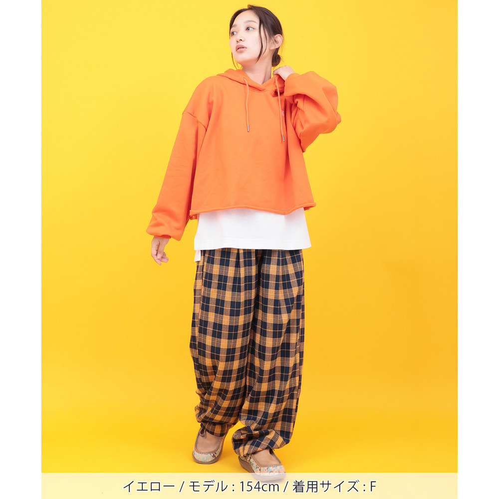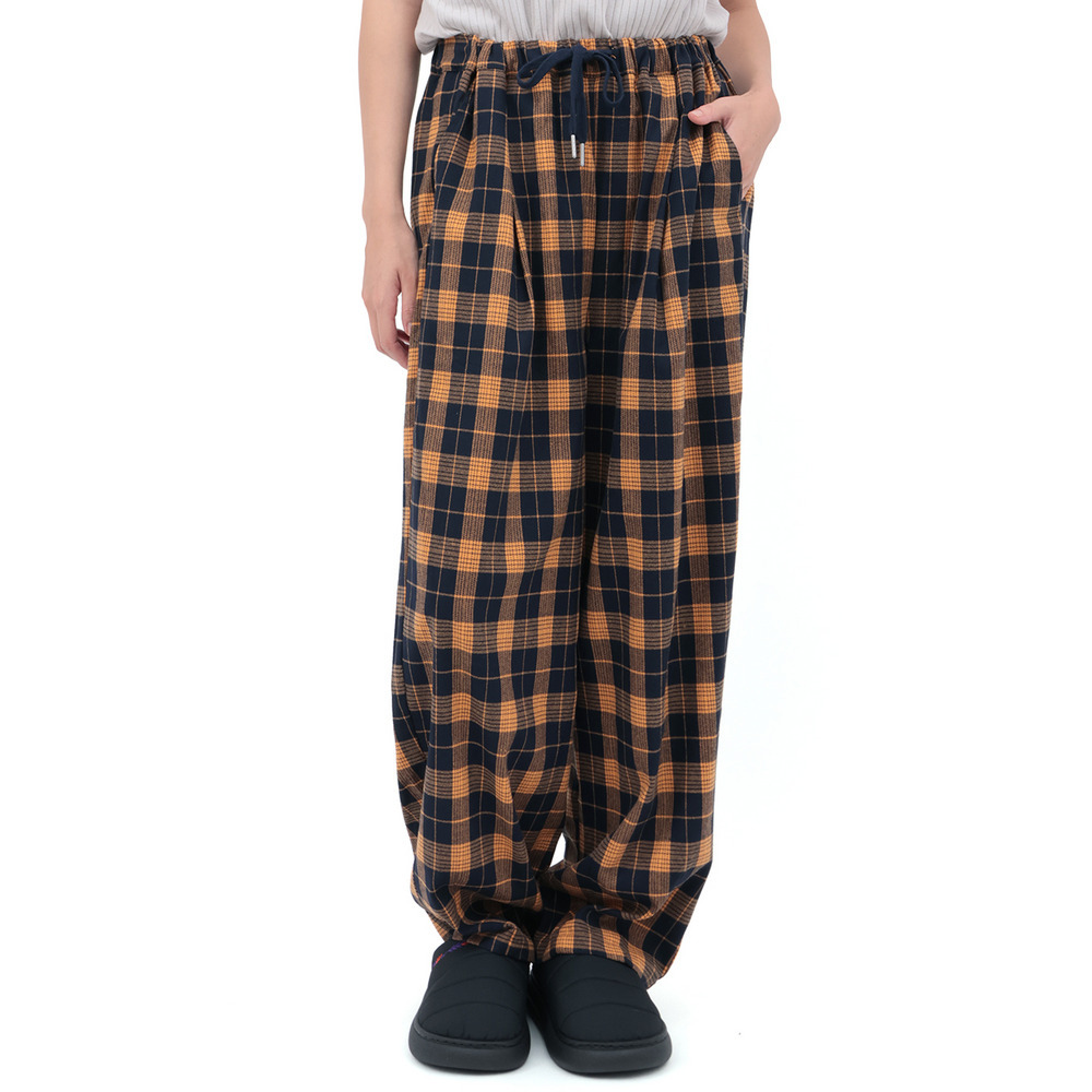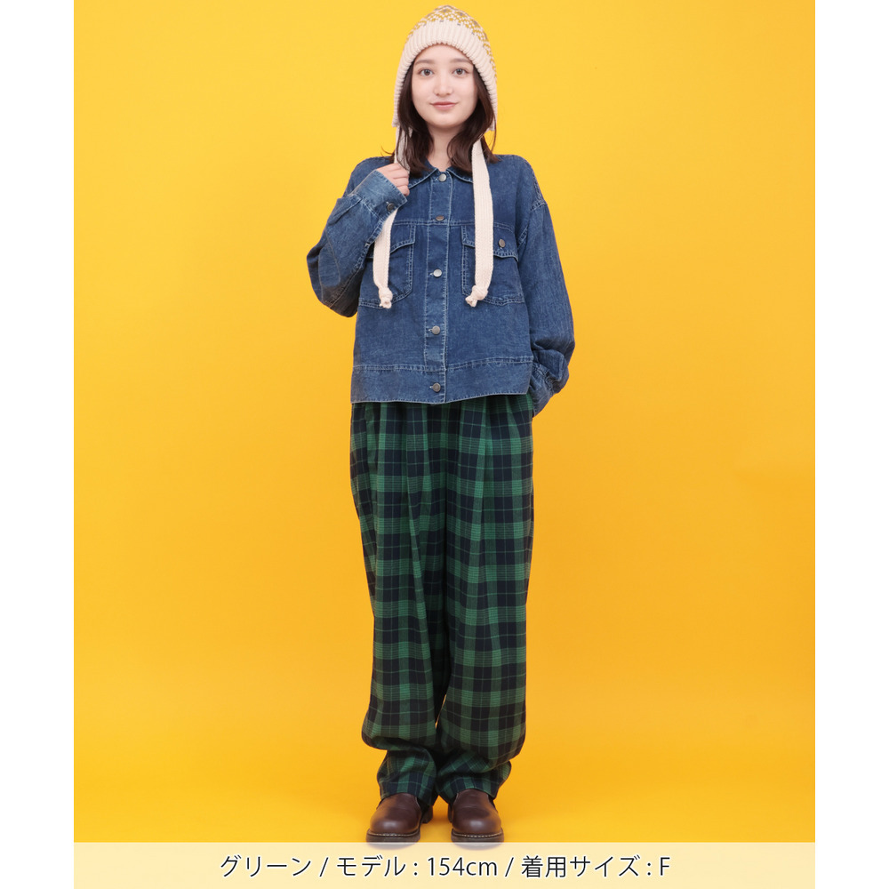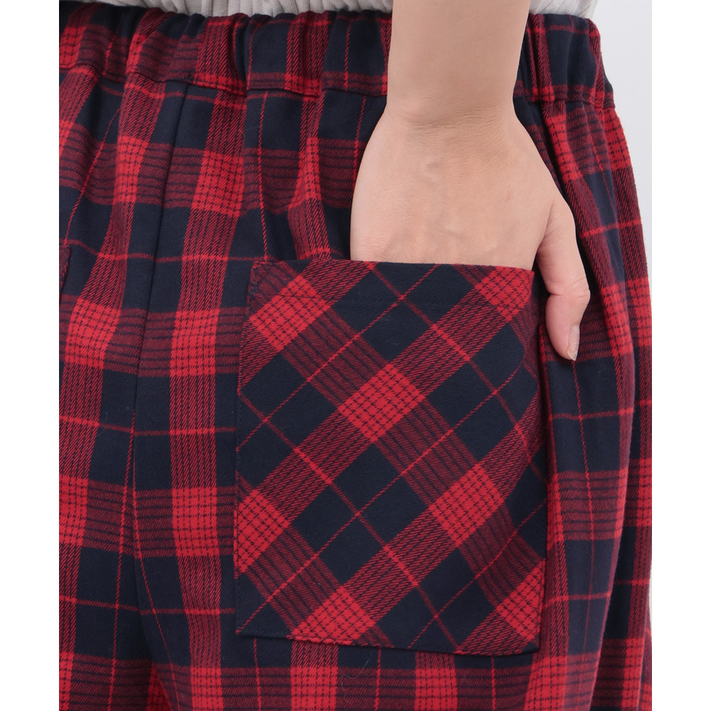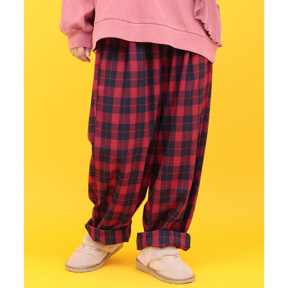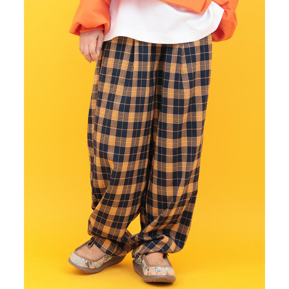 カラフルなチェック柄が目を惹く、ゆったりとしたコクーンシルエットのパンツ。